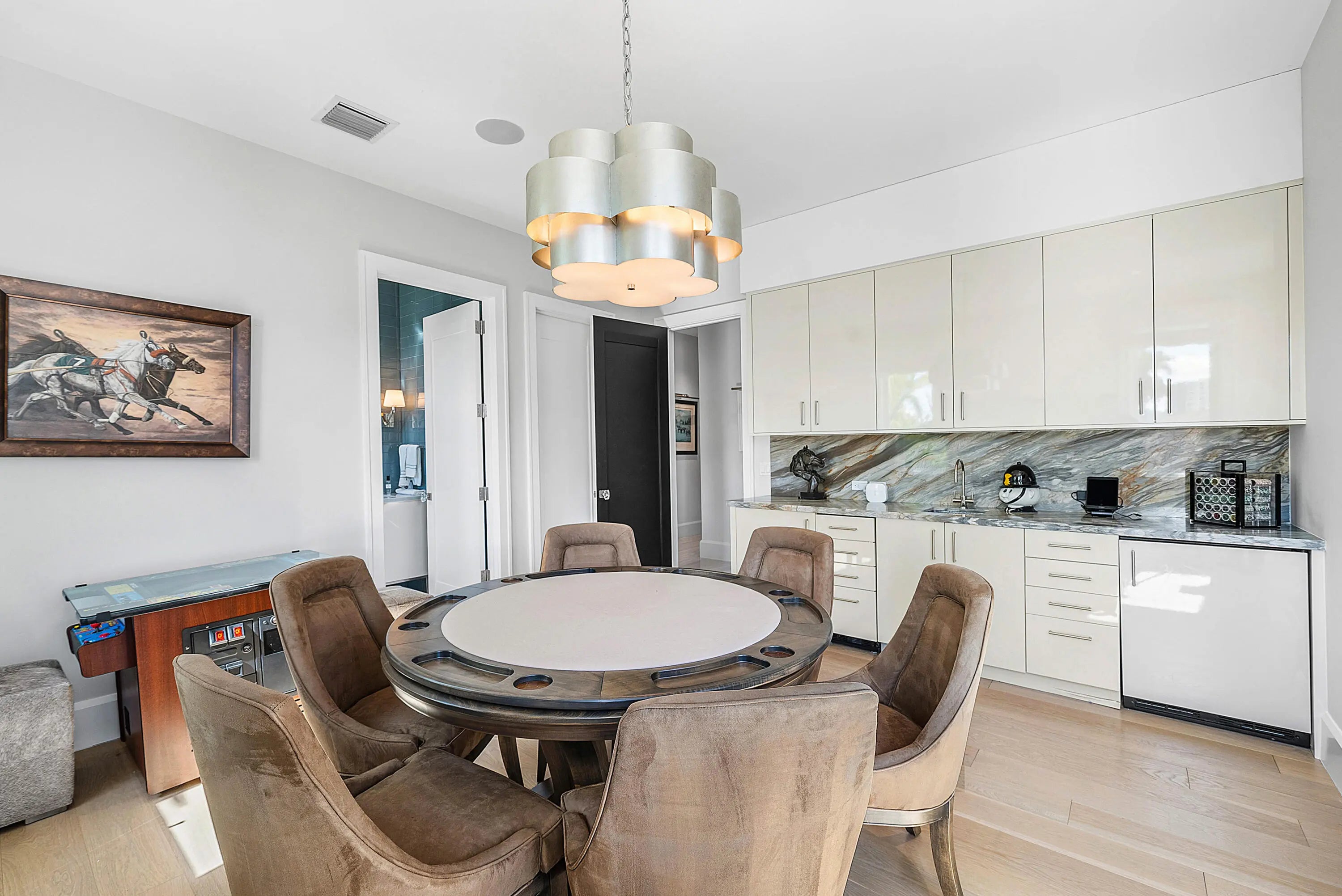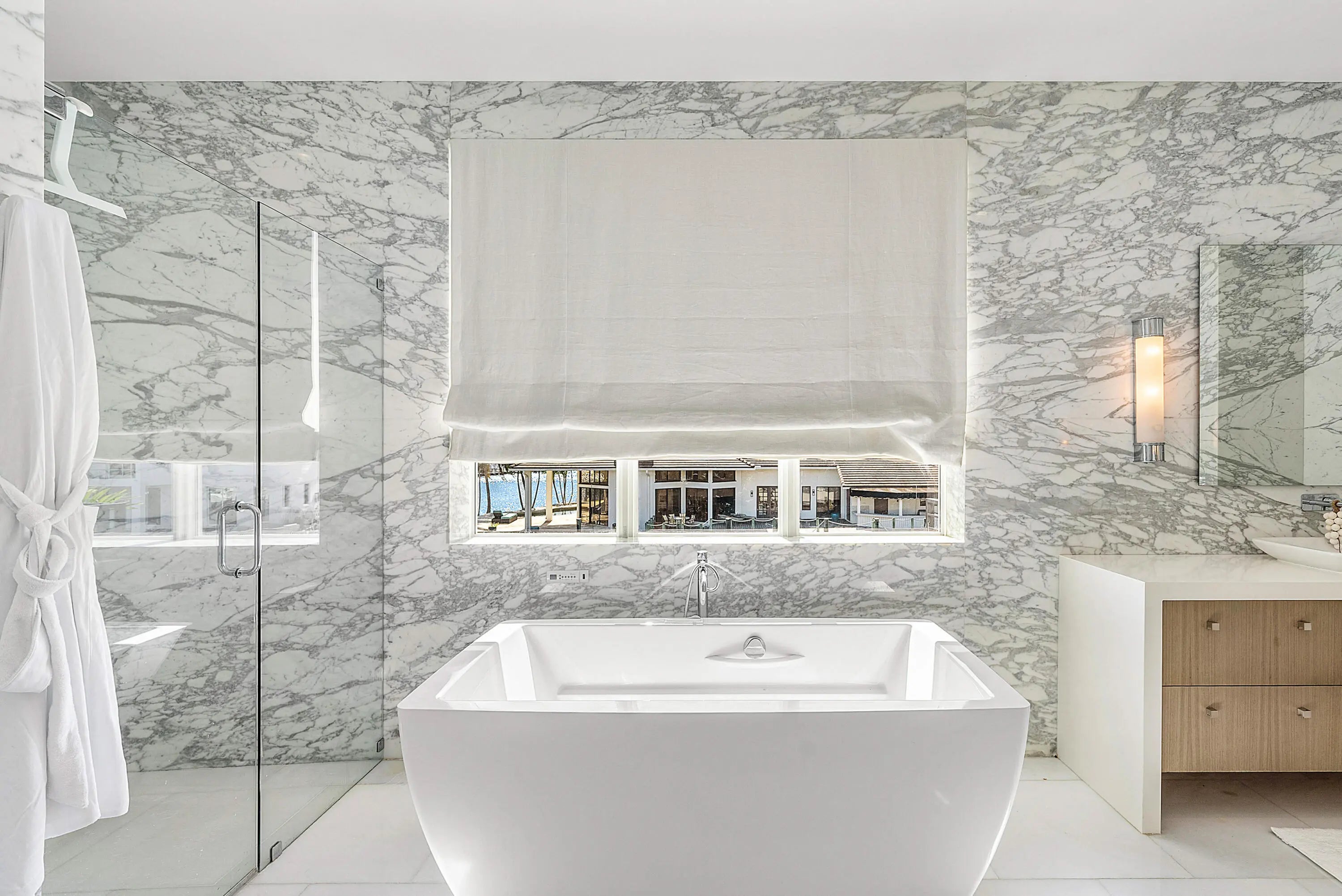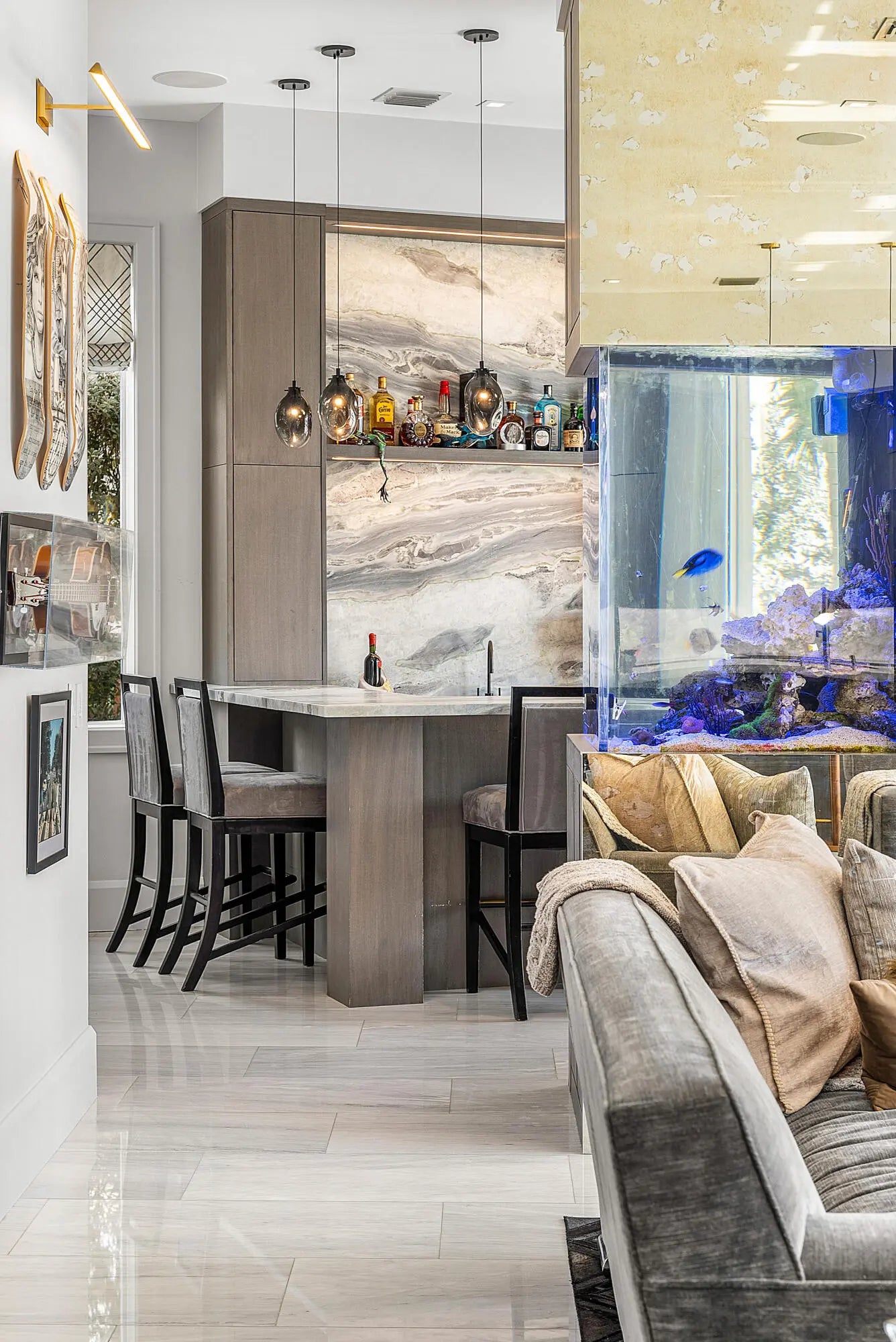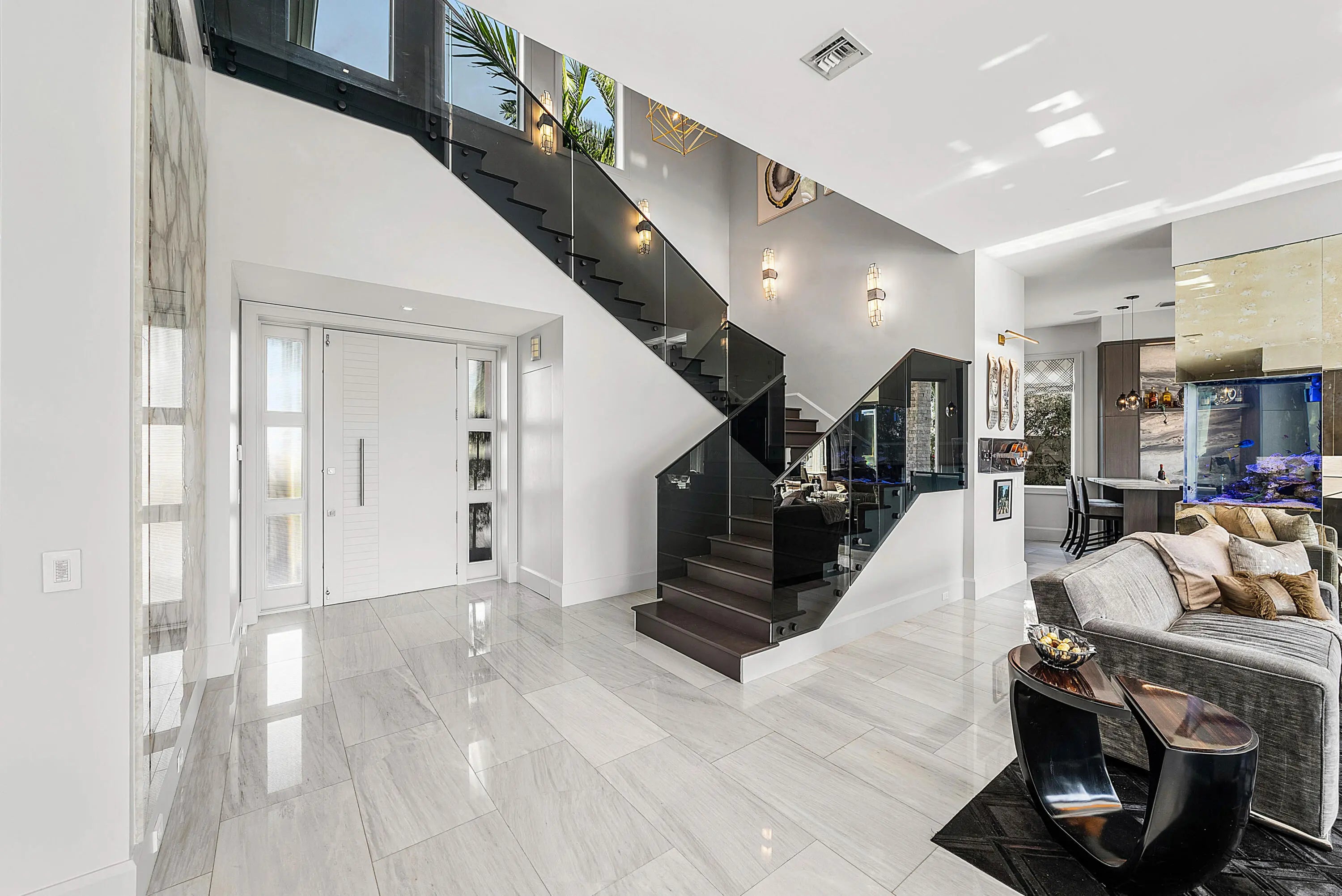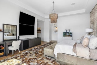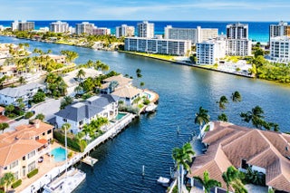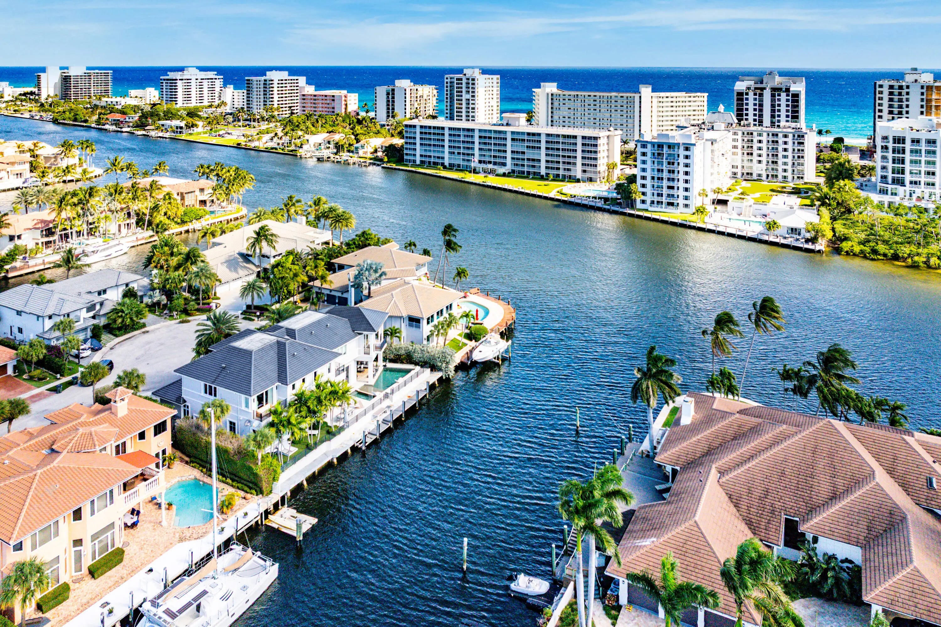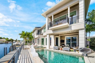 A rare opportunity to own a true custom waterfront estate in the prestigious enclave of Boca Bay Colony, privately positioned on a quiet cul-de-sac just one estate from the point, offering commanding views of both the Intracoastal Waterway and the canal. This modern architectural masterpiece features 117 feet of deepwater frontage, no fixed bridges, and direct access to the Atlantic Ocean—ideal for serious yachting enthusiasts. Designed and built with uncompromising attention to detail by Terry Cudmore, with architecture by Randall Stofft, the residence seamlessly blends refined luxury with exceptional functionality. Upon arrival, a dramatic two-story foyer with a glass-railed staircase sets the tone for the home's elevated design. Soaring volume ceilings, marble flooring, and floor-to-ceiling glass flood the interiors with natural light while framing elegant water views throughout. The main living areas flow effortlessly into the chef's kitchenan entertainer's centerpiece featuring Thermador appliances, dual dishwashers, refrigerator drawers, warming drawer, custom pull-out pantry, and illuminated crystal quartzite countertops with dimmer-controlled lighting. Gas service is available on the street and can be easily connected if desired. The first level is thoughtfully designed for both entertaining and everyday living, offering a private theater room with five TVs and centralized control, a versatile club room (plumbed for easy conversion to a secondary suite), a refined office with custom floor-to-ceiling built-ins, and a striking powder room adorned with panda marble. A full wet bar with leathered marble countertops, wine refrigeration, custom aquarium, and a cabana bath with secondary laundry complete the space, along with seamless indoor-outdoor connectivity. The second level is constructed entirely of concrete for superior strength and sound insulation. Four spacious en-suite bedrooms provide privacy and comfort, including a grand primary retreat featuring custom wood built-ins, morning bar, private balcony, dual walk-in closets, and a spa-inspired bath with book-matched marble walls, soaking tub, and dual vanities. Wood flooring adds warmth to the bedroom suites, while marble continues through the common areas. Additional highlights include a poker/lounge room with marble built-ins and instant tankless hot water. Outdoors, enjoy resort-style waterfront living with a heated saltwater pool and spa, expansive entertaining terraces, summer kitchen with built-in BBQ, and a private dock accommodating up to a 60-foot vessel. A Japanese clay tile roof ensures durability and minimal maintenance. This smart home is fully equipped with Crestron automation, elevator, whole-house generator, central vacuum, self-cleaning water filtration system, multi-zone HVAC, comprehensive security system, and meticulous infrastructure throughoutdelivering luxury without compromise. This is not a builder-grade home. This is a true custom waterfront estate, designed for those who demand privacy, craftsmanship, and direct ocean access in one of Boca Raton's most coveted boating communities.
