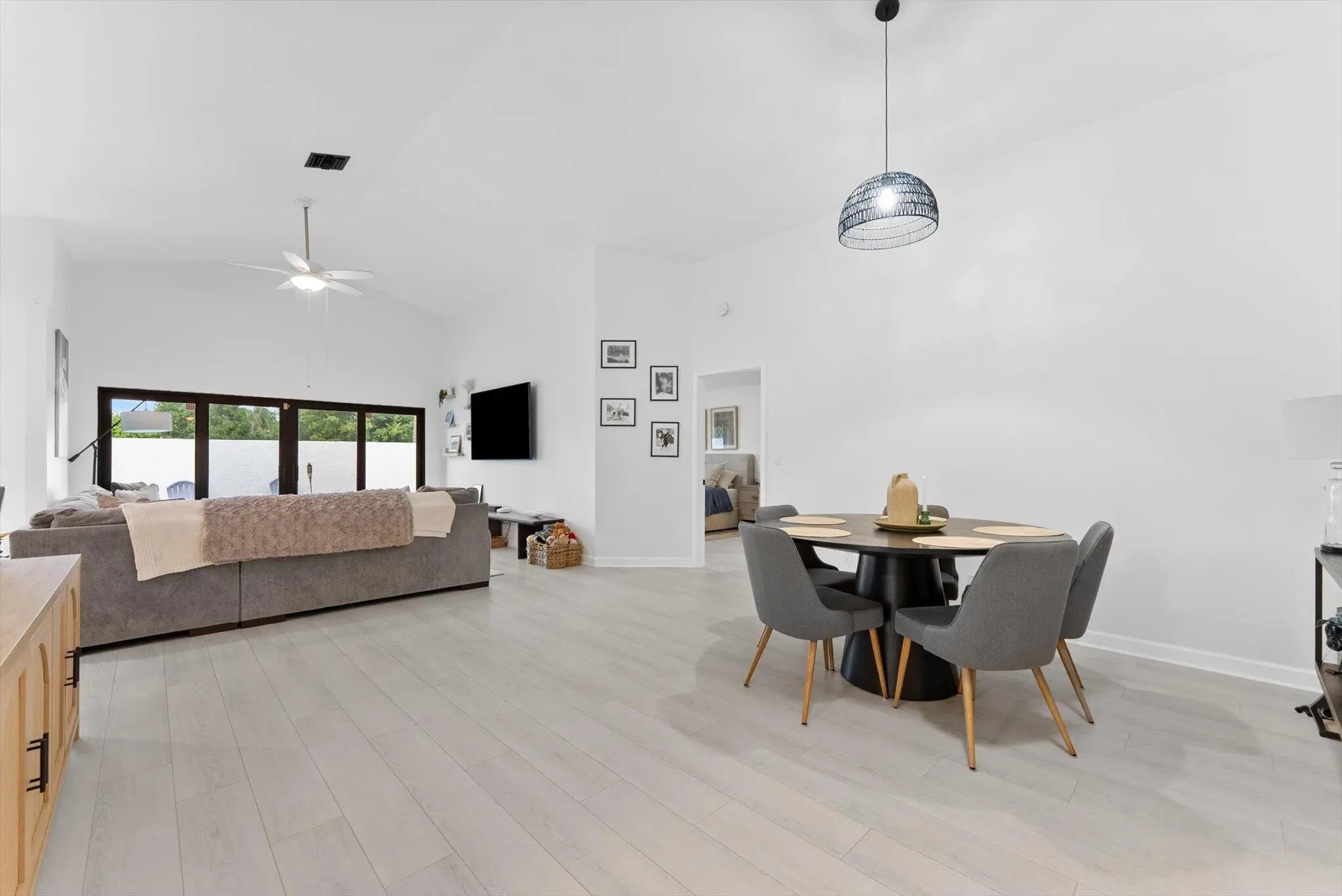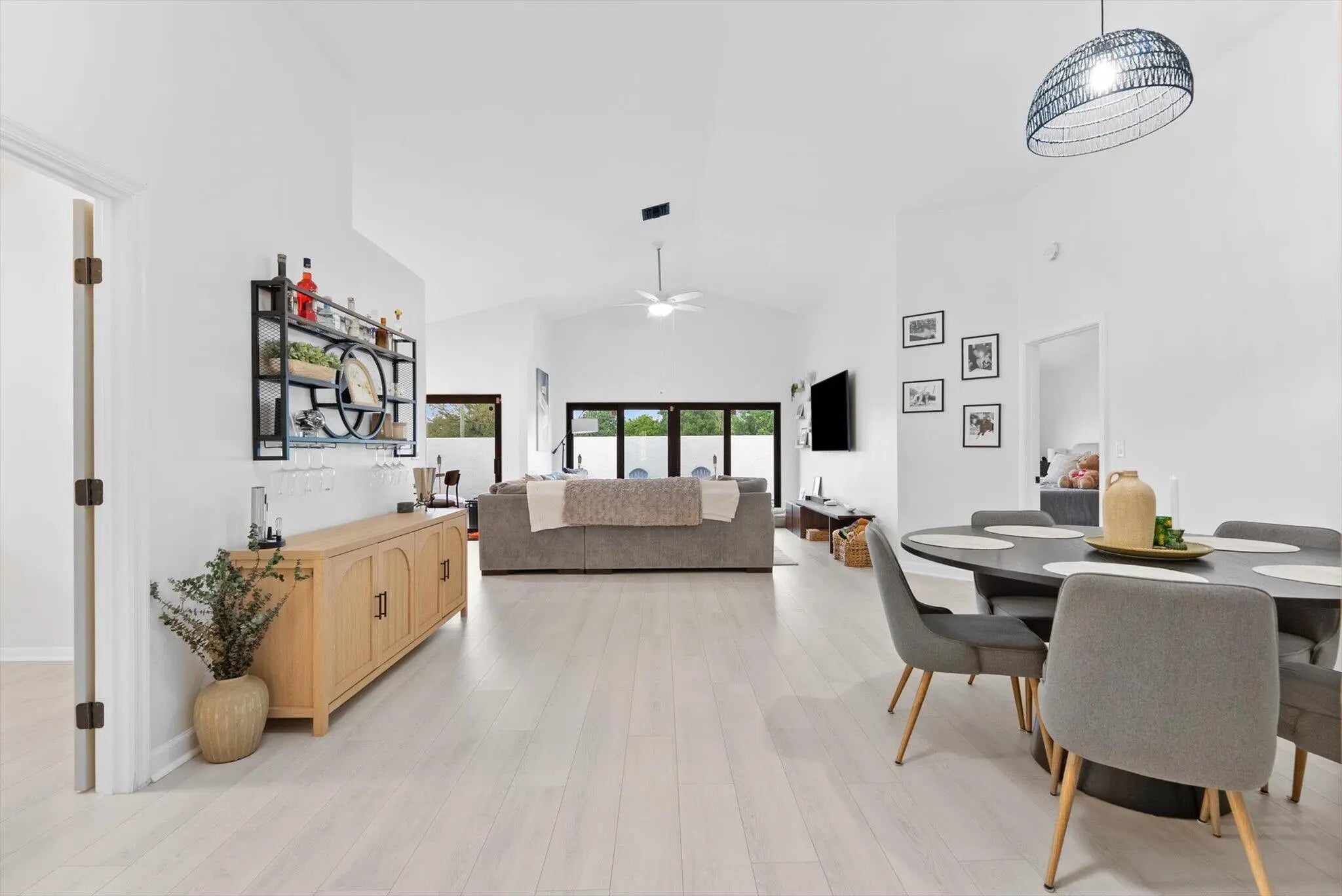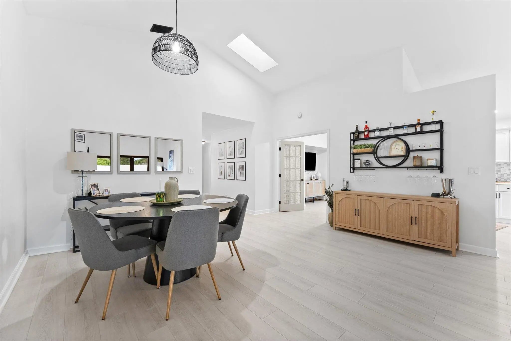 Welcome to this beautifully maintained 3BD | 2BA + Den pool home in the gated Executive Estates of Citrus Glen, Boynton Beach. Designed for effortless living and entertaining, the open great room and dining area overlook a solar-heated saltwater pool with color-changing lighting. The updated kitchen features white cabinetry, quartz countertops, an island, and stainless-steel appliances. Vaulted ceilings, skylights, impact windows and doors, and new flooring enhance the bright interior. Enjoy over 300 sq ft of patio space with a pergola, recently remodeled and freshly painted. Numerous updates include pool equipment, appliances, closets, and interior paint. Community amenities include a clubhouse, gym, and pool, all close to shopping, dining, and beaches.