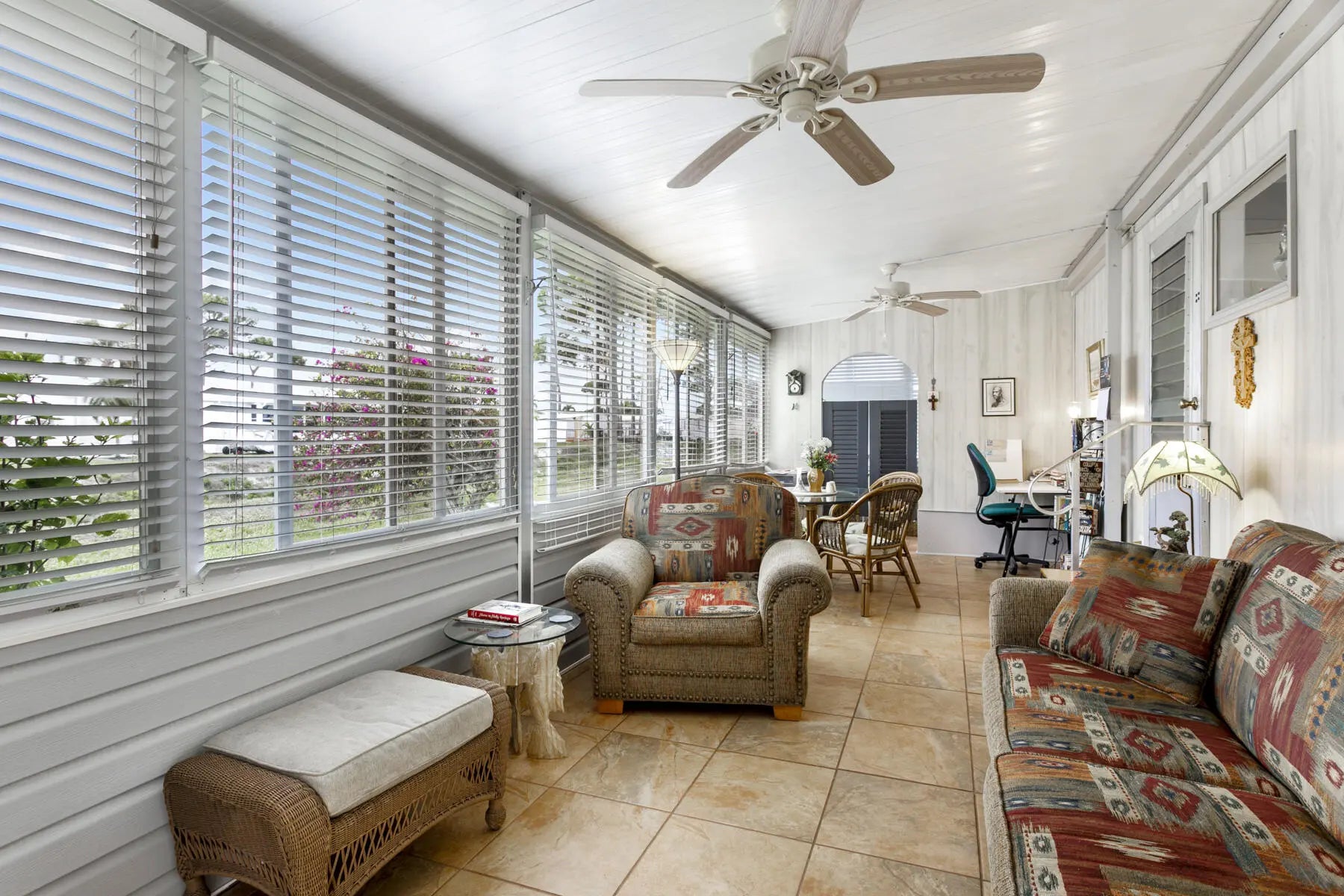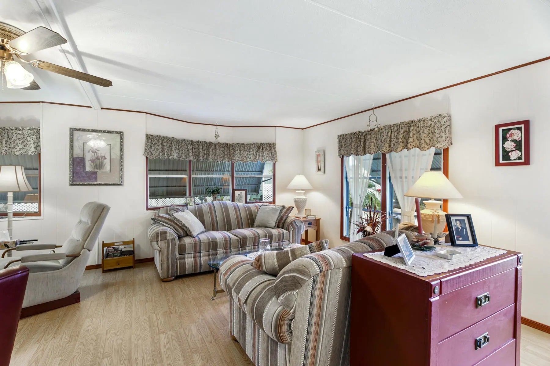 Tucked away at the end of a quiet cul-de-sac, this charming two-bedroom, two-bath home offers a warm sense of privacy, with a peaceful backyard overlooking a scenic canal where wildlife often wanders. Inside, the home is tastefully furnished and well maintained, featuring laminate flooring throughout and a bright, spacious living room accented by sunny bay windows. The updated kitchen feels fresh and inviting with white shaker-style cabinets and new countertops, while both bedrooms provide generous closet space, including the main bedroom with a walk-in closet. Updated bathrooms with step-in showers add a modern touch. The cozy Florida Room, with wall-to-wall windows, invites you to relax and enjoy tranquil green views, while the covered patio offers the perfect spot for fresh air and quiet moments. A separate laundry room, double driveway, and roomy shed complete this welcoming retreat. Home is located in a gated community with heated pools, pickleball courts, shuffleboard, clubhouse, bingo, cards and so much more. Located close to plenty of shopping and dining room and local beaches.