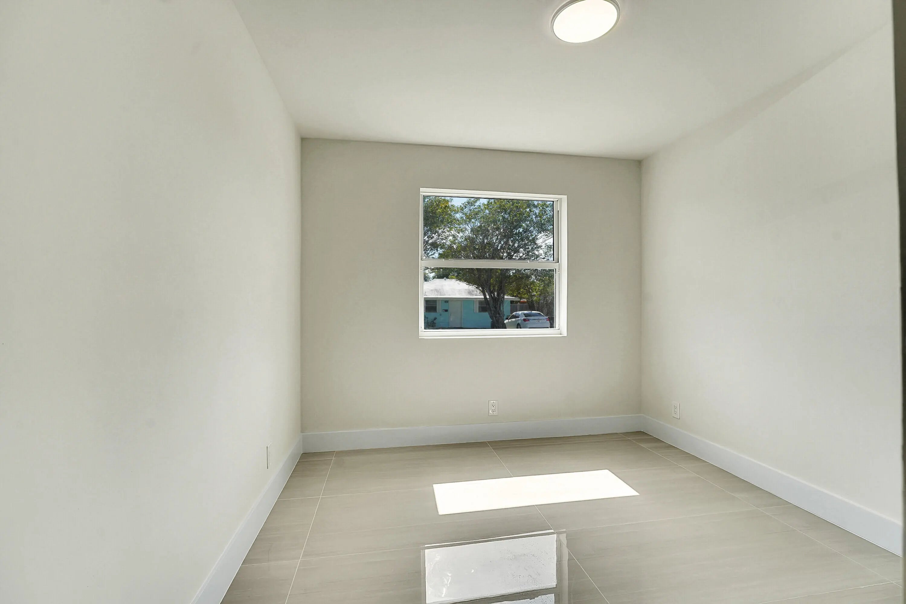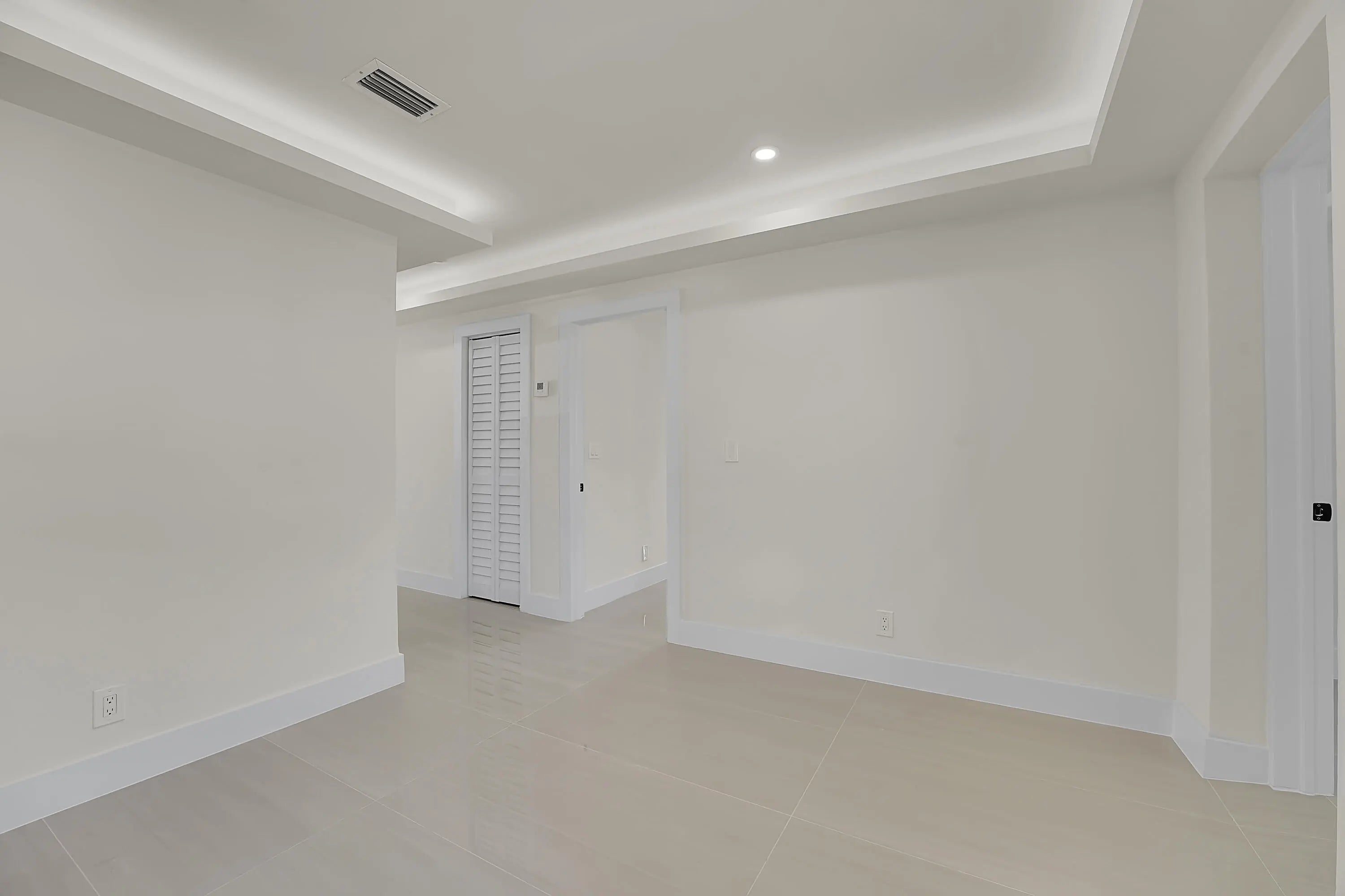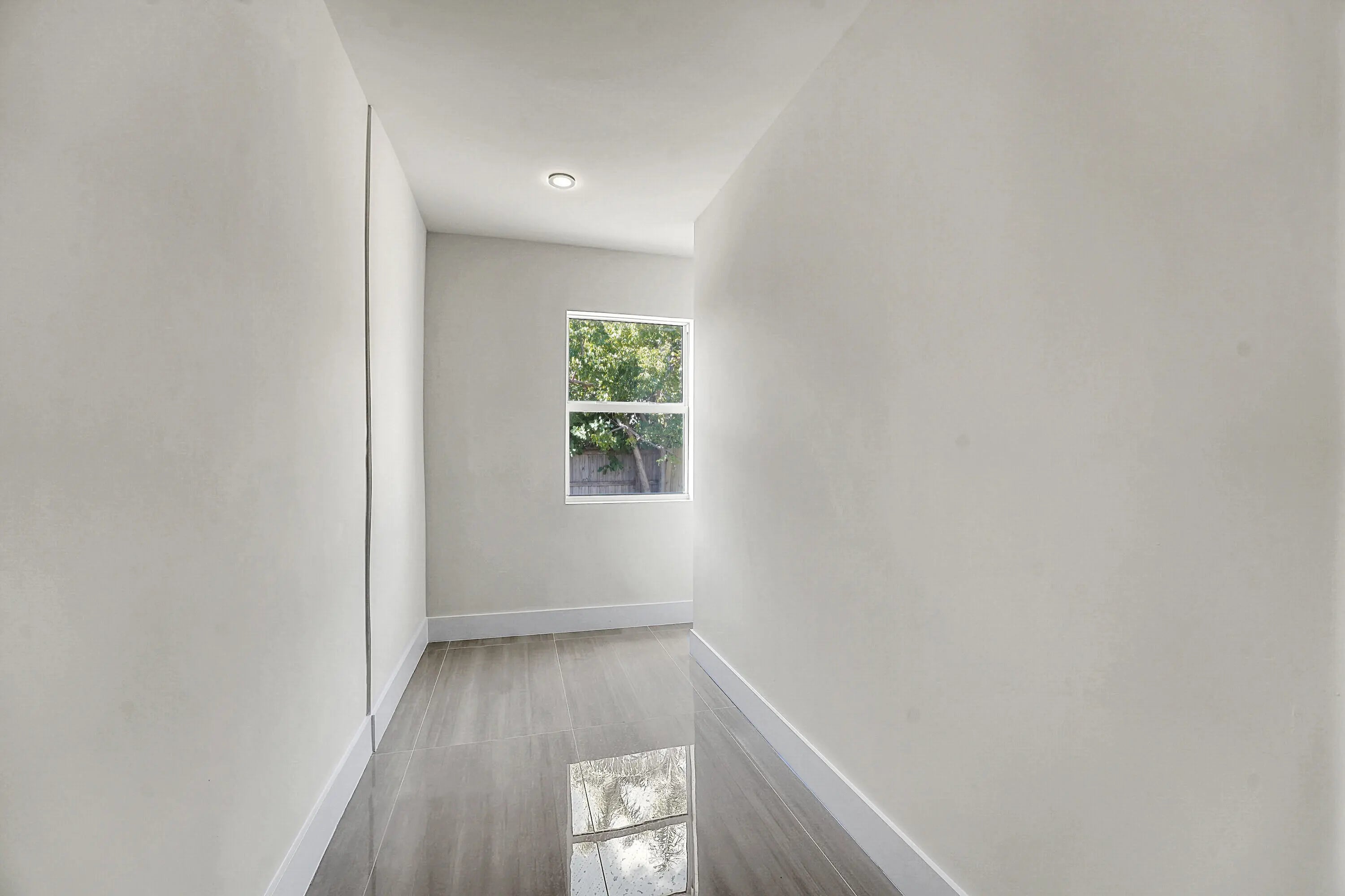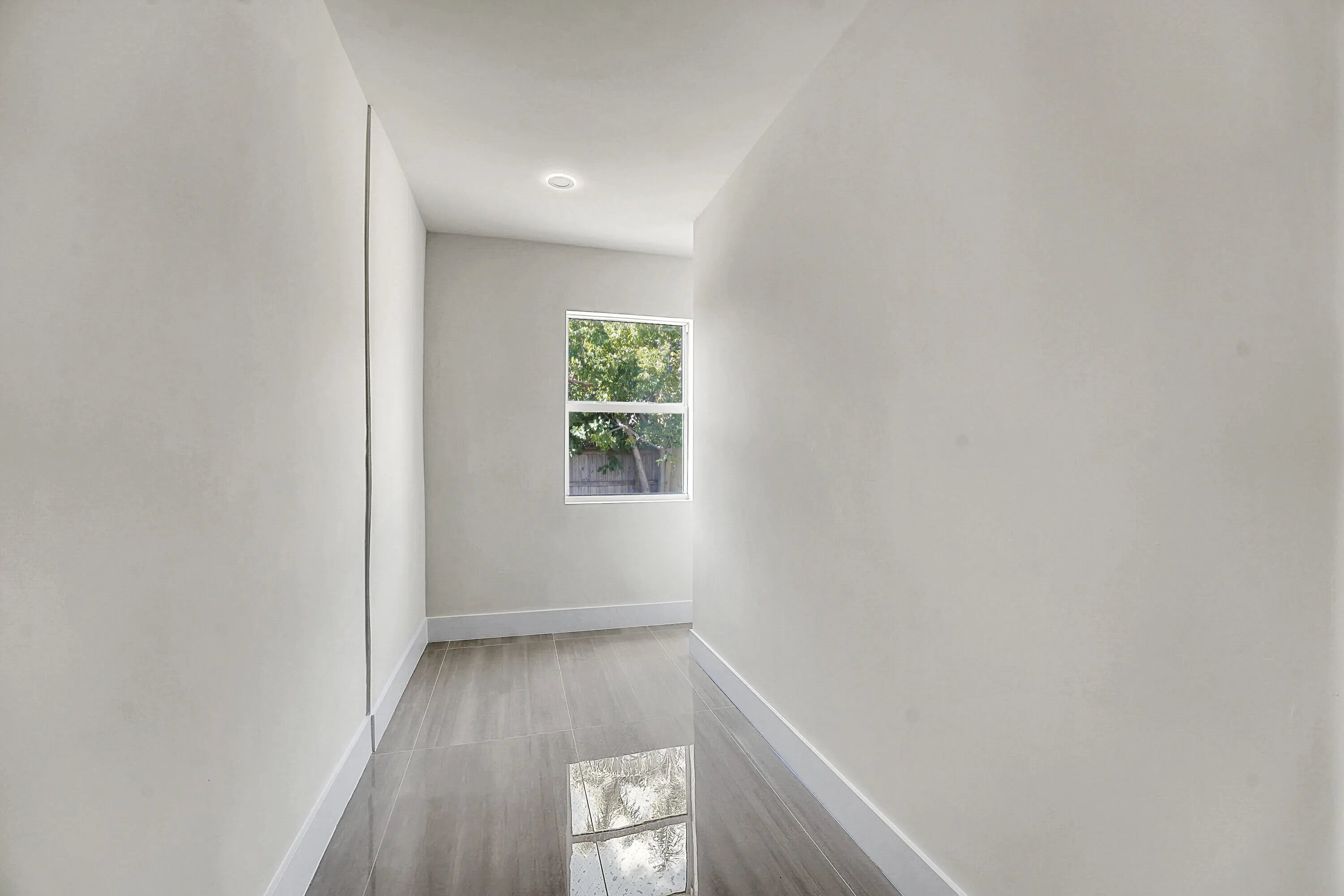 Beautiful, luxurious designed single-family home located five mins from vibrant downtown WPB. This complete interior and exterior remodel embodies a 2024 central A/C system, a new roof, and custom impact windows with premium LED soffit lights. Elaborate, bright living room featuring new tile flooring and that enhances the sense of space. This custom made kitchen is equipped with top of the line Samsung Bespoke appliances, a waterfall Quartz center island, and elegant white cabinetry with stylish pendant lighting. The outdoor space includes a patio, ideal for entertaining or enjoying a quiet evening. This turnkey home is personally crafted with a layout that is the perfect blend of a premium comfort with the convenience of location and proximity to I-95 and the beach.