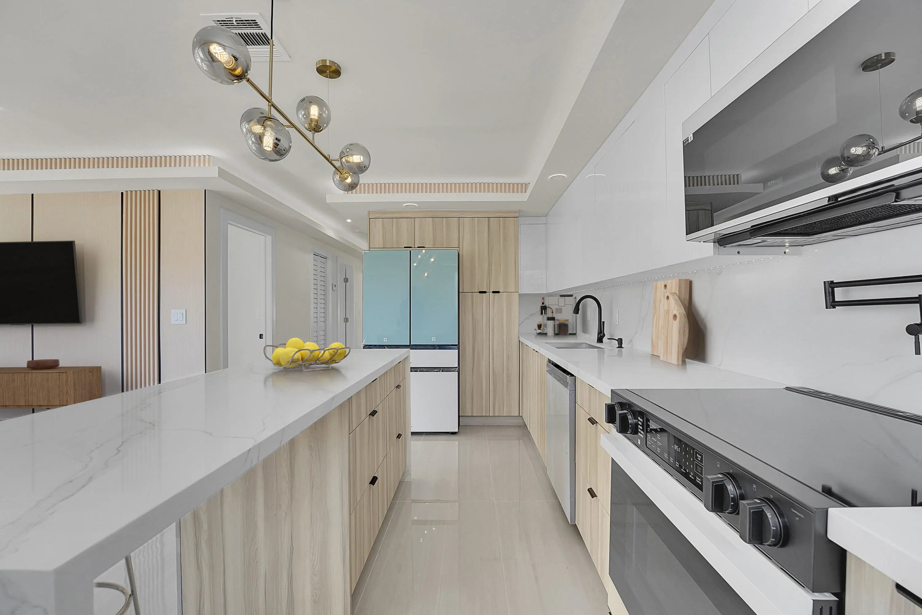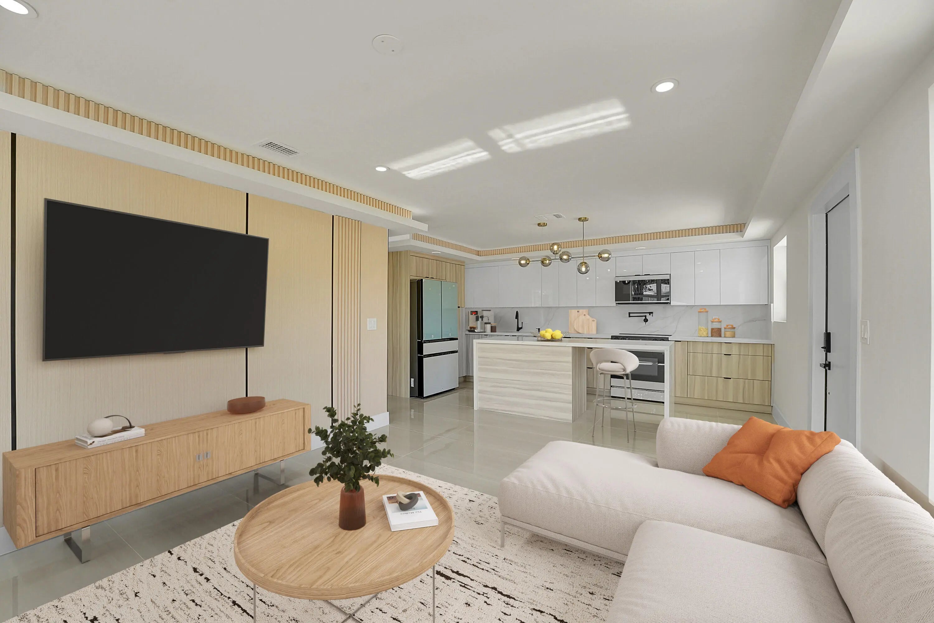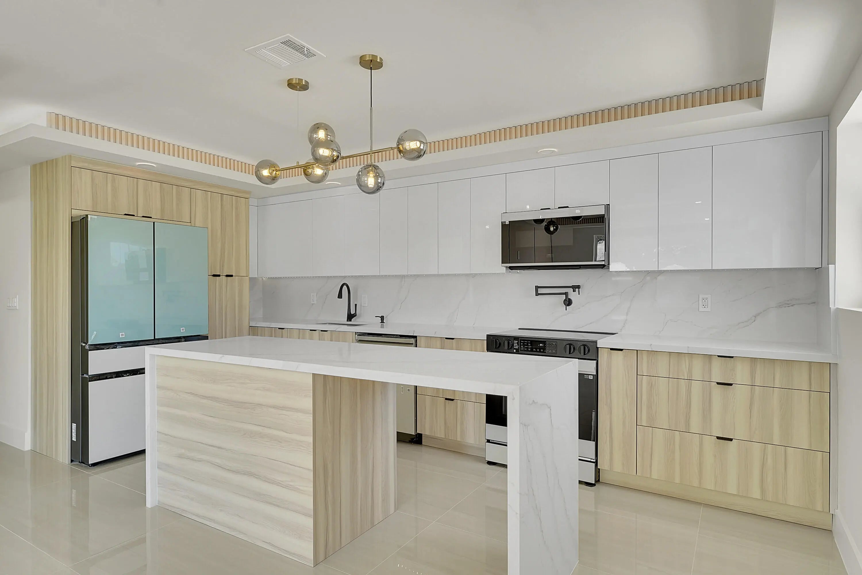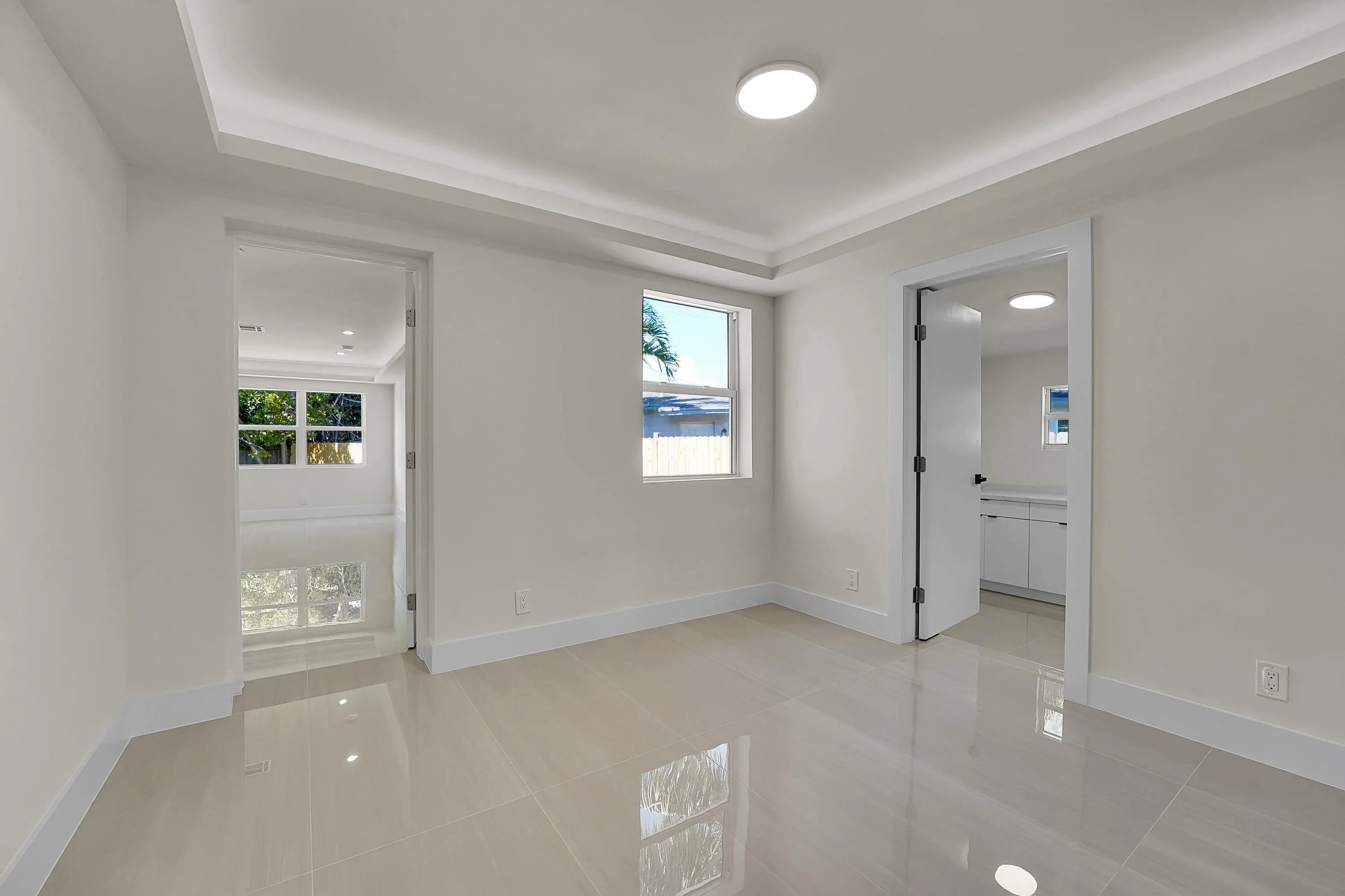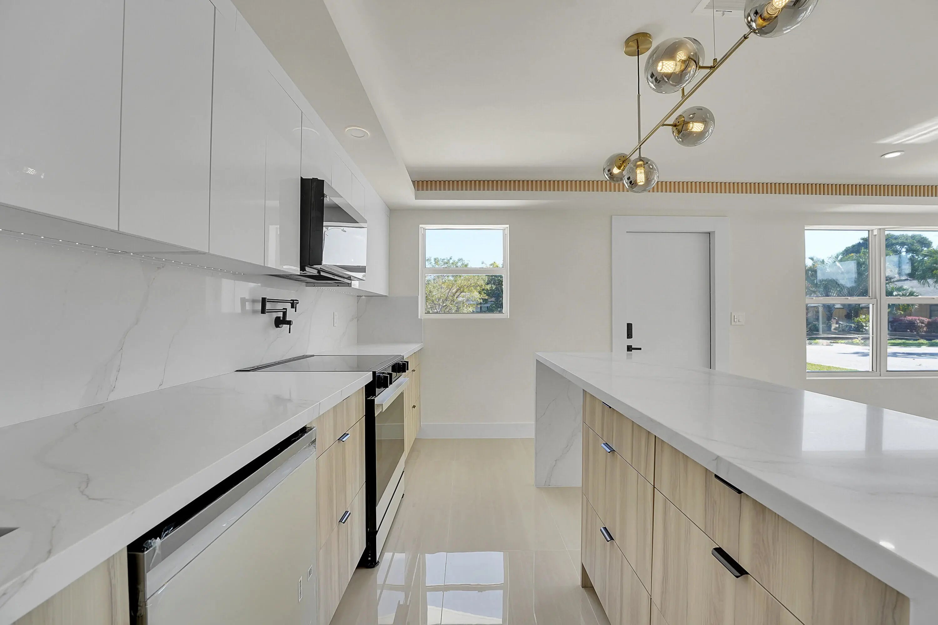 Beautiful, luxurious designed single-family home located five mins from vibrant downtown WPB. This complete interior and exterior remodel embodies a 2024 central A/C system, a new roof, and custom impact windows with premium LED soffit lights. Elaborate, bright living room featuring new tile flooring and that enhances the sense of space. This custom made kitchen is equipped with top of the line Samsung Bespoke appliances, a waterfall Quartz center island, and elegant white cabinetry with stylish pendant lighting. The outdoor space includes a patio, ideal for entertaining or enjoying a quiet evening. This turnkey home is personally crafted with a layout that is the perfect blend of a premium comfort with the convenience of location and proximity to I-95 and the beach.