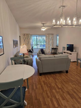 Rarely available spacious off season furnished turnkey 1 bedroom 1.5 bath in the popular La Paz neighborhood at the manned gated Boca Pointe Country Club (a non-mandatory Country Club with membership available). Owner may consider an annual rental at $2100. This beautifully furnished unit is in an elevator serviced two story building and boost of spacious living area, dual sink bathroom plus additional half bath, full size washer and dryer, large covered screened patio with serene lake views! Amenities include 2 pools and tennis courts. Lease term of 6 to 9 months starting April 1st.