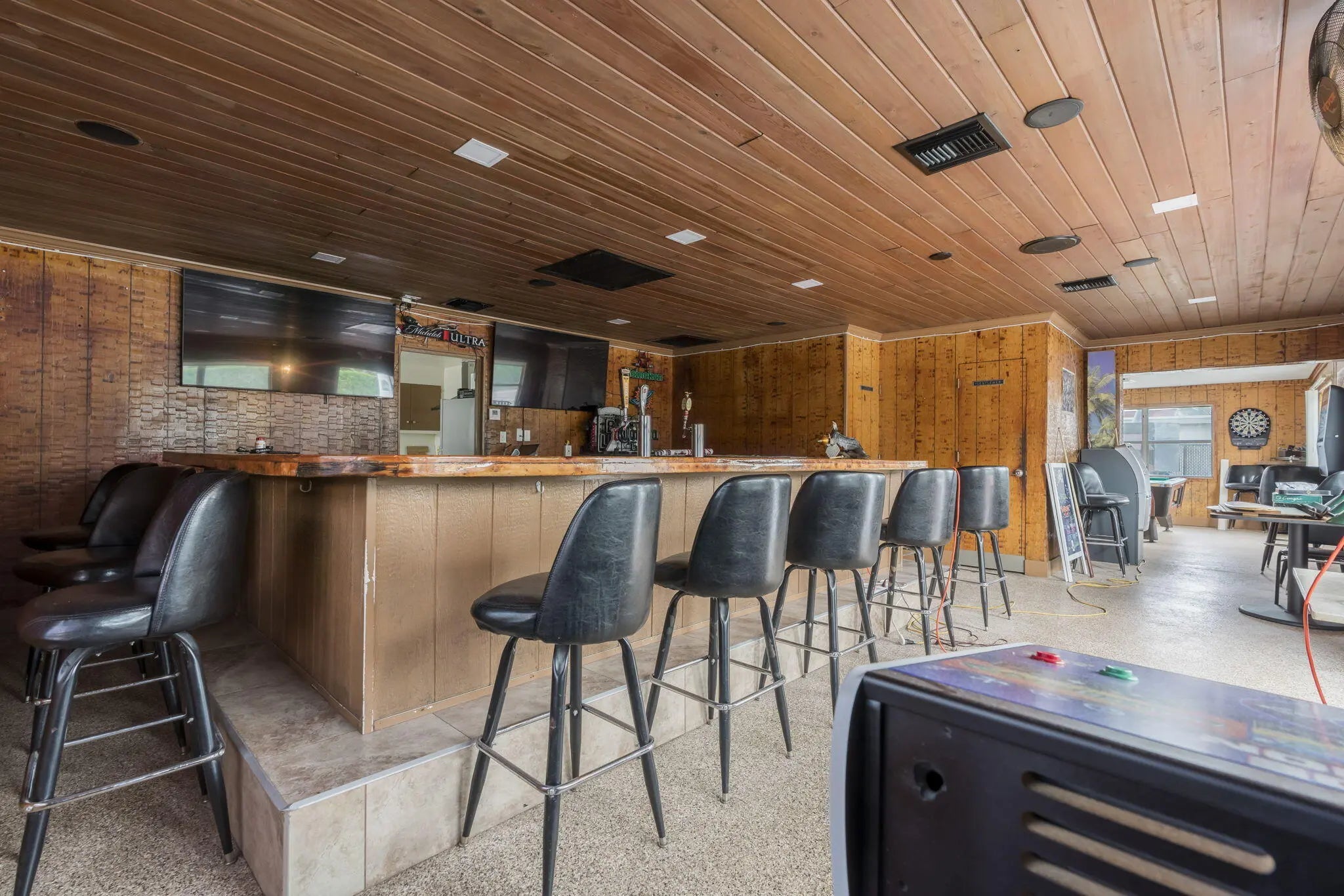 Unique mixed-use investmnet opportunity featuring a fully operational bar with two attached residential apartments on a 1/4 acre parcel in an unincorporated area. This versatile property offers unlimited potential for investors, owner-operators, or redevelopment, with flexible zoning advantages and strong income possibilities. Ideal for those seeking a live/work setup, rental income, or future expansion in a high-potential location.