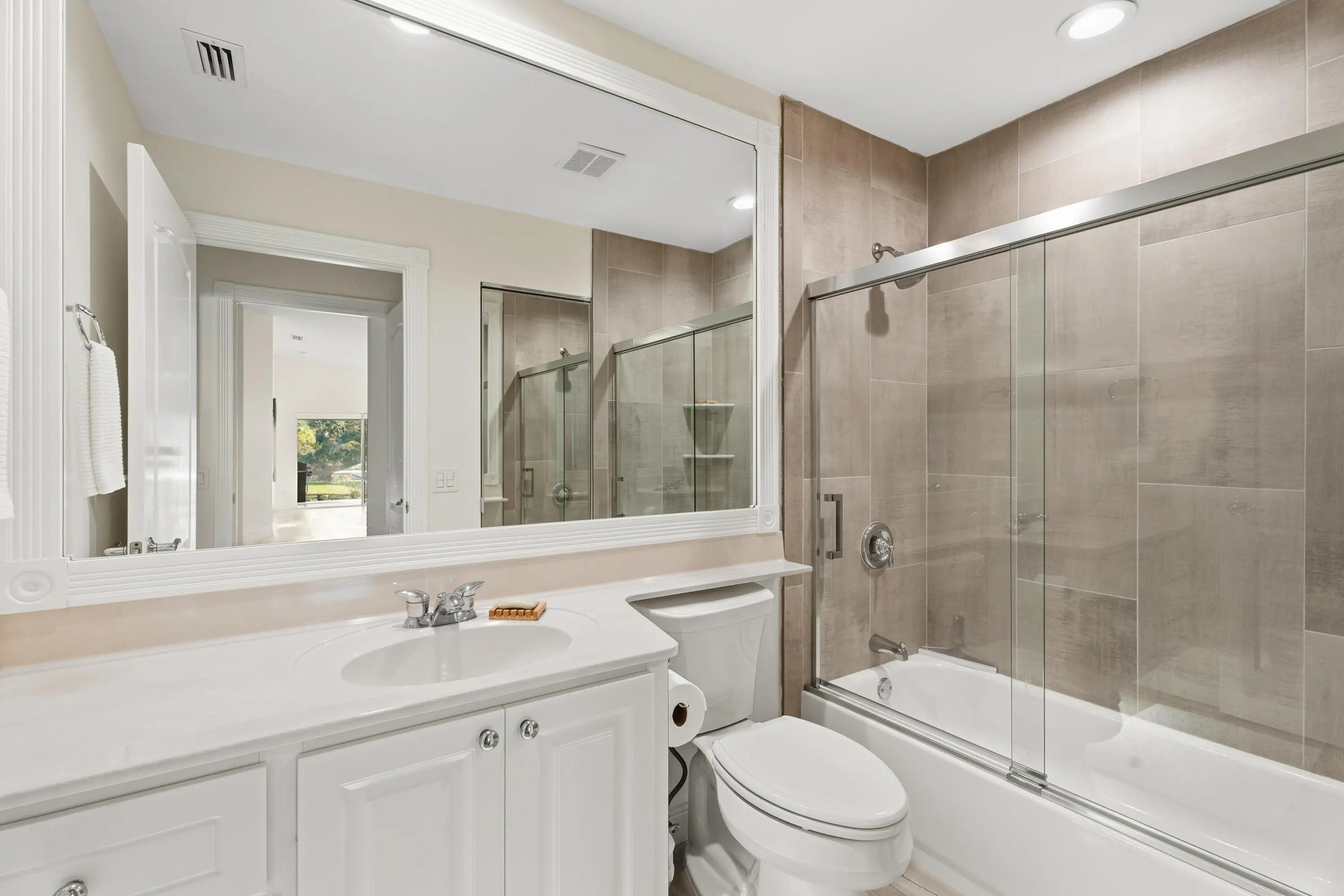 Located in the heart of the desirable Retreat at Hobe Sound, this fully upgraded CBS villa offers 2 bedrooms, 2 baths, and 1,526 square feet of beautifully designed single-story living—built by DiVosta. Set on a quiet, private lot overlooking the Atlantic Ridge Preserve, the home provides a peaceful backdrop with lush, natural views and exceptional privacy, along with a spacious screened-in patio perfect for relaxing and enjoying the serene surroundings. The residence has been completely refreshed with a bright, open-concept design, brand-new tile flooring throughout, and elevated finishes in every room. The upgraded kitchen features all-new appliances, creating a sleek and functional space ideal for everyday living and entertaining. Beautifully crafted crown molding throughout add a refined, custom touch, while the upgraded built-in closets offer both style and smart organization. The newly upgraded bathrooms showcase modern vanities, sleek tilework, and spa-like details. Additional upgrades include a new water heater, newer A/C system, accordion shutters, and a spacious two-car garagedelivering both comfort and peace of mind. The Retreat offers resort-style amenities including a heated pool, tennis and pickleball courts, a fitness center, and clubhousejust minutes from beaches, shopping, and dining.