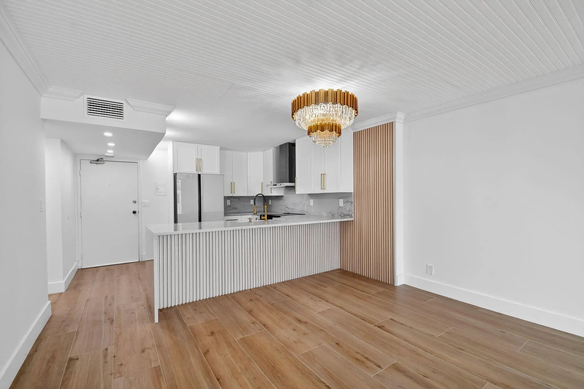 Wow! This oceanfront 1-bedroom, 1.5-bath residence has been completely renovated with spectacular, high-end finishes. The open-concept kitchen showcases new smart appliances, quartz countertops, shiplap ceilings, recessed lighting, and beautiful designer fixtures. The interior features ceramic wood-look tile throughout, smooth-finish walls, & hurricane-impact windows and sliding doors. Le Chateau Royal has completed its milestone inspection and undergone numerous building upgrades. Perfectly positioned directly on the sand, it offers stunning ocean & Intracoastal views and is just a few blocks from the world-renowned Eau Palm Beach Resort & Spa, home to upscale dining including the highly acclaimed ''Nobu.'' Enjoy a resort-style lifestyle with an oceanfront pool, fitness center! Call now!
