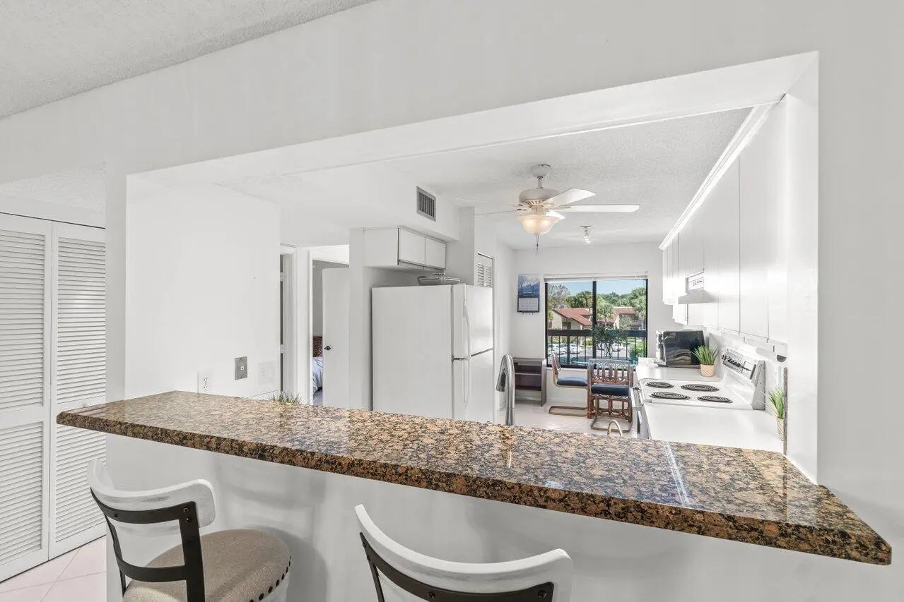 Wake up to the feeling of being on vacation every day in this 2-bedroom, 2-bath condo with peaceful lake views and colorful sunset backdrops. Located in the desirable 55+ community of Banyan Springs, this move-in ready home offers the comfort of a private residence with the ambiance of a beautiful resort. The light-filled kitchen features a cozy breakfast nook, while the spacious primary suite includes double-door entry and soothing water views. Step onto the screened lanai to enjoy morning coffee or unwind in the evening, surrounded by serene scenery. Residents enjoy an amenity-rich lifestyle with a clubhouse café, arts and social activities, tennis and pickleball courts, two sparkling pools, and a full calendar of events creating a true resort-style Florida experience.