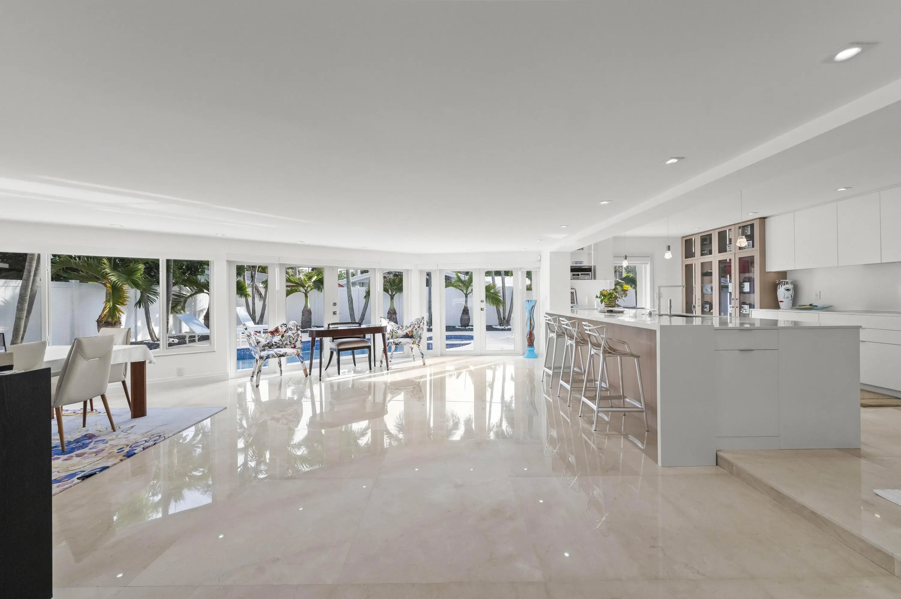 Step into this stunningly reimagined home, where modern elegance meets luxurious comfort. Every inch of this property has been meticulously updated with premium finishes and thoughtful design. The expansive living room features floor-to-ceiling sliding glass doors that seamlessly blend indoor and outdoor living, offering breathtaking views of your very own resort-style pool and jacuzzi oasis, framed by swaying palm trees. The home's split, open floor plan offers 2 generously sized bedrooms and 2 full bathrooms, ensuring both privacy and spaciousness. Gleaming neutral marble flooring flows throughout, setting the tone for sophistication. The sleek, modern kitchen is a chef's dream, complete with high-end Miele appliances and stylish finishes. Safety and peace of mind come standard with hurricane impact glass doors and windows, while the fully fenced yard, heated pool, and jacuzzi provide a serene private escape. The professionally landscaped grounds elevate the ambiance, and recent updatesincluding a new roof, new A/C system, tankless water heater, and pool heaterensure worry-free living. Nestled in one of East Boca Raton's most sought-after neighborhoods, this home offers unparalleled convenience. You're minutes away from top-rated schools, including the prestigious Addison Mizner, as well as downtown Boca, major highways, and the beautiful sandy beaches. With no HOA fees and a move-in ready condition, this property is perfect as a year-round home, vacation getaway, or savvy investment. Don't miss this rare opportunity to own your slice of paradise!