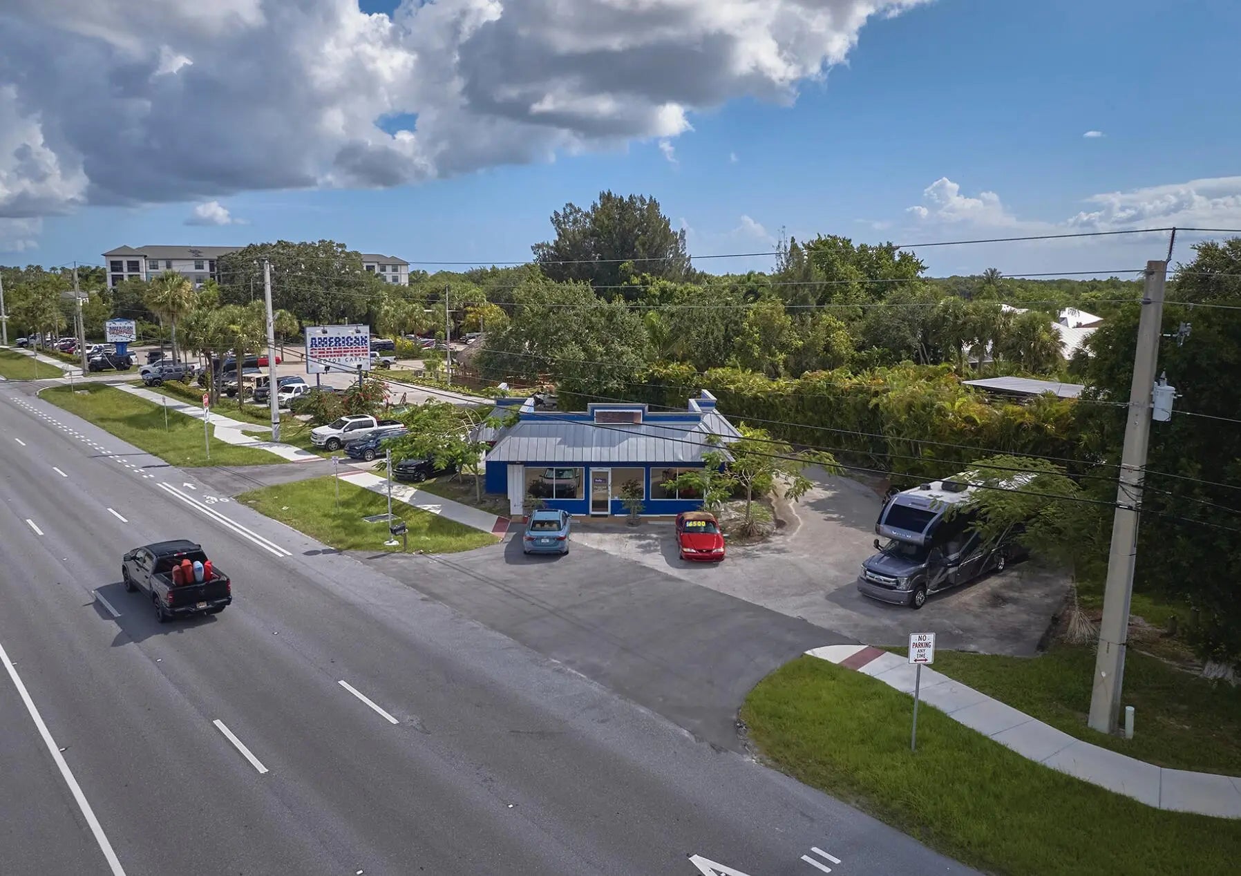 • Excellent opportunity to own a highly visible 1,083 SF commercial building along NW Federal Highway in Stuart, FL. • The interior offers a functional layout featuring a reception area, waiting area, private office suites, a conference room, and a restroom with a shower. • Formerly used as a small auto dealership, the property is ideal for automotive, retail, or professional service users. The site provides excellent branding potential with signage opportunities on the building and a dedicated, lit monument sign along US-1. • Additional amenities include a rear carport and storage shed, separated from the main building by a mature palm tree buffer. • Located near the Treasure Coast Mall and major national retailers, the property benefits from strong traffic counts, great visibility.