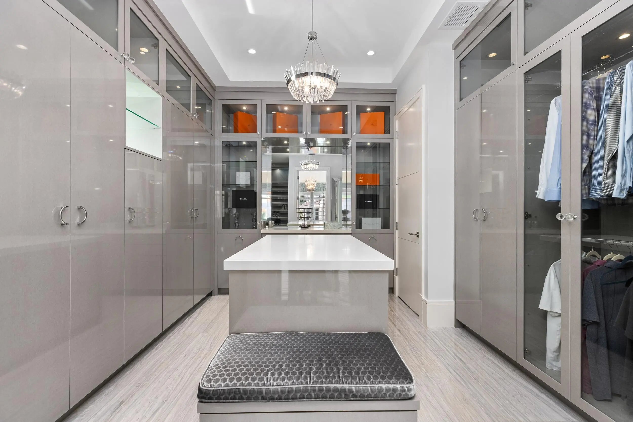 Bar, Built-in Features, Central Vacuum, Elevator, High Ceilings, Wet Bar, Walk-In Closet(s), Bedroom Layout - Split, Closet Cabinetry, Upstairs Living Area, Cabana Bath, Storage