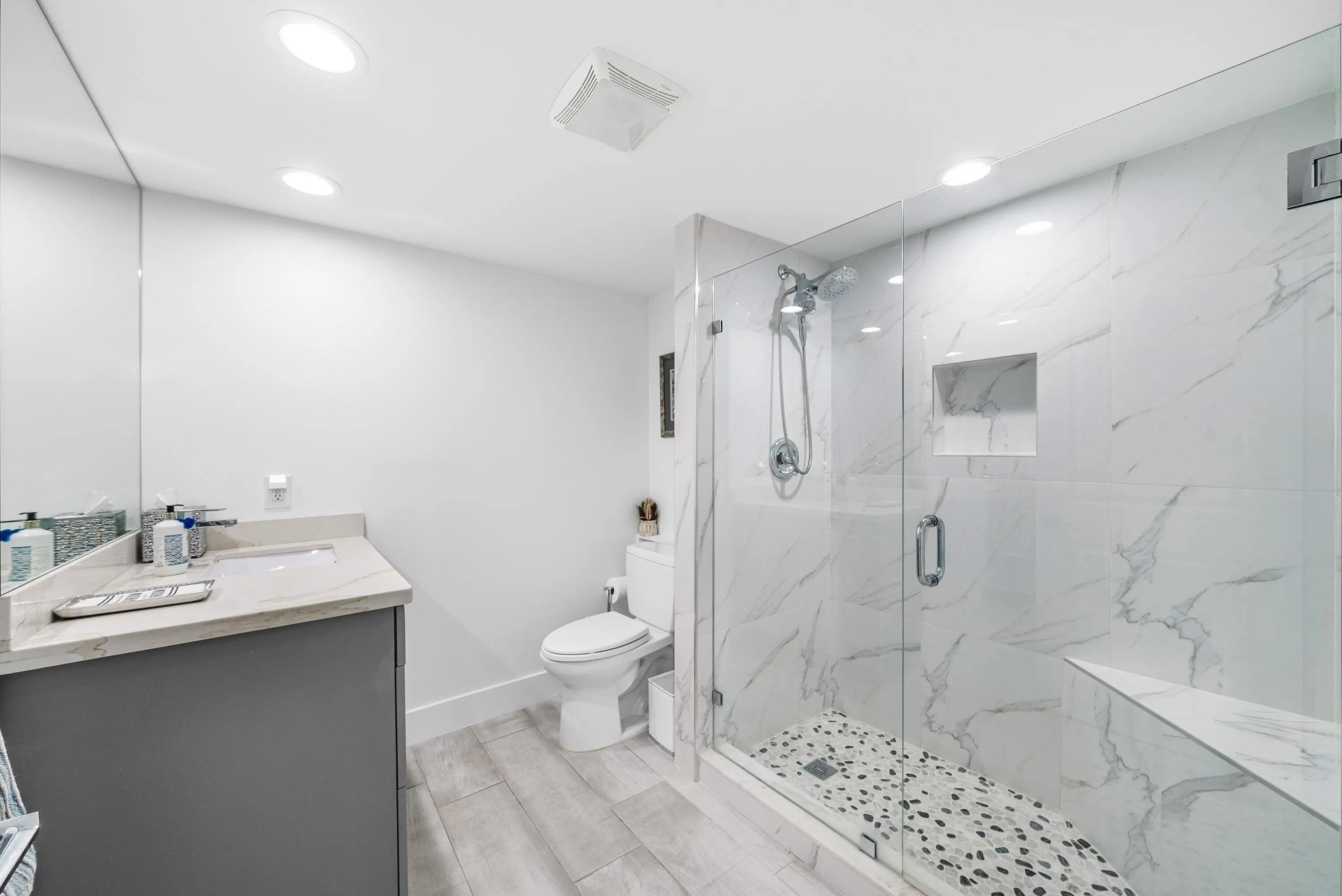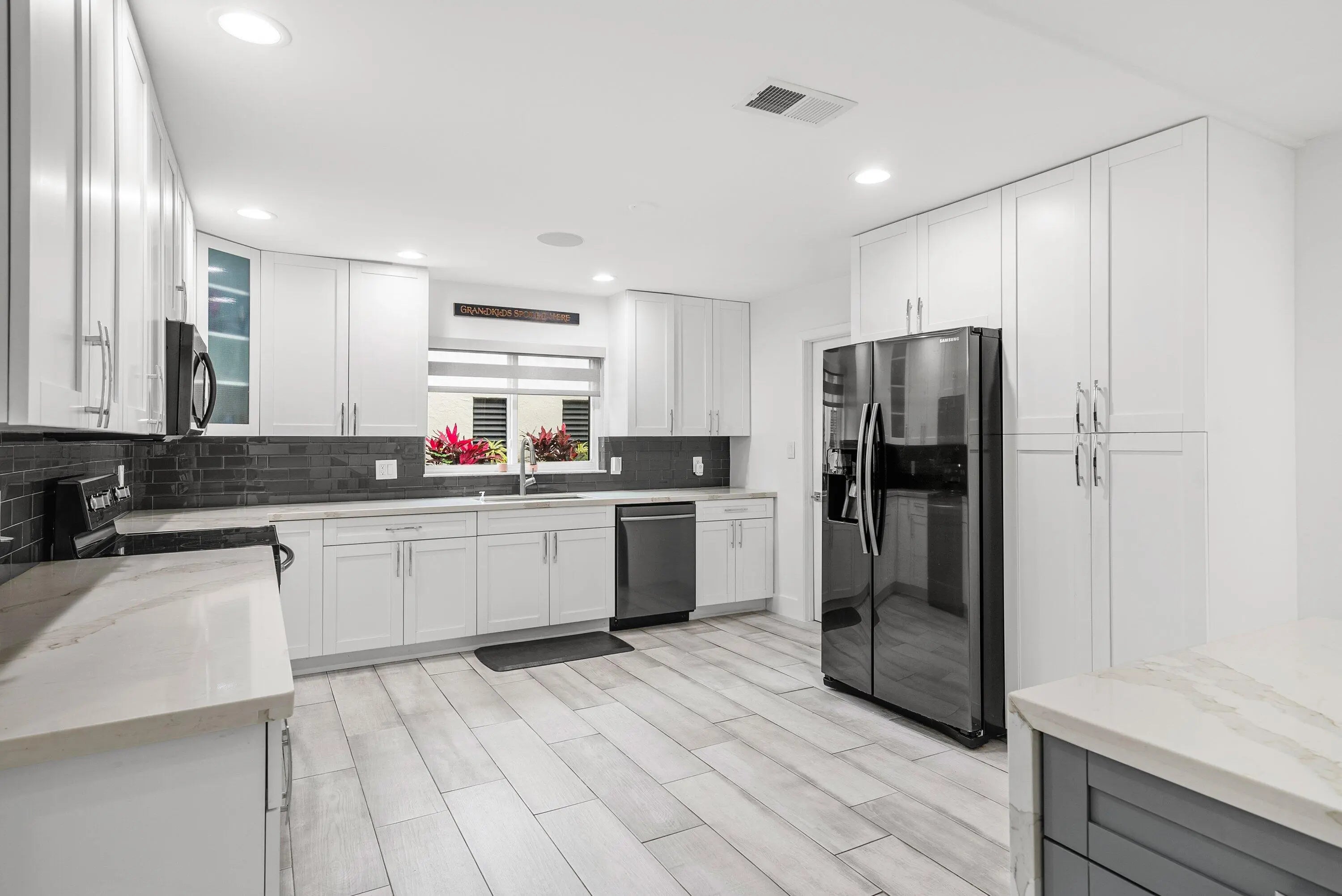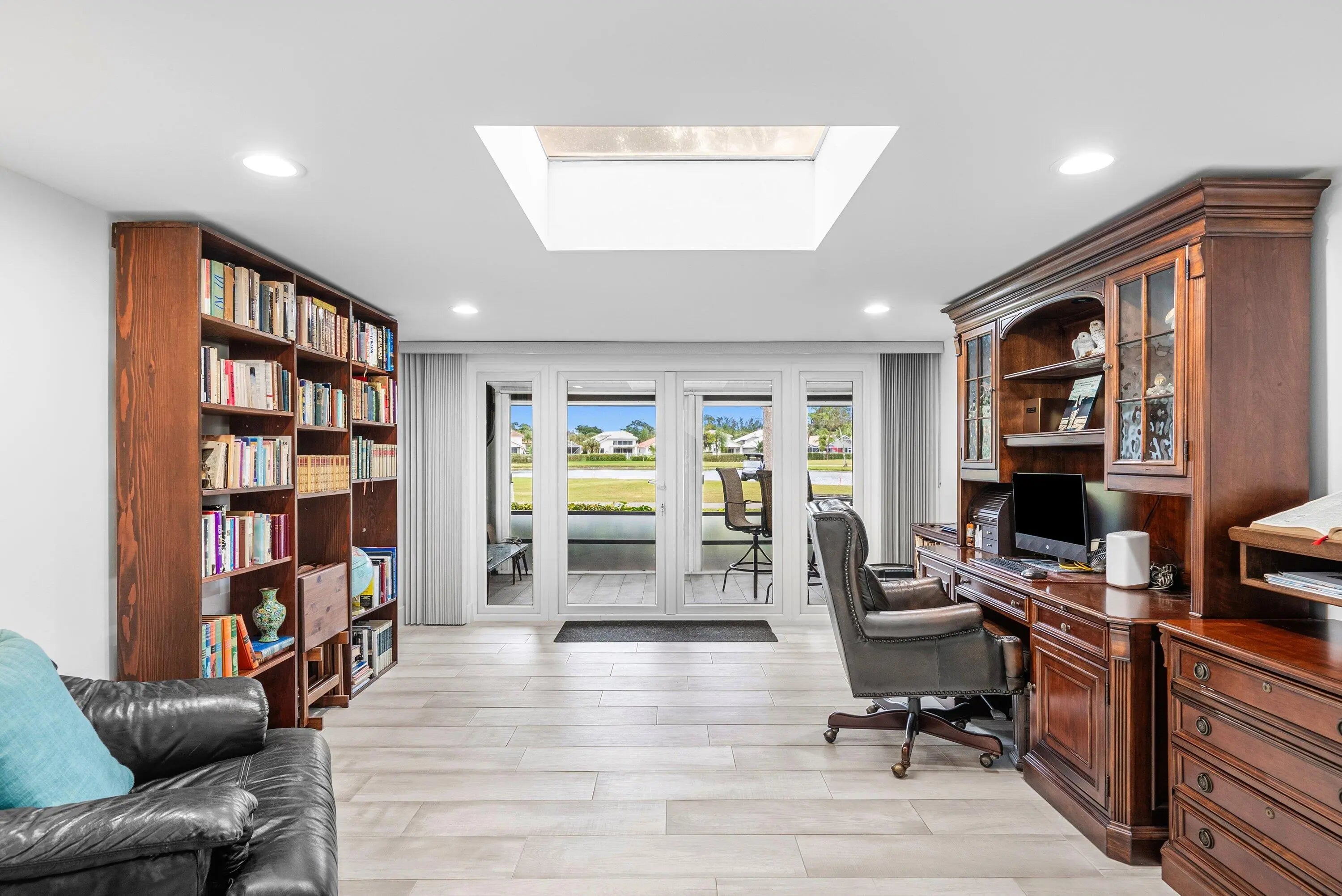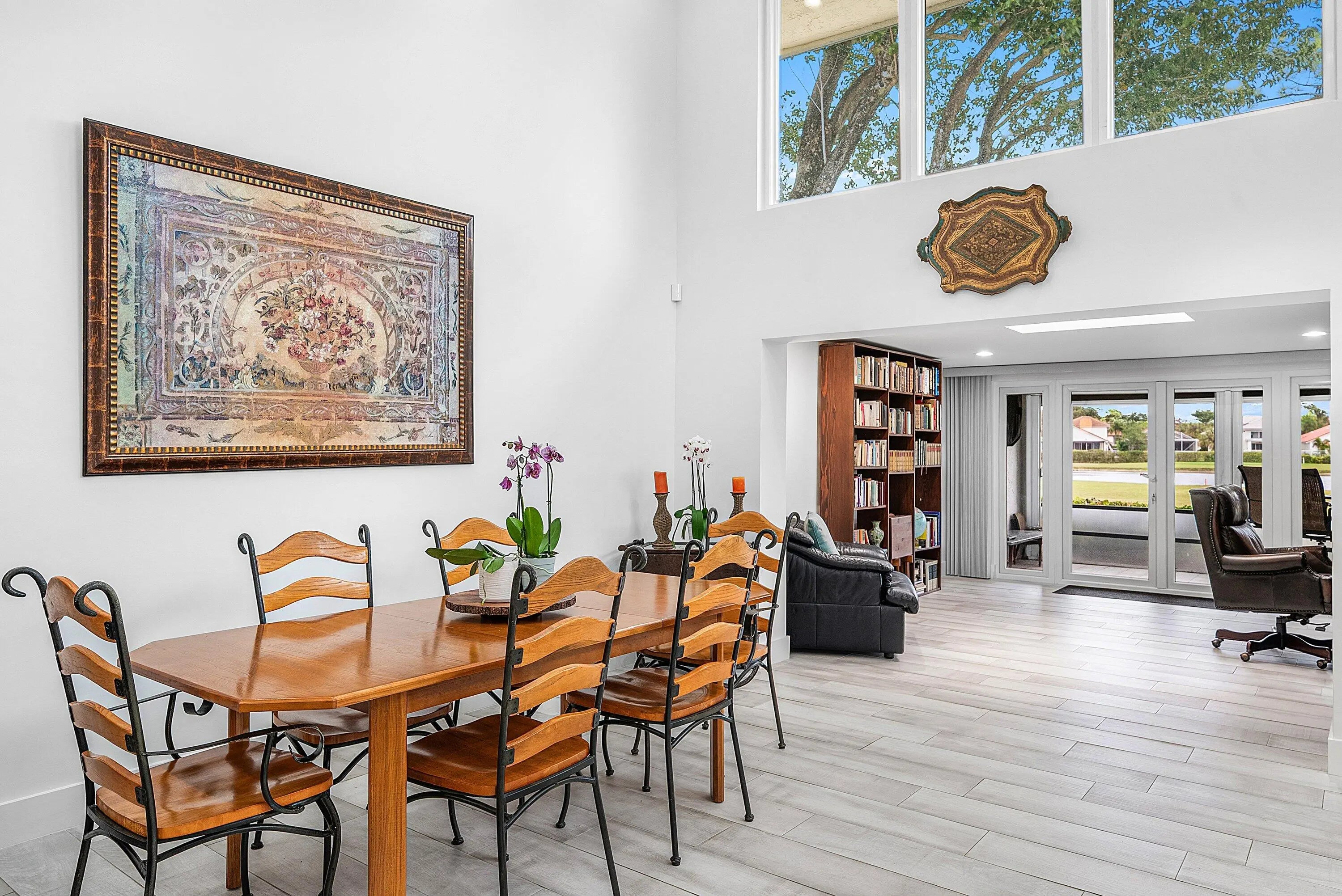 Welcome to this fully renovated 3-bedroom plus den, 2-bath residence in the sought-after Palms of Boca Lago, offering breathtaking lake and golf course views and a beautifully refined interior designed for modern Boca Raton living. From the moment you enter, you'll notice the home's volume ceilings and airy, light-filled layout that creates an elegant sense of space. The beautiful chef's kitchen is the heart of the home, featuring an oversized center island perfect for entertaining, abundant cabinetry, and a highly desirable walk-in pantry for effortless organization and storage. This residence offers true peace of mind with major upgrades already complete, including a new roof (2024), A/C replacement (2023), a new water heater (2025), partial impact windows, indoor/outdoor Sonos system, and and enclosed garage. Set against a tranquil backdrop of shimmering water and manicured fairways, this move-in-ready home combines timeless sophistication with today's most in-demand updates - just minutes from Boca Raton's premier dining, shopping and entertainment.