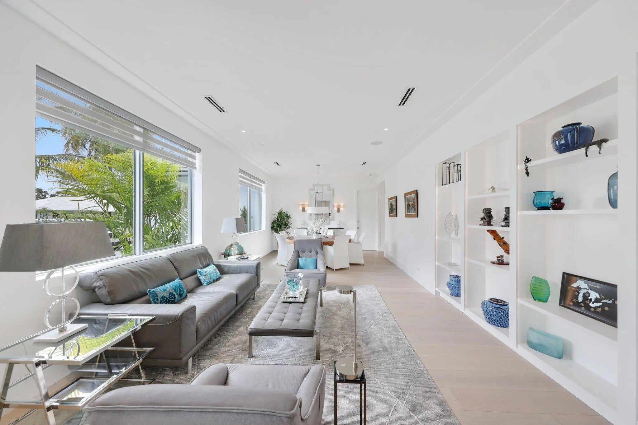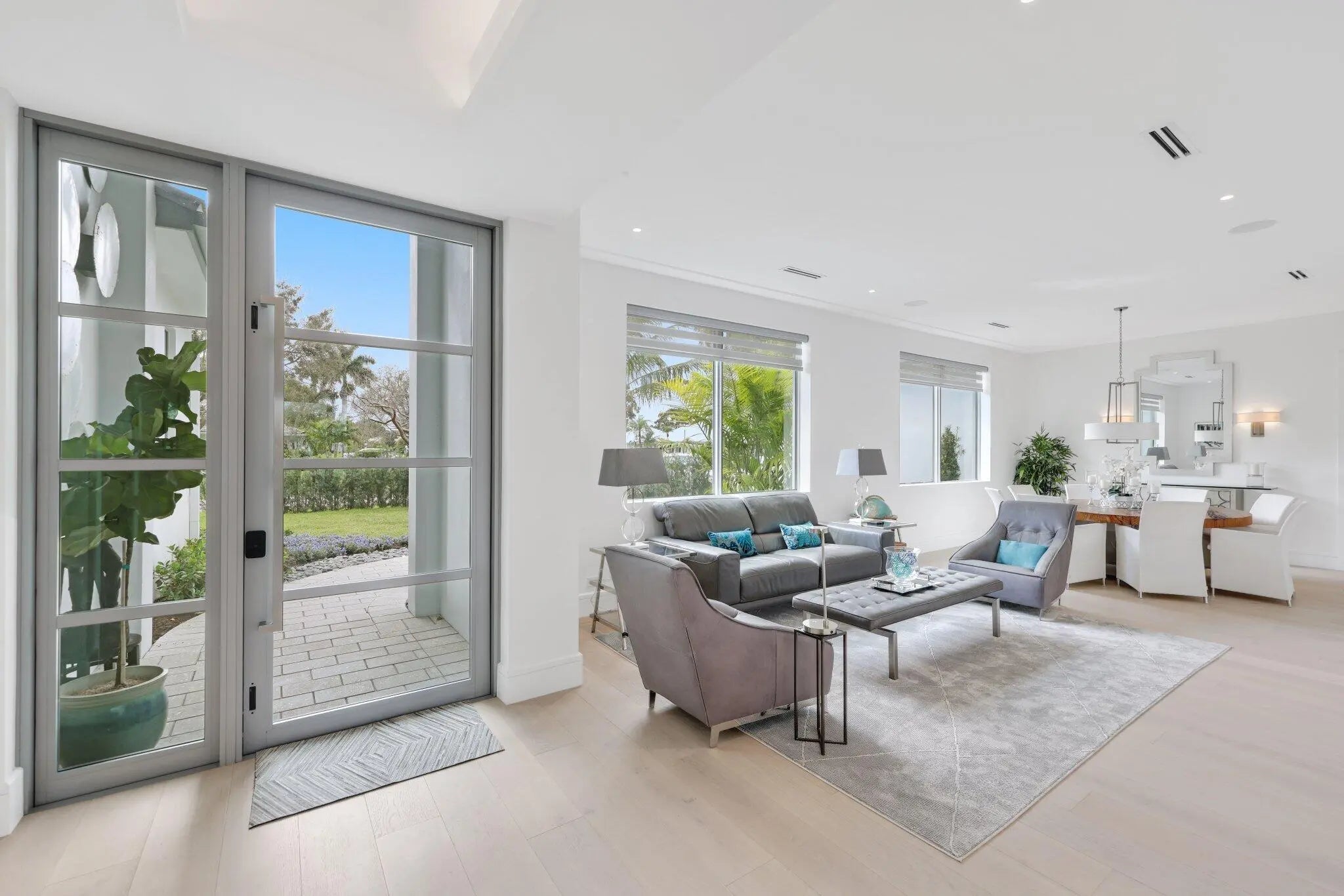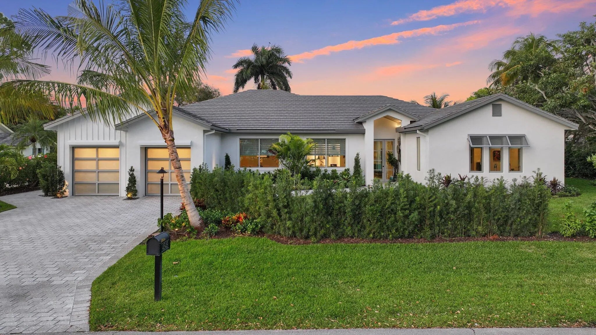 Live the Lifestyle! This custom -built residence, completed in 2024 by Signature Builders for the business owner, embodies traditional new construction and modern enhancements. It features panoramic views of the Delray Dunes Golf & Country Clubs signature 18th green and is conveniently located just a three minute walk from the clubhouse and amenities. The split-bedroom plan, accented by French White Oak flooring throughout, ensures optimal privacy for residents. All interiors walls are sound insulated for enhanced tranquility. The primary bathroom includes a floating dual-sided vanity with ceiling suspended mirrors, an outdoor shower and bathtub enveloped by coconut palms to evoke a tropical ambiance, two separate walk-in closets, a private toilet room and an indoor shower. Ceilings throughout the home are 10 feet high or vaulted, while 9-foot exterior doors and windows maximize natural light infiltration. Additional amenities encompass smart lighting controls, motorized window treatments, a centrally wired AV system, a 1,000 gallon in-ground propane tank, and pre-wiring for a whole-home generator. High-end finishes and structural reinforcements exceeding current building codes underscore the superior quality and thoughtful design of this contemporary home. The swimming pool is scheduled for completion by the end of February 2026.