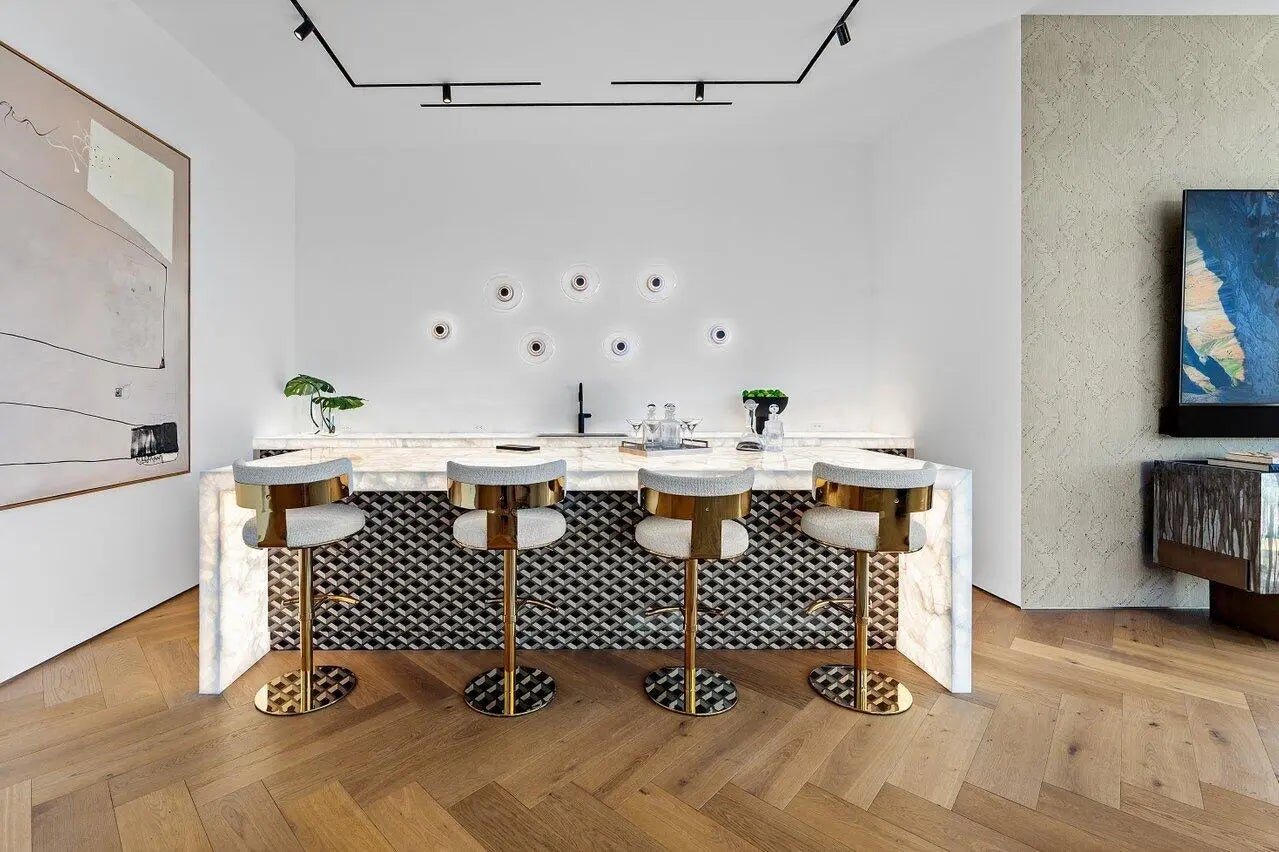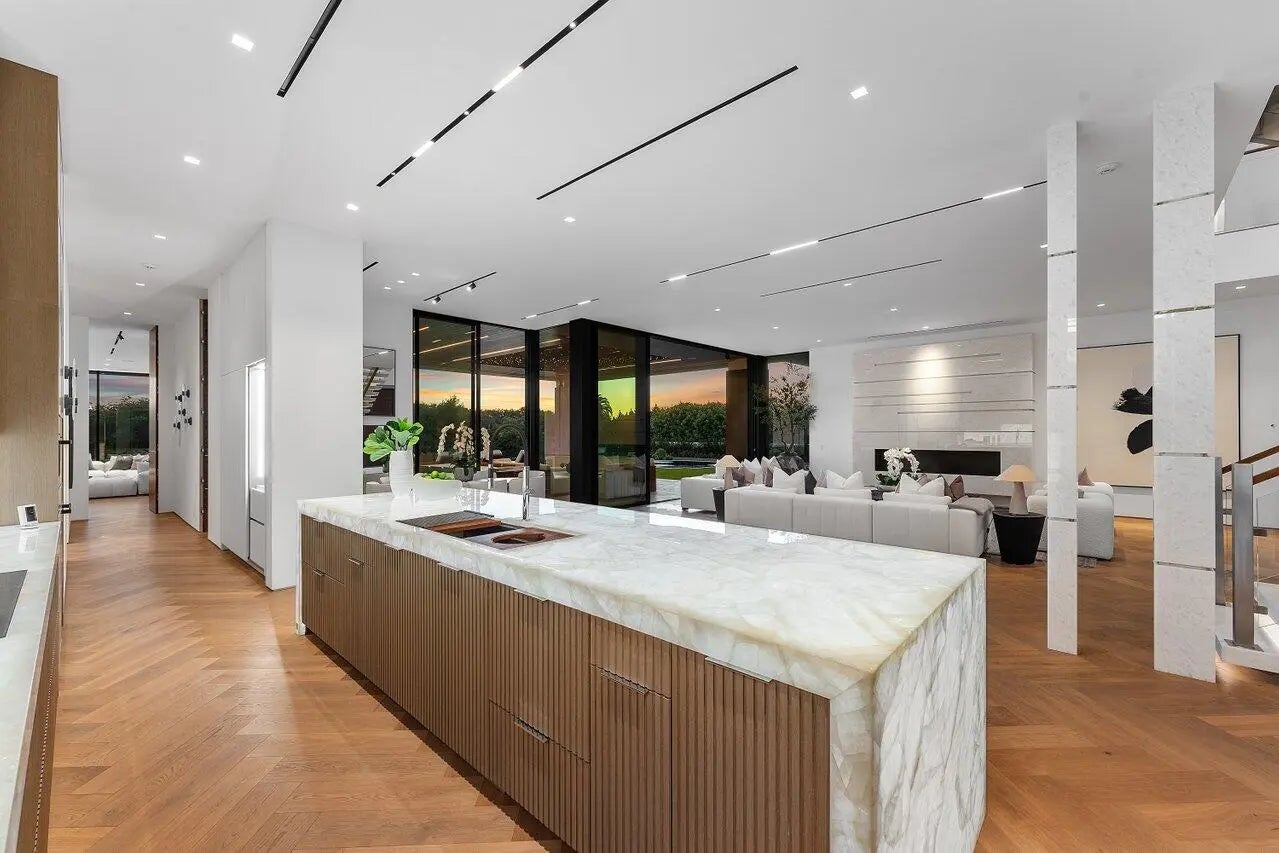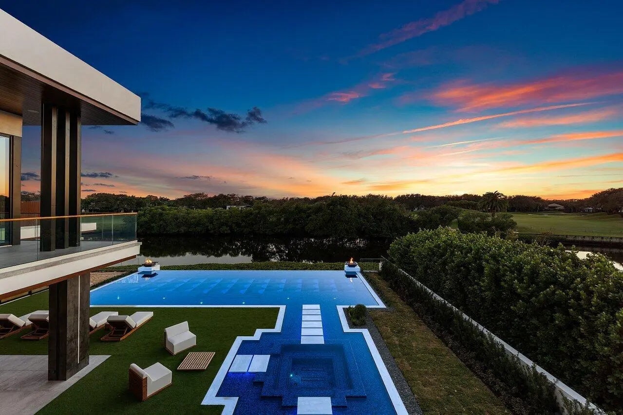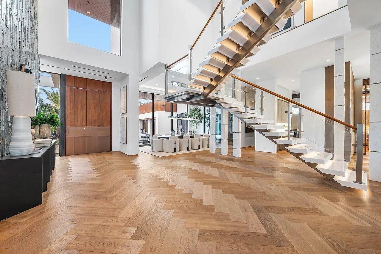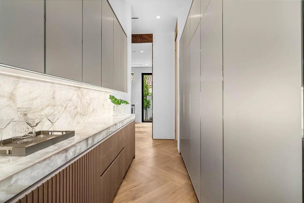Step into unparalleled luxury in this brand-new custom estate located in the prestigious guard-gated community of Admirals Cove. Perfectly positioned on a quiet cul-de-sac just steps from the main clubhouse. This residence offers effortless access to world-class amenities, dining, spa, golf, and marina. A dramatic travertine and silver-leaf feature wall welcomes you, while the floating Cristallo staircase serves as a striking architectural centerpiece. Offering approximately 9,971 SF under air and 12,600 SF total. The home features 5 bedrooms including a first-floor primary suite, 6.1 baths, MAFI Austrian wood floors, and exceptional craftsmanship throughout. Two designer kitchens include a chef's kitchen and a stunning show kitchen with illuminated Cristallo quartzite countertops Ultra-high-end Eggersmann cabinetry, professional-grade appliances, and a custom coffee center define the designer kitchen. The primary bedroom is a serene retreat with La Finestra glass walls opening to the spa and pool, plus a spa-inspired bath with backlit agate countertops, integral stone sinks, dual water closets, freestanding soaking tub, titanium-tiled shower, and two custom walk-in closets. First-floor features include a VIP guest suite, two powder rooms, elevator, striking office, clubroom, hair salon, butler's pantry, formal dining room, wine room, laundry and dog wash station. The private wellness suite offers a state-of-the-art gym, white aspen finishes, infrared sauna, red-light and salt therapy. The office showcases custom Brazilian teak blocks with brass inlays and a stone biofuel fireplace. A tranquil family lounge overlooks the pool, gardens, and golf course. Upstairs offers a loft and three VIP suites with balconies capturing water, mangroves, and fairway views. The resort-style outdoor living features a Euro-edge heated and chilled saltwater pool with lap lanes, fire bowls, spa, sun shelf, summer kitchen with pizza oven, cabana bath, retractable screens, premium sound, and lush privacy landscaping. Additional highlights include 11'9" ceilings, Cristallo underlit countertops, La Finestra windows and doors, two exotic stone fireplaces, Crestron smart home technology, full-house generator, VRF climate system and high-tech security. The air-conditioned five-car garage offers 13' ceilings, EV charging, and lift capability. Front Entry: Elegant stainless steel sculpture by renowned artist, Alexander Krivosheiw featured in Architectural Digest. Required Admirals Cove golf membership includes two clubhouses, 45 holes of championship golf, marina, yacht club, five restaurants, tennis, pickleball, spa, salon, fitness, and kids club. Close to PBI. A rare and irreplaceable offering. BUILDER: Boca Raton Custom Homes ARCHITECT: Randall Stofft