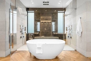 Bar, Built-in Features, Entrance Foyer, Elevator, High Ceilings, Pantry, Wet Bar, Walk-In Closet(s), Bedroom Layout - Split, Closet Cabinetry, Custom Mirrors, Roman Tub, Upstairs Living Area, Cabana Bath