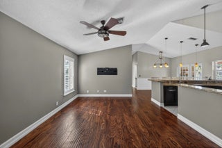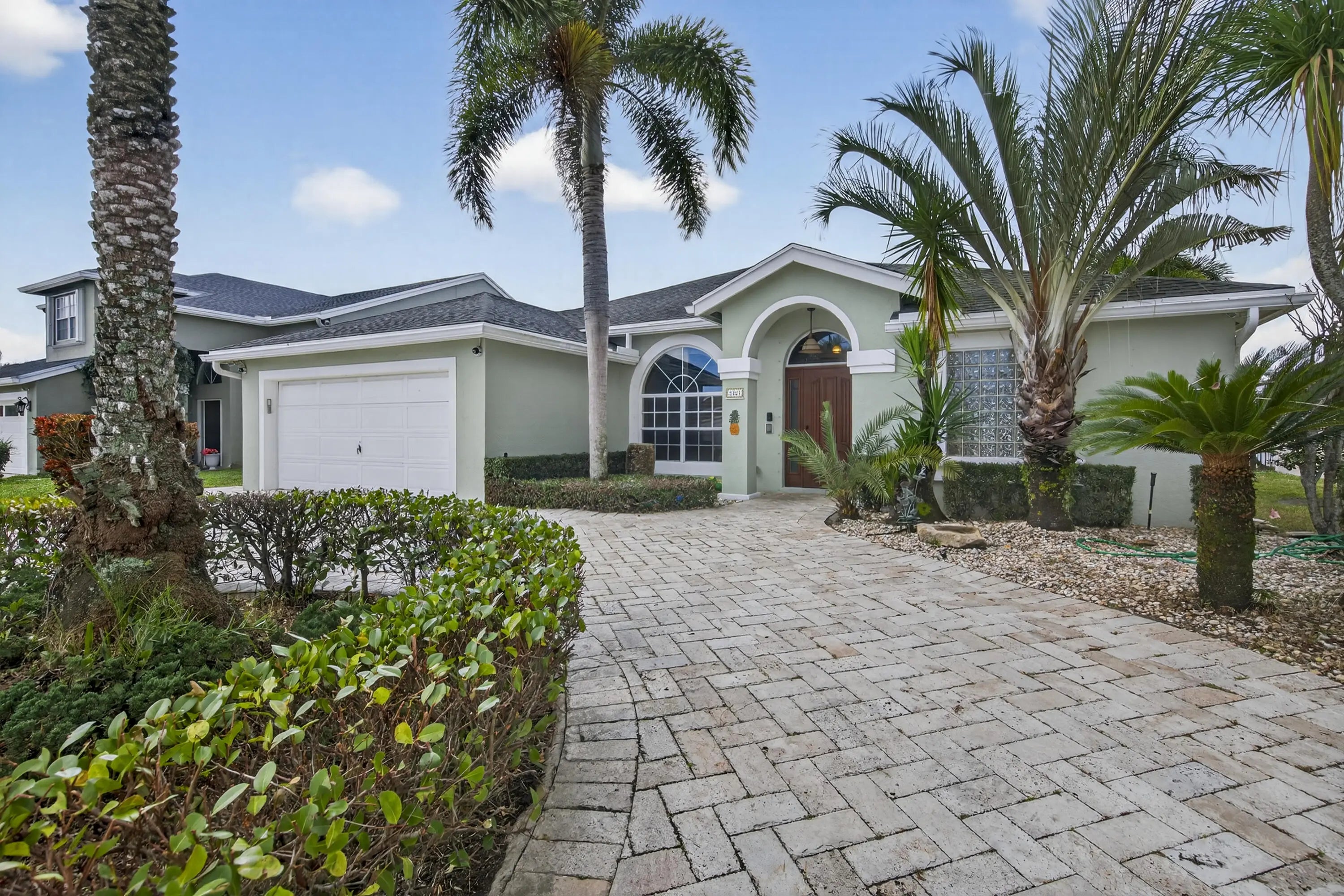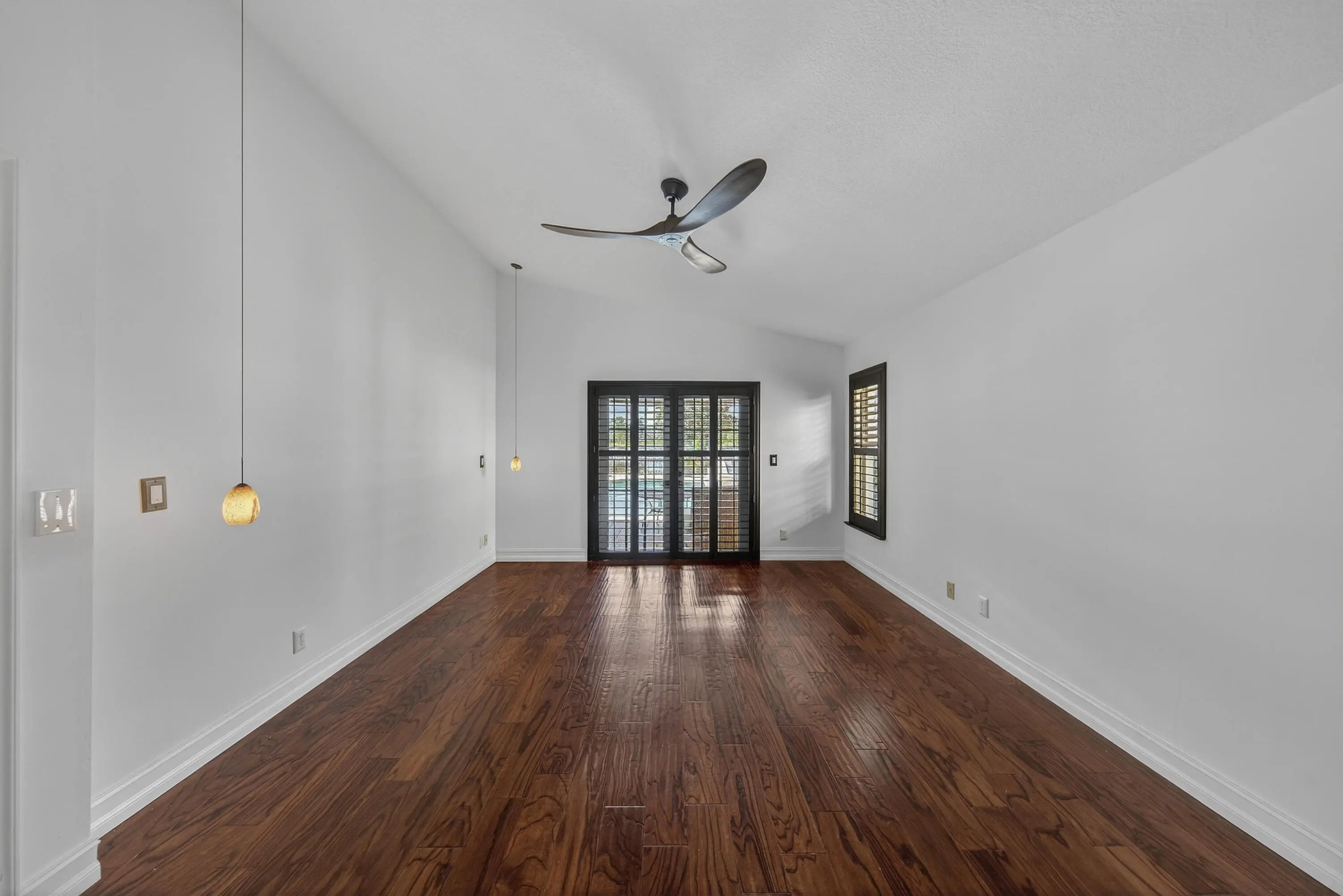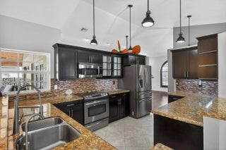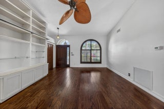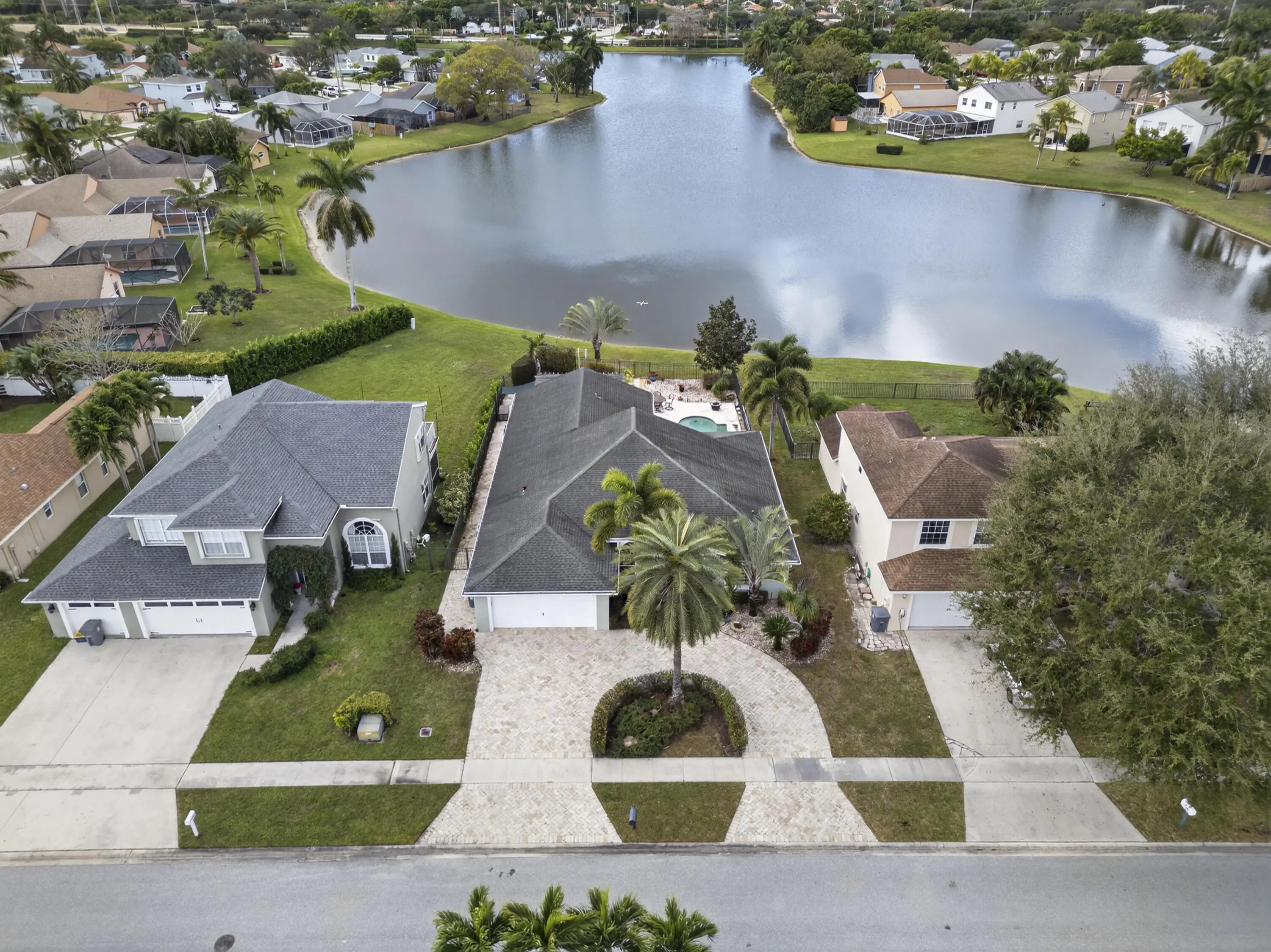 Well maintained four bedroom two bath home offering a flexible layout, including one bedroom currently used as a home office. The west facing backyard features a pool and spa overlooking the lake, creating a pleasant outdoor setting. The built in outdoor kitchen includes granite counter-tops, grill, smoker, refrigerator, ice maker, and bar seating. Interior features include a split bedroom plan, vaulted ceilings, hardwood flooring, plantation shutters, and custom California closets. Additional highlights include smart home features, a travertine circular driveway, a private park like setting, and access to community tennis courts.