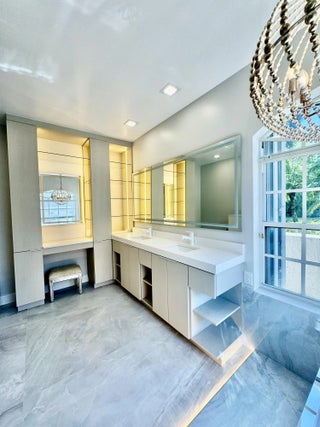Absolutely Spectacular!! Completely Decorator Renovated! Everything NEW!! The ultimate kitchen with backlit quartzite counters and Island! New Samsung Bespoke white glass appliances! Huge family room. Large living room, separate dining room Luxurious bathrooms with smart toilets! Main bathroom features large walk in multi jet shower and jacuzzi tub. Exquisite 4 ft porcelain floors and wood floors in bedrooms. Soaring vaulted ceilings Up to 20 ft.! All New Lighting. New tile roof. Large screened in swimming pool on quiet interior lot. All in Guard gated central Boca location. Golf and Country club is available if desired. Best schools. Close to everything. This is everything you could possibly dream of. LEASE PURCHASE AVAILABLE