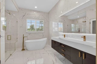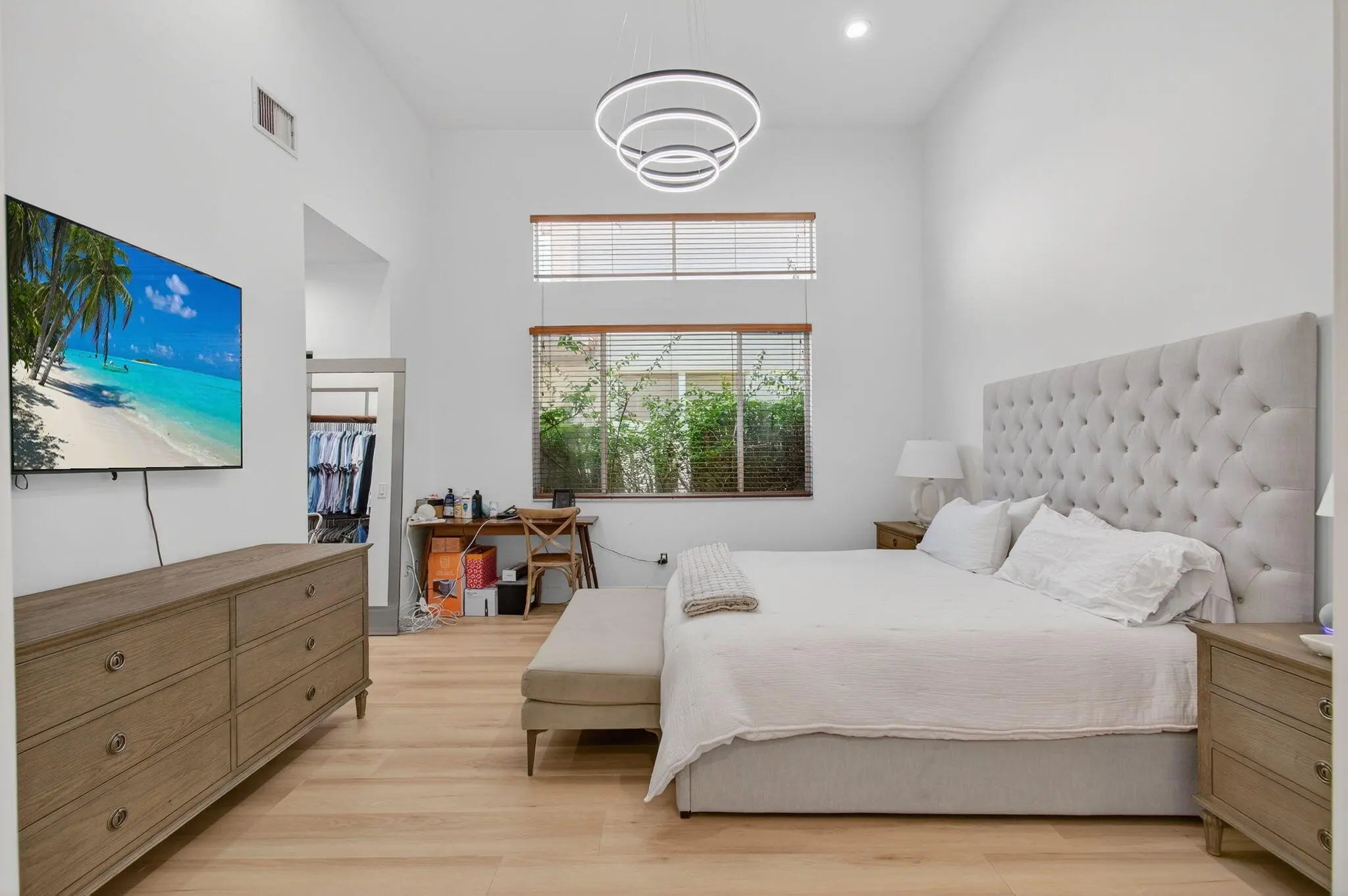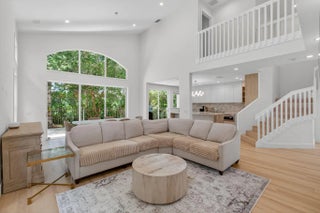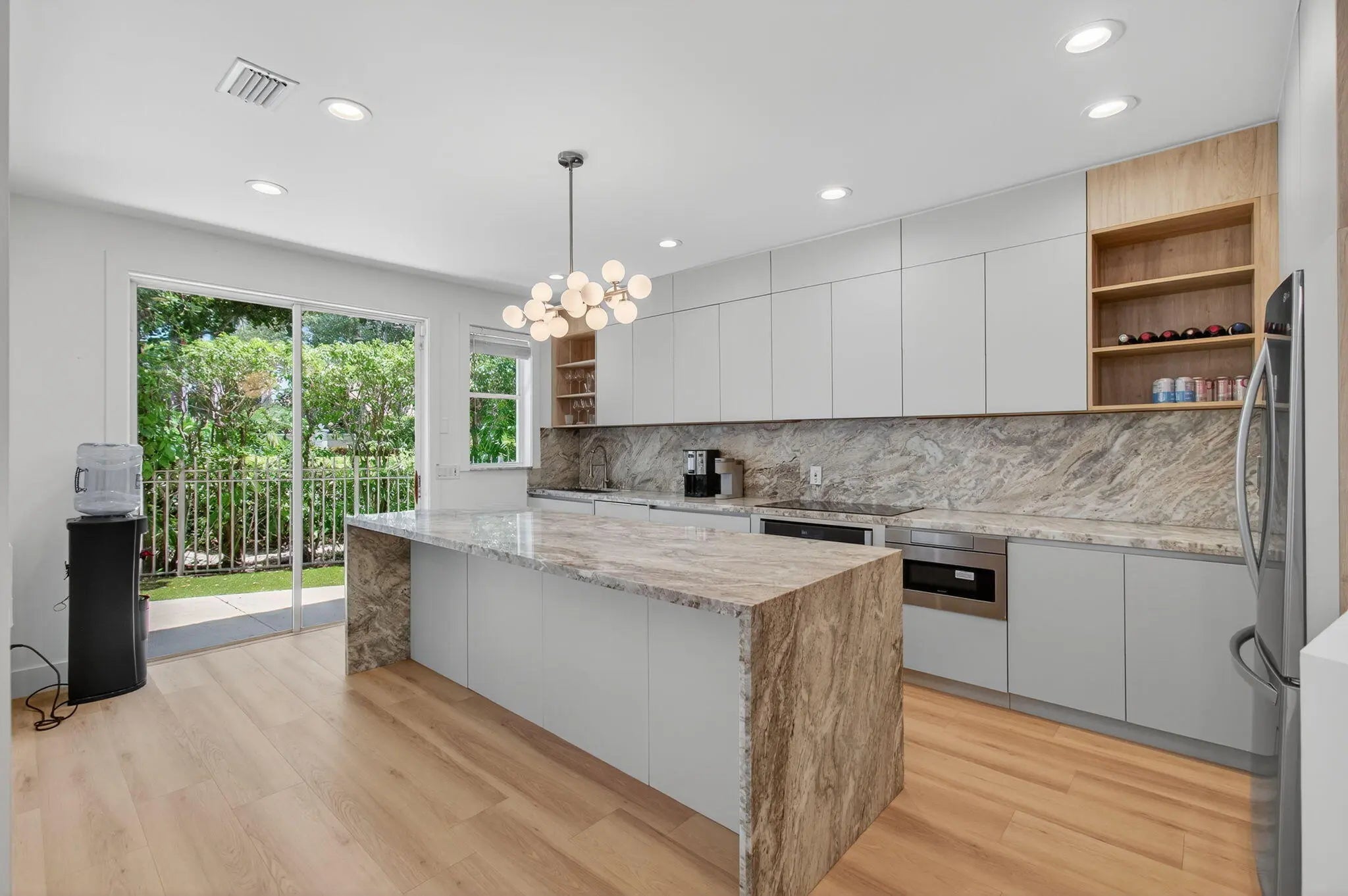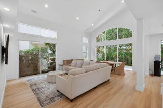 Welcome to this stunning 3-bedroom, 3.5-bathroom remodeled home located on a quiet cul-de-sac in the highly sought-after Village of Laurel Pointe within Broken Sound Country Club. Spanning 2,367 square feet, this bright and spacious residence features soaring vaulted ceilings, a thoughtfully designed layout, and designer finishes throughout. The luxurious primary suite is conveniently located on the main level and offers a walk-in closet, a spa-like bathroom with a freestanding soaking tub, and a frameless glass shower. Upstairs, you'll find two generously sized guest bedrooms, each with its own en-suite bathroom, providing privacy and comfort for family or visitors. The gourmet kitchen is a chef's dream, highlighted by a large waterfall center island with built-in beverage cooler, sleek cabinetry, and stainless appliances - ideal for entertaining. The open-concept living and dining areas are filled with natural light and flow seamlessly to the private, fenced-in backyard complete with low-maintenance AstroTurf - perfect for pets or outdoor enjoyment. Enjoy the exclusive lifestyle and resort-style amenities of Broken Sound Country Club, including golf, tennis, dining, spa, and fitness center. Don't miss this exceptional opportunity to own a turnkey home in one of Boca Raton's premier communities.