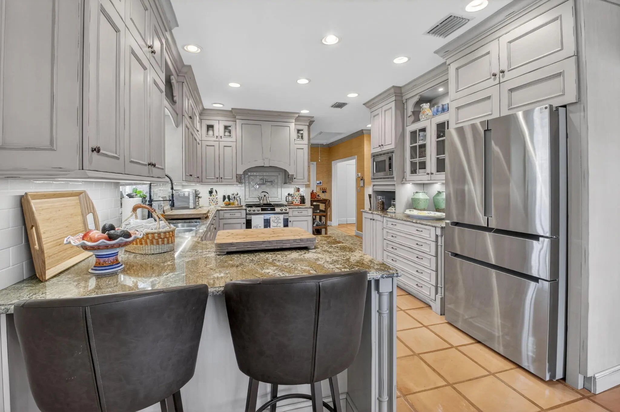 Pristine, traditional home offering 3 bedrooms/den with over 3400 a/c sq ft. Lovely, gated courtyard entrance leading to entry w/custom double doors. Open flow into the living area with high ceilings and custom wet bar. Spacious primary suite with sitting area, his and her closets and updated bathroom. Formal dining room, updated kitchen and family area. The laundry room has LG w/d, custom cabinets and much more. Garage is a/c with epoxy flooring. Screened pool area and covered patio. Lovely home, great for entertaining!! Improvements: 2025 new well for irrigation, new refrigerator, 2022, new roof, 500-gal gas tank, W/D, Water heater, generator, 2 A/C, pool pump, A/C in garage & epoxy flooring. This home is one of a kind and you don't want to miss it! Mandatory golf members This home is special and one of a kind. Come enjoy quiet luxury living in this beautiful traditional home with lake views. Delray Dunes Golf and Country Club offers golf, tennis, fine dining, fitness center and much more. Membership fee is $115,000. Location is close to shopping, dining, I95, turnpike, WPB airport, and hospitals.