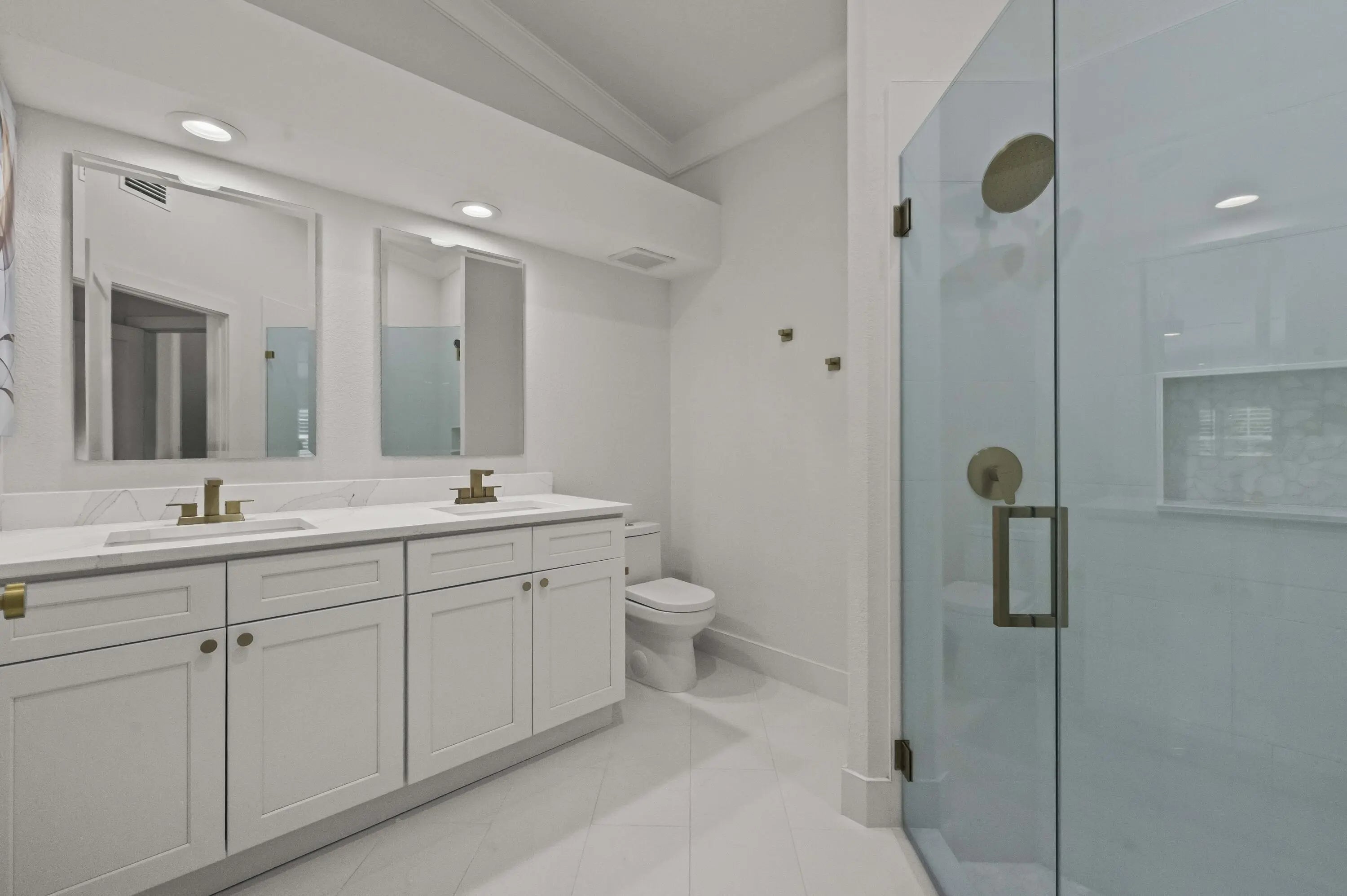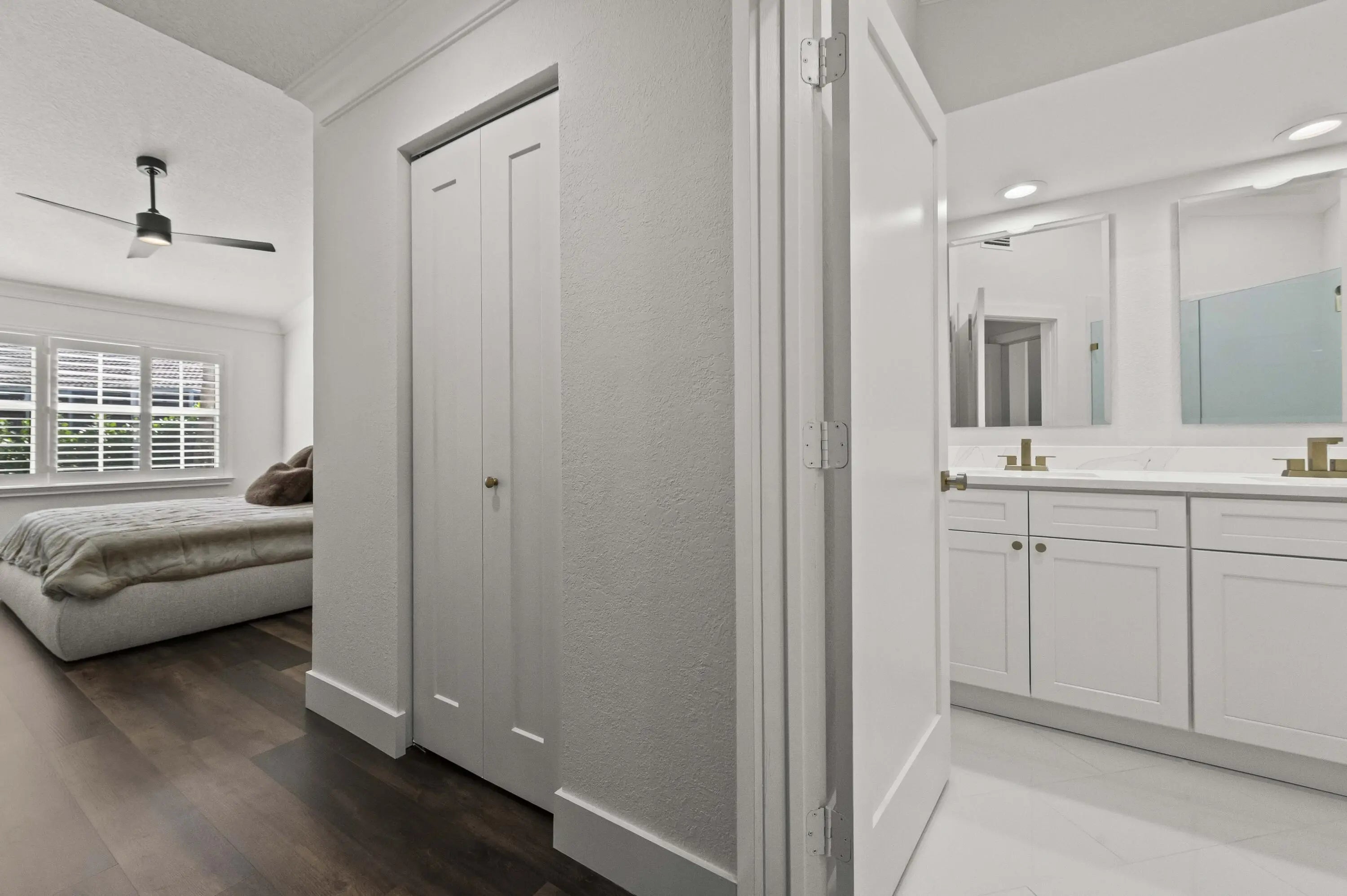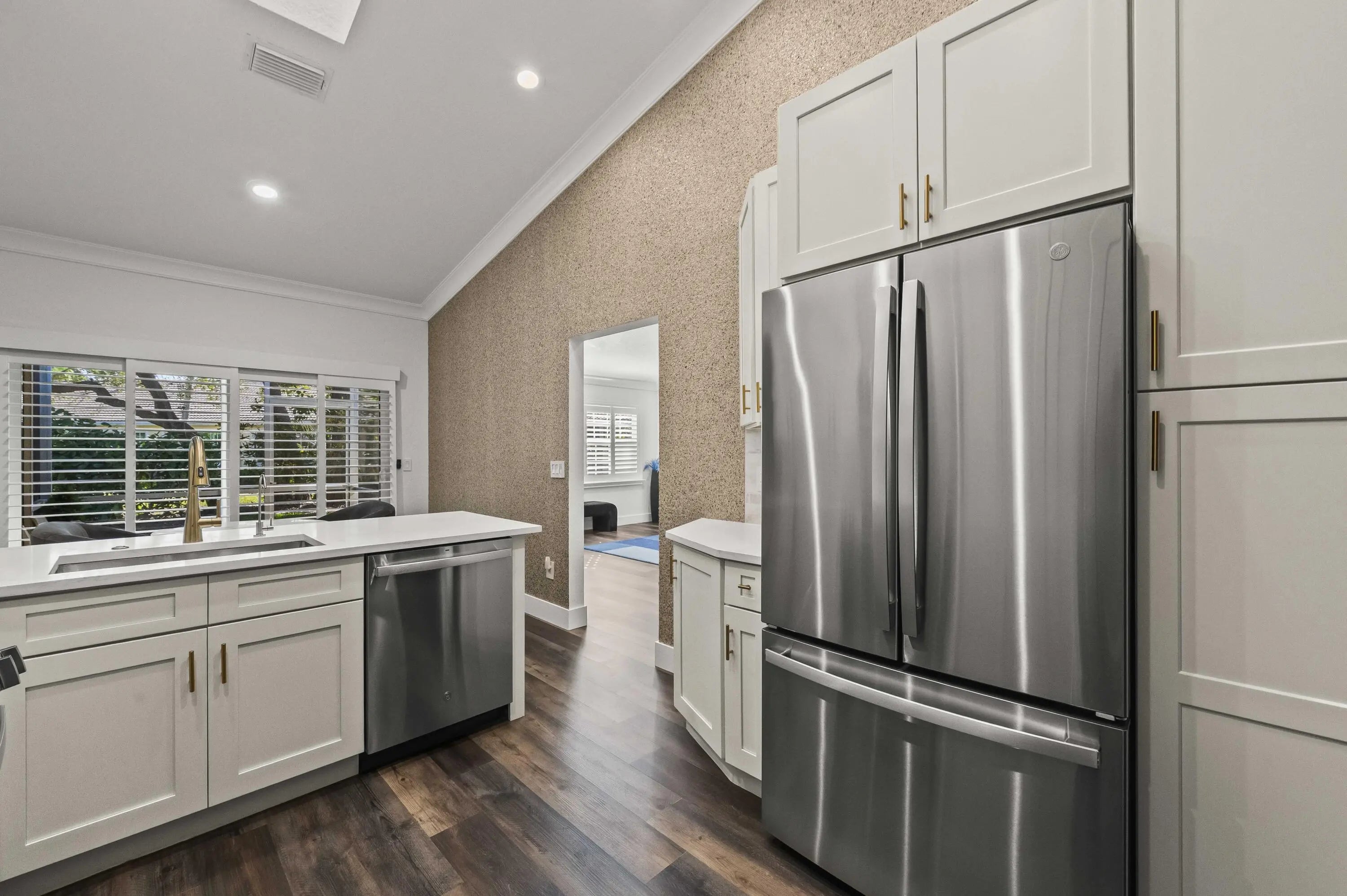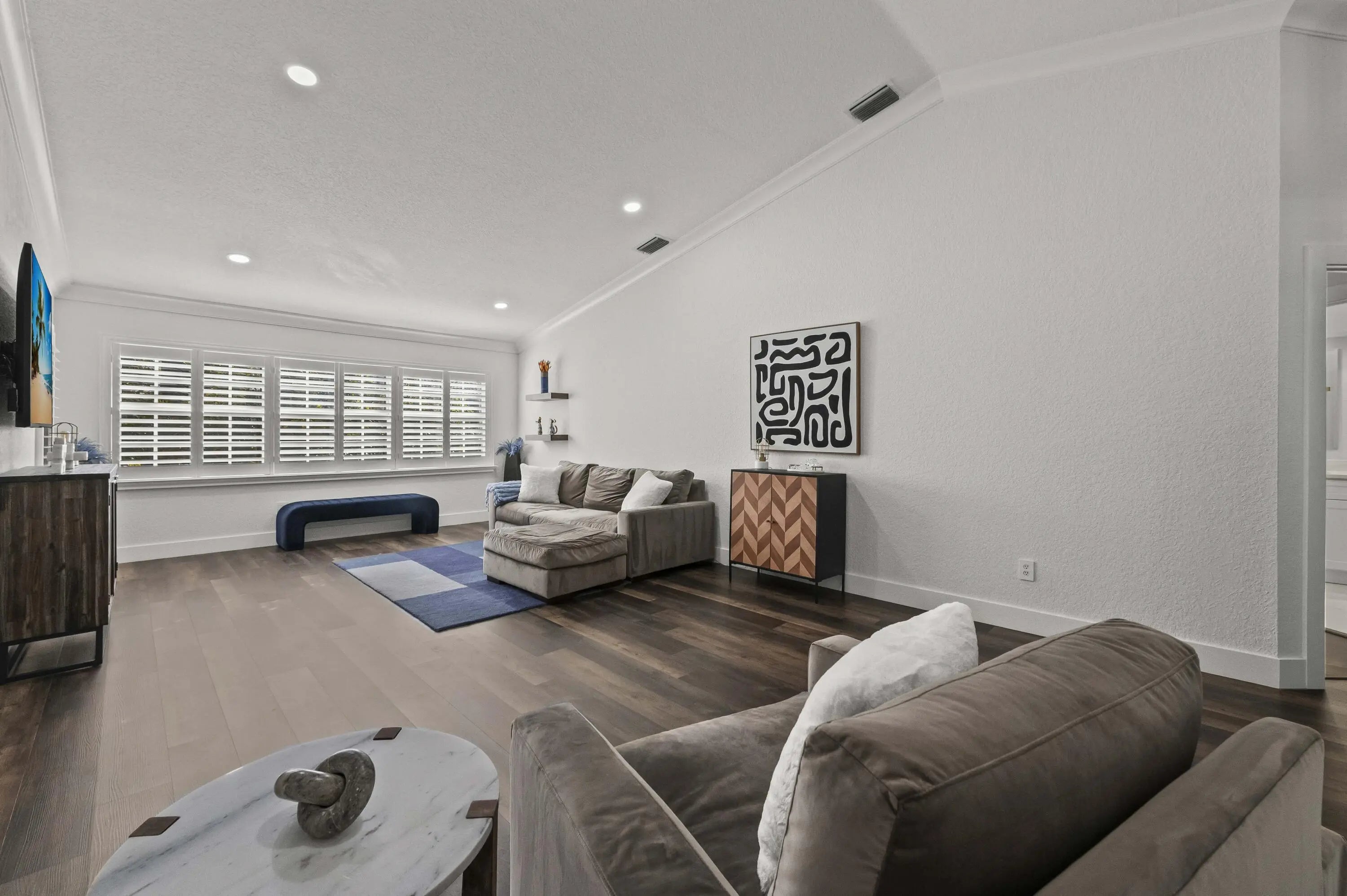 Impeccably renovated 3-bedroom, 2-bath, 1-car garage villa in Boca Country Club. Crown molding, vaulted ceilings, and skylights enhance this bright single-story layout featuring an oversized primary suite, custom closets throughout, and a private screened patio. New kitchen with quartz countertops, designer backsplash, shaker cabinetry, upscale hardware, and all-new appliances. No expense spared from plantation shutters, LED lighting, spa-style baths, impact doors and windows, hurricane-rated garage door, smart locks, an EV charger in the garage, & new A/C and water heater. No membership buy-in. HOA includes lawn care, exterior maintenance and insurance, roof, cable, internet, and 24-hour gated security. Zoned for A-rated schools, minutes to I-95, and walk to the public golf course.