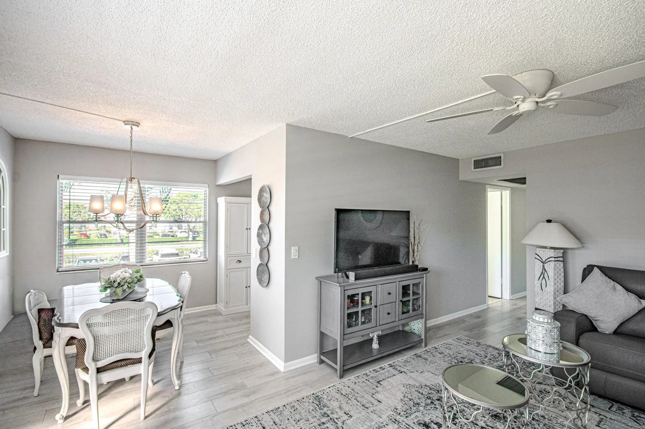 Beautiful and immaculate! Must-see new kitchen - quartz counters, stainless steel appliances. Updated powder room. Beautiful laminate floors. Partially furnished. Active clubhouse. Move-in ready. Parking space #29.