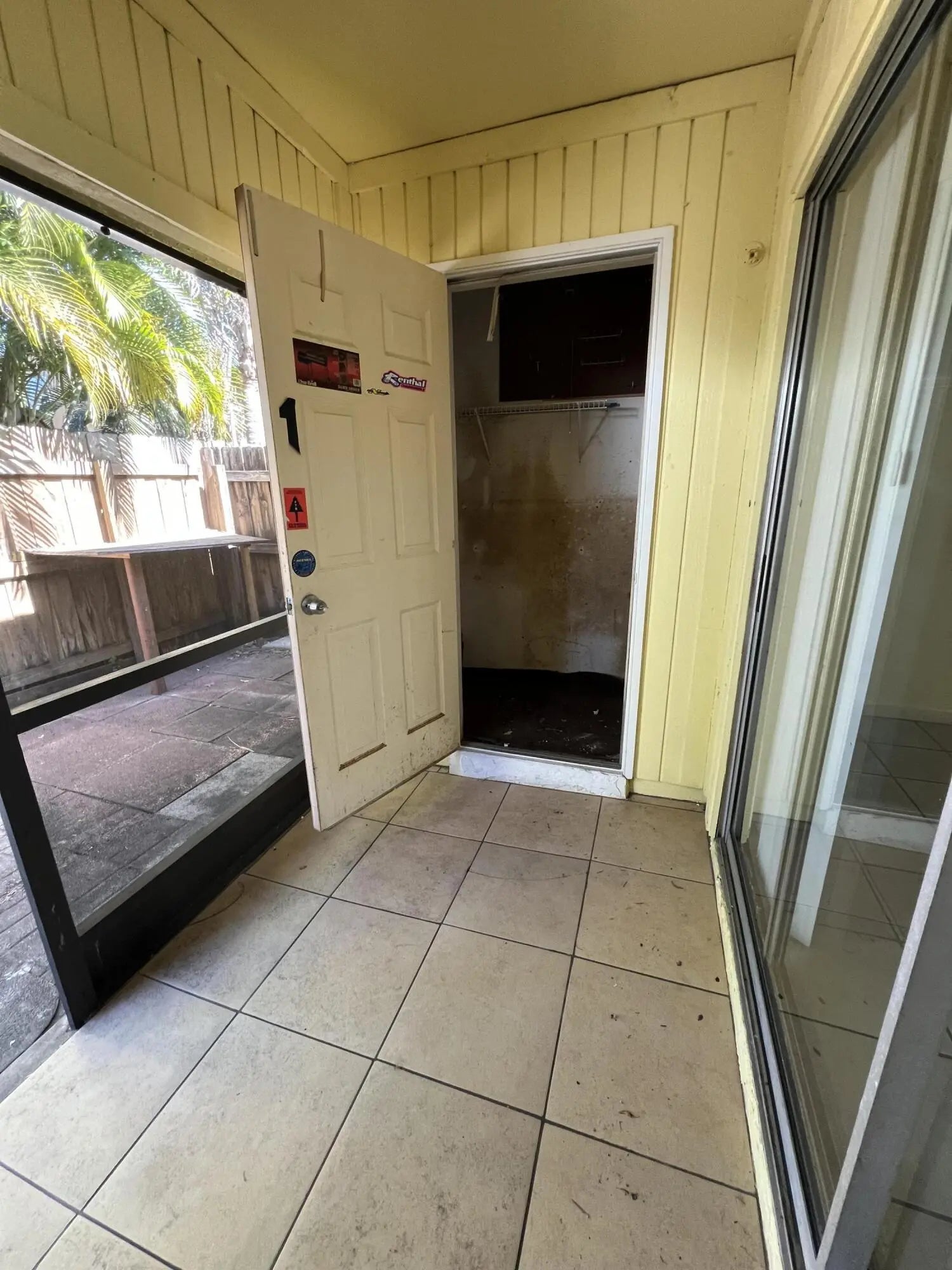 Great area, close to all shopping, dining and entertaining. Just a few miles west of beach. Publix shopping center and Walmart in walking distance. Unit is located at the very end of property with back yard and privacy. Newly renovated home and all appliances. Dishwaser and washer and dryer included. Central Hear/Air. Large walk in closet in bedroom. Bathroom has tub/shower combo.. Covered back patio with enclosed screen plus additional back yard with large shed and private storage. . Located on a very large private property. 12 month lease. Call for appointment and for details and move in requirements.