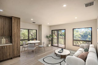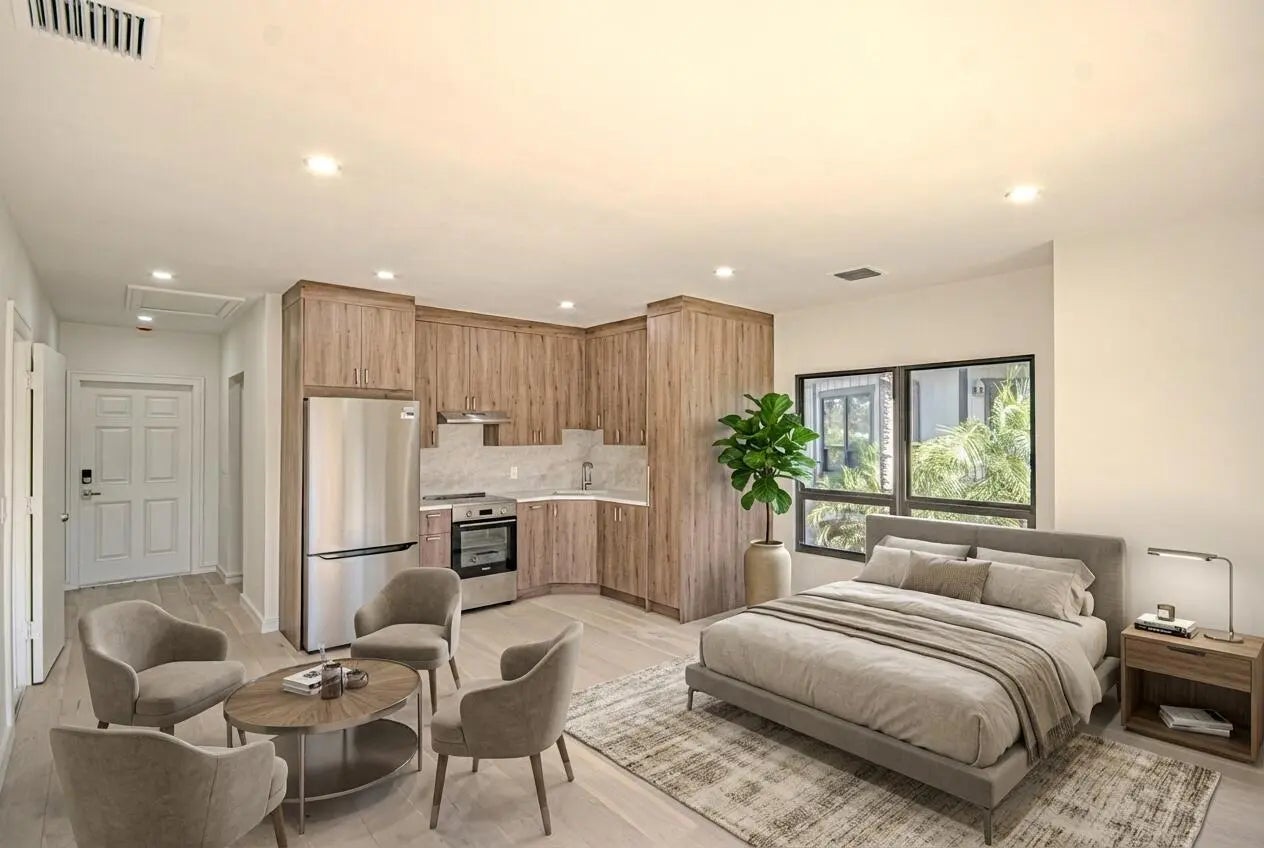 Welcome to Bagatelle at Palm Beach Polo Experience refined living in this stunning second-floor condo, perfectly situated near the guard gate with ample guest parking. This 2-bedroom, 2-bathroom residence has been meticulously updated, offering a sophisticated blend of style and functional design. This unit maintains the versatile floor plan, featuring a traditional full bedroom plus an attached efficiency—ideal for maximizing rental income or hosting guests with privacy. Chef's Kitchen: Renovated with sleek stainless steel appliances, quartz countertops, and modern cabinetry. Spa-Like Baths: Both bathrooms feature quartz vanities, frameless glass showers, and elegant contemporary finishes. Designer Touches: Custom closets, high-end flooring throughout. The Lifestyle: Enjoy world-class amenities including two onsite restaurants, a fitness center, tennis, and pickleball. Nature lovers will appreciate the Dunes Preserve, a 150-acre park featuring walking and biking trails and a dedicated dog park. This move-in-ready gem is the perfect Palm Beach retreat.