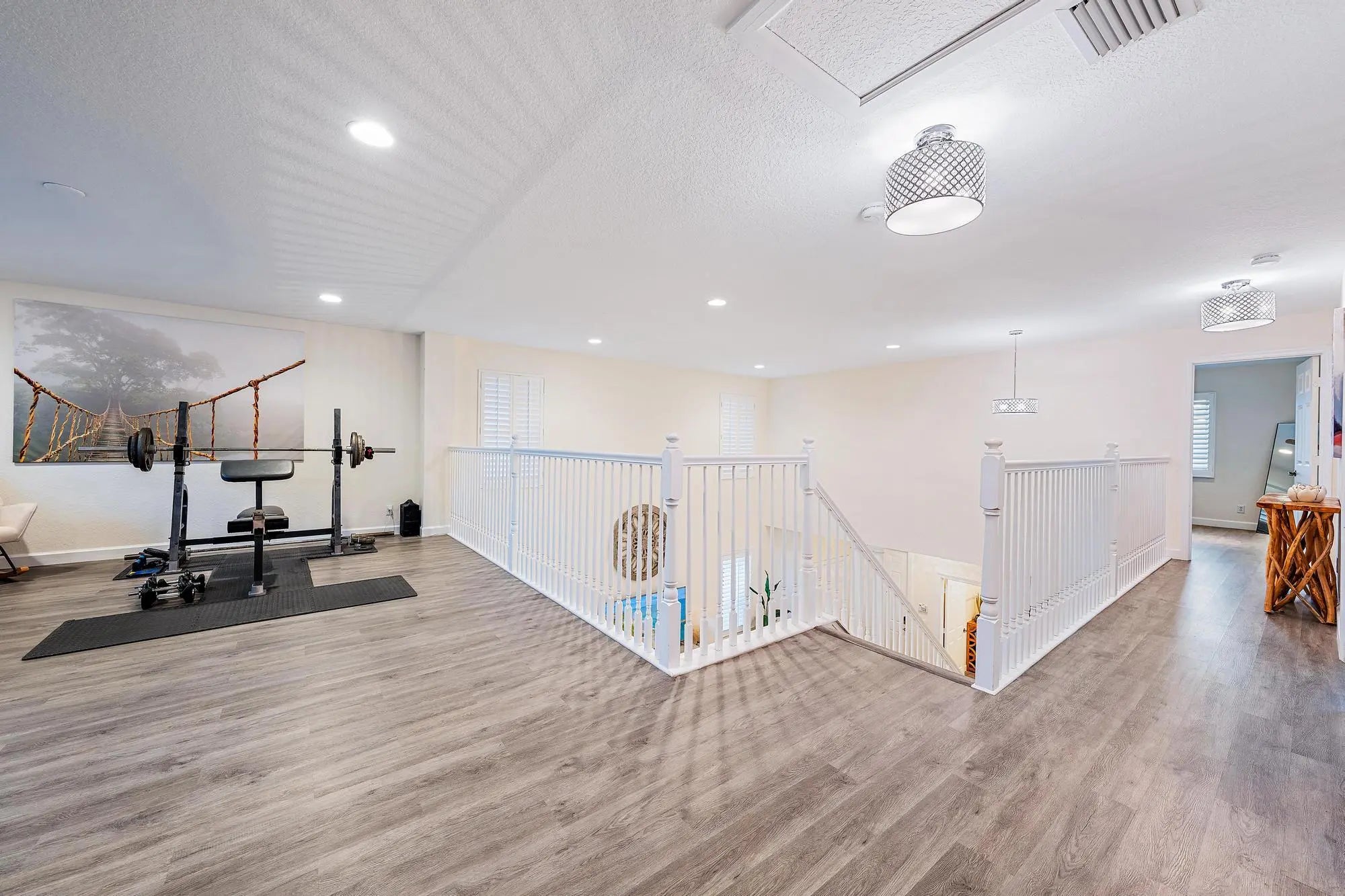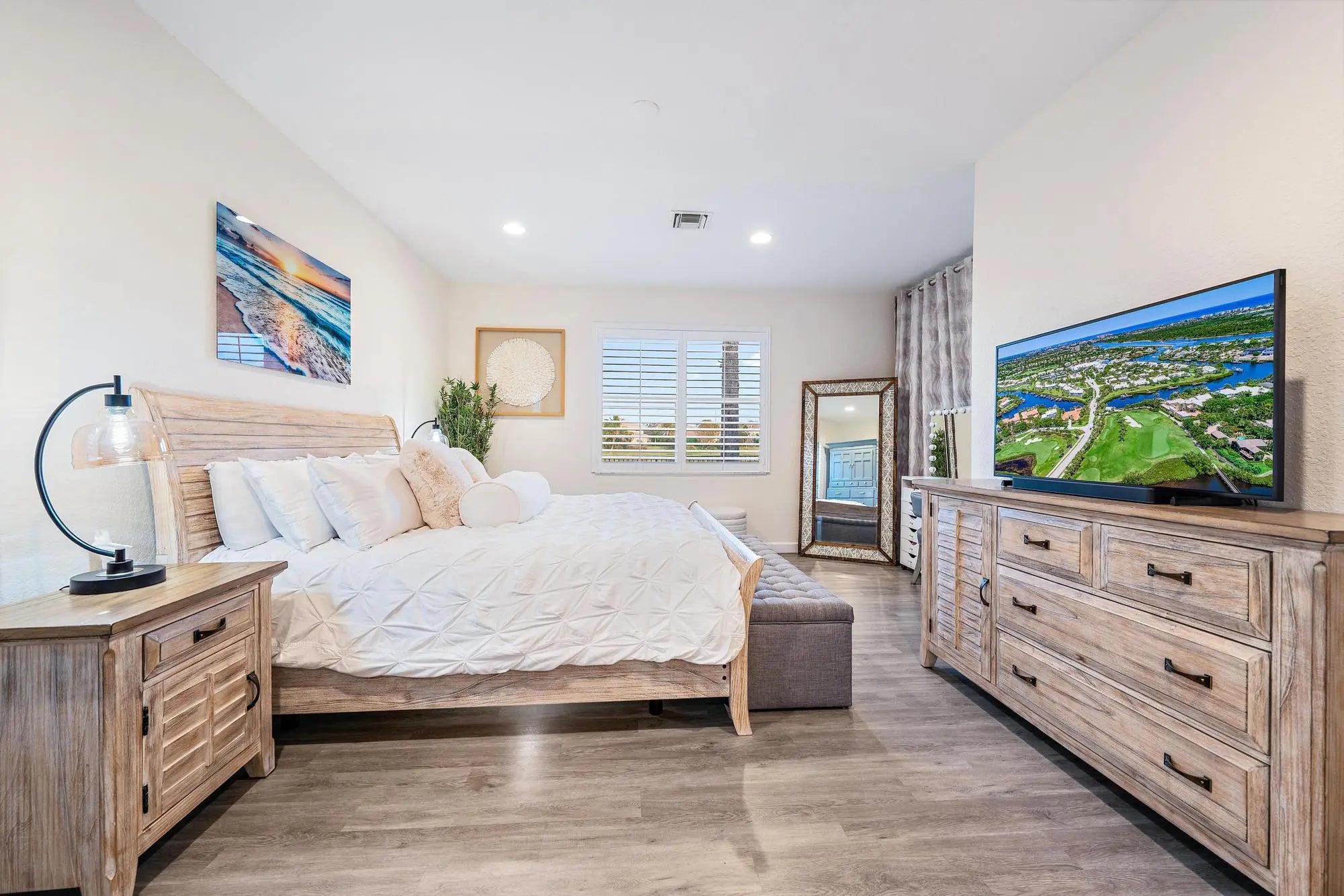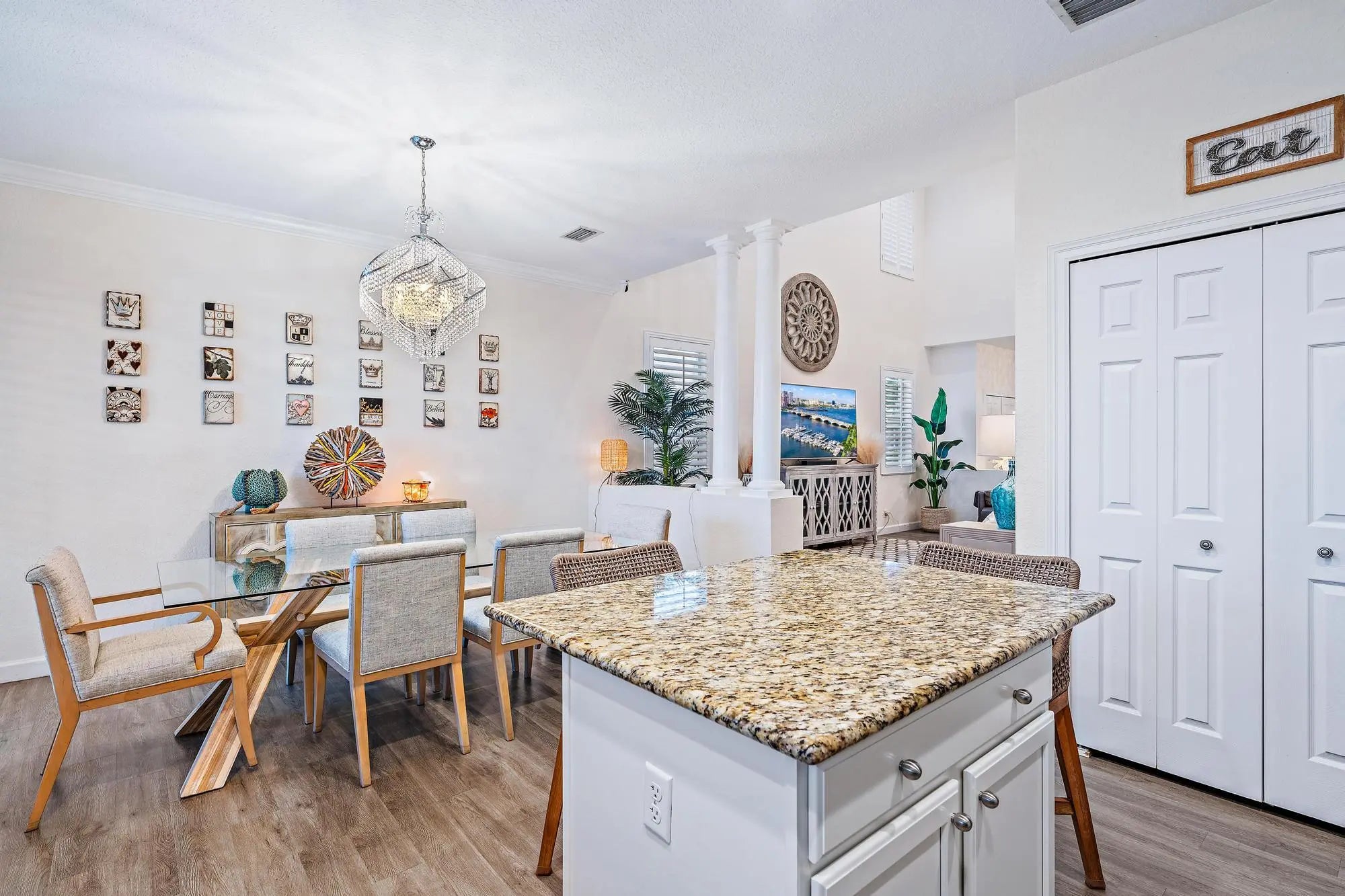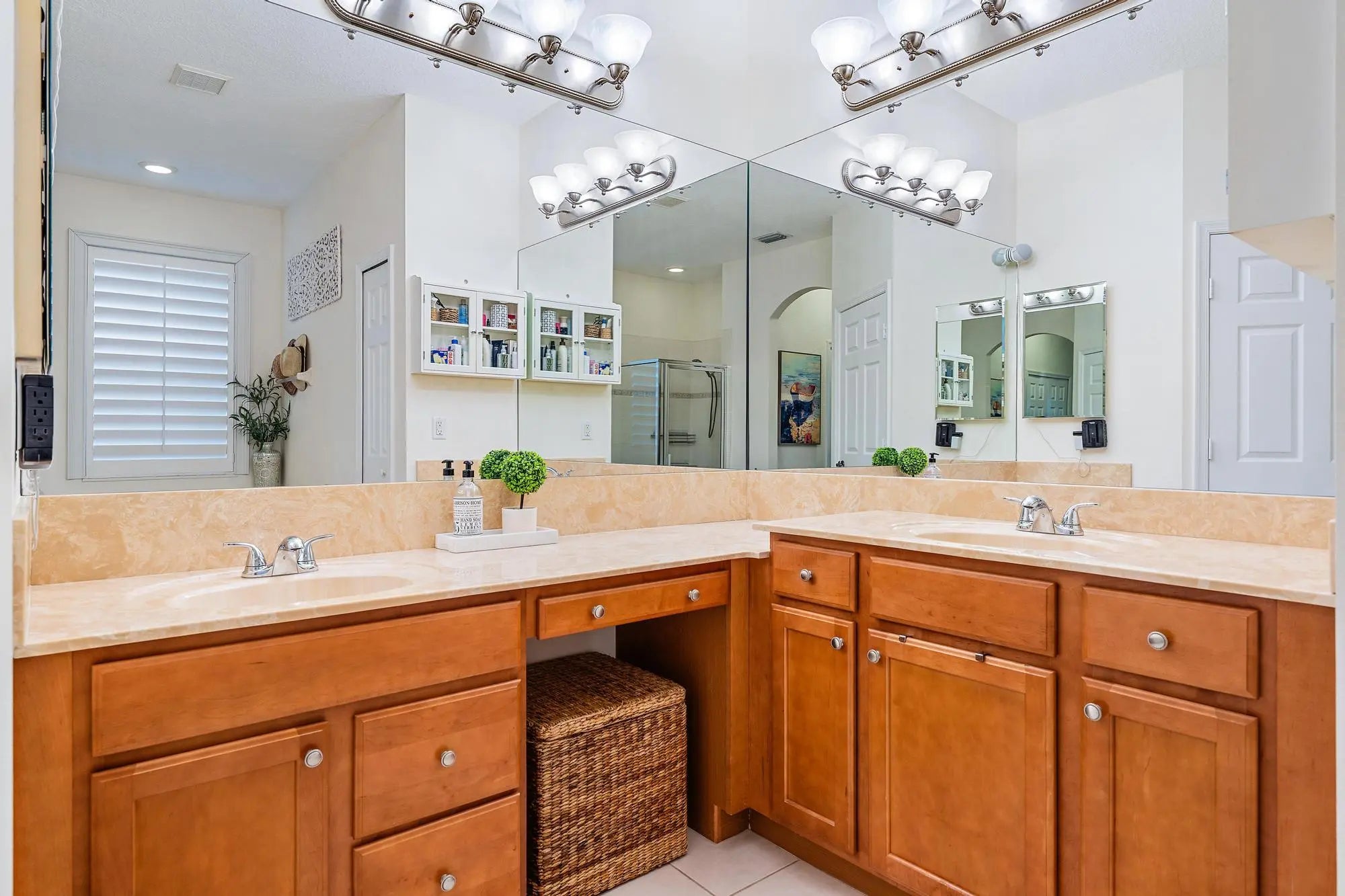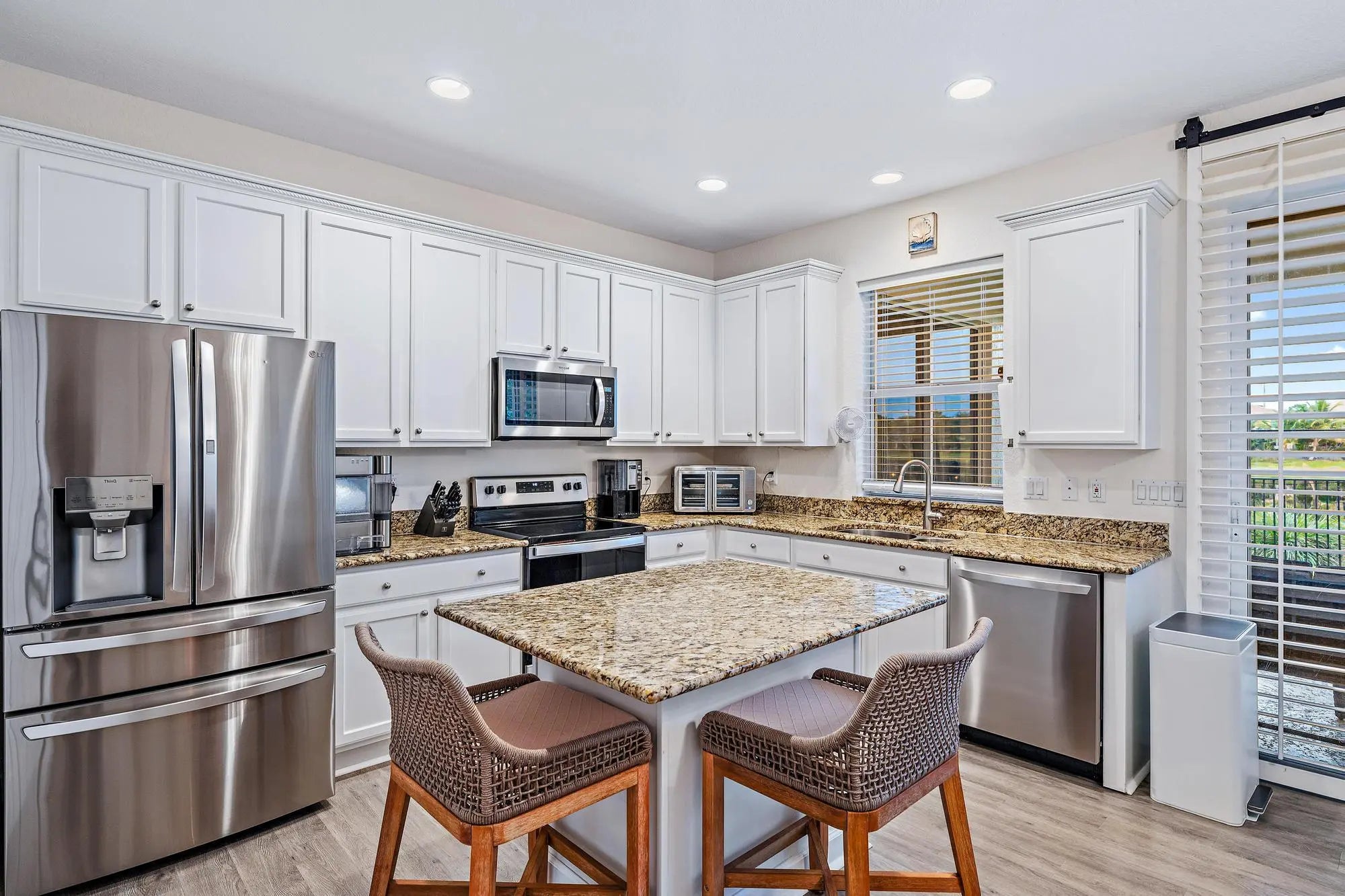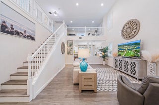 Spectacular four-bedroom, three-and-a-half-bath lakefront home in The Oaks of Hobe Sound featuring the highly desirable Catalina model with soaring ceilings, abundant natural light, and an open-concept design. From the moment you enter, the home delivers a strong first impression with its pristine condition and spacious layout. Luxury vinyl flooring flows through the first floor. The family room connects seamlessly to the kitchen, which includes 42-inch wood cabinetry, granite countertops, double ovens, a large cook's island, and newer appliances (2023), making it ideal for both daily living and entertaining. Pocket sliding glass doors lead to a covered lanai with tranquil lake views, creating a seamless indoor-outdoor lifestyle. The oversized first-floor primary suite features walk-in closets, dual vanities, a Roman tub, a separate shower, and room-darkening shades for added comfort. Sliders from the primary lead out to your lanai and fenced backyard. Practical features include a first-floor laundry room with sink, abundant closets, and an under-stair pantry with floating shelves for additional storage. Upstairs, you'll find a spacious loft/media room, two bedrooms with a shared bath, and a second private suite. Major upgrades provide peace of mind and modern convenience, including a newer HVAC system (2023), gutters (2023), stainless kitchen appliances (2023), water heater (2021) garage door opener (2023), and new toilets (2024). The exterior was freshly painted in 2025. Additional enhancements include plantation shutters on all windows, smart switches and outlets throughout, epoxy-coated garage floors, and extensive overhead storage racks. The fully fenced backyard provides space for a pool. The Oaks of Hobe Sound is a sought-after gated community known for its low HOA fees. Residents enjoy included services such as basic cable, Wi-Fi, and full lawn maintenance, along with access to a resort-style pool and spa, playground, and secure gated entrances. Ideally positioned in the center of Hobe Sound, the neighborhood is just minutes from the beaches of Jupiter Island and Jimmy Graham Park, which offers convenient boat and kayak launches. Outdoor enthusiasts will appreciate nearby Gomez Preserve with its popular biking and hiking trails, plus quick access to downtown Hobe Sound's boutique shopping and dining scene. The newly constructed Hobe Sound tennis center offers pickleball and tennis, less than a mile from the Oaks.