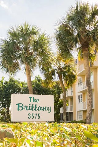 The Brittany is an immaculate community steps from the ocean and wide walking path. Large two bedroom two bath unit with lots of closet space Tiled throughout and uniformly painted. Includes water, basic cable and community pool is heated. Intercoastal and pool view from balcony. Very private.
