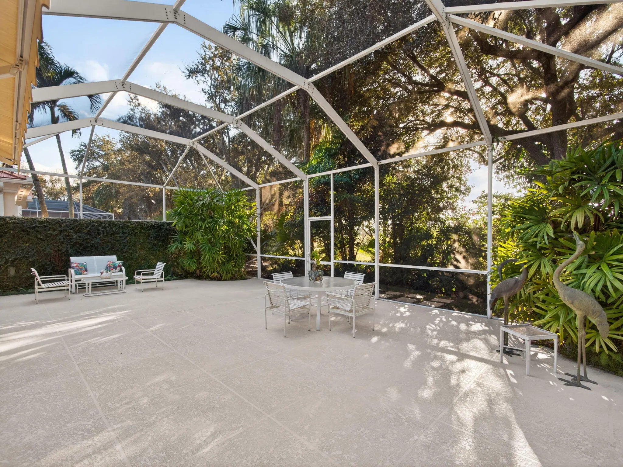 Set on a quiet cul-de-sac overlooking an 18-hole Florida style golf course, this beautifully maintained DiVosta Oakmont model offers timeless design and serene views. Soaring ceilings and an open, airy floor plan are filled with abundant natural light, creating an inviting atmosphere throughout the home. The spacious kitchen features granite countertops, stainless steel appliances, and an easy flow to the main living areas, perfect for everyday living and entertaining. A dedicated den/office provides flexible space for work or relaxation. The expansive primary suite is a private retreat with generous walk-in closets and his-and-hers bathrooms. Two additional guest bedrooms are comfortably sized and thoughtfully positioned. A full laundry room adds everyday convenience. Step outside to the extended screened lanai, where tranquil, private golf views create the perfect backdrop for morning coffee or evening unwinding. Located in The Florida Club, residents enjoy a community pool, tennis and pickleball courts, fitness room, and a pay-as-you-play golf course complete with clubhouse, pro shop, and restaurant. Conveniently close to dining, shopping, and major highways for easy commuting, this home blends comfort, lifestyle, and location beautifully.