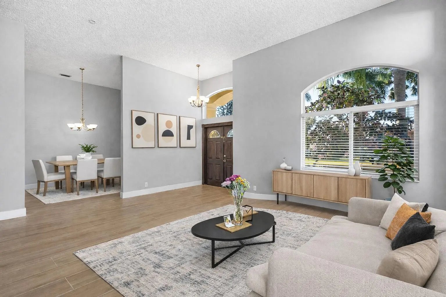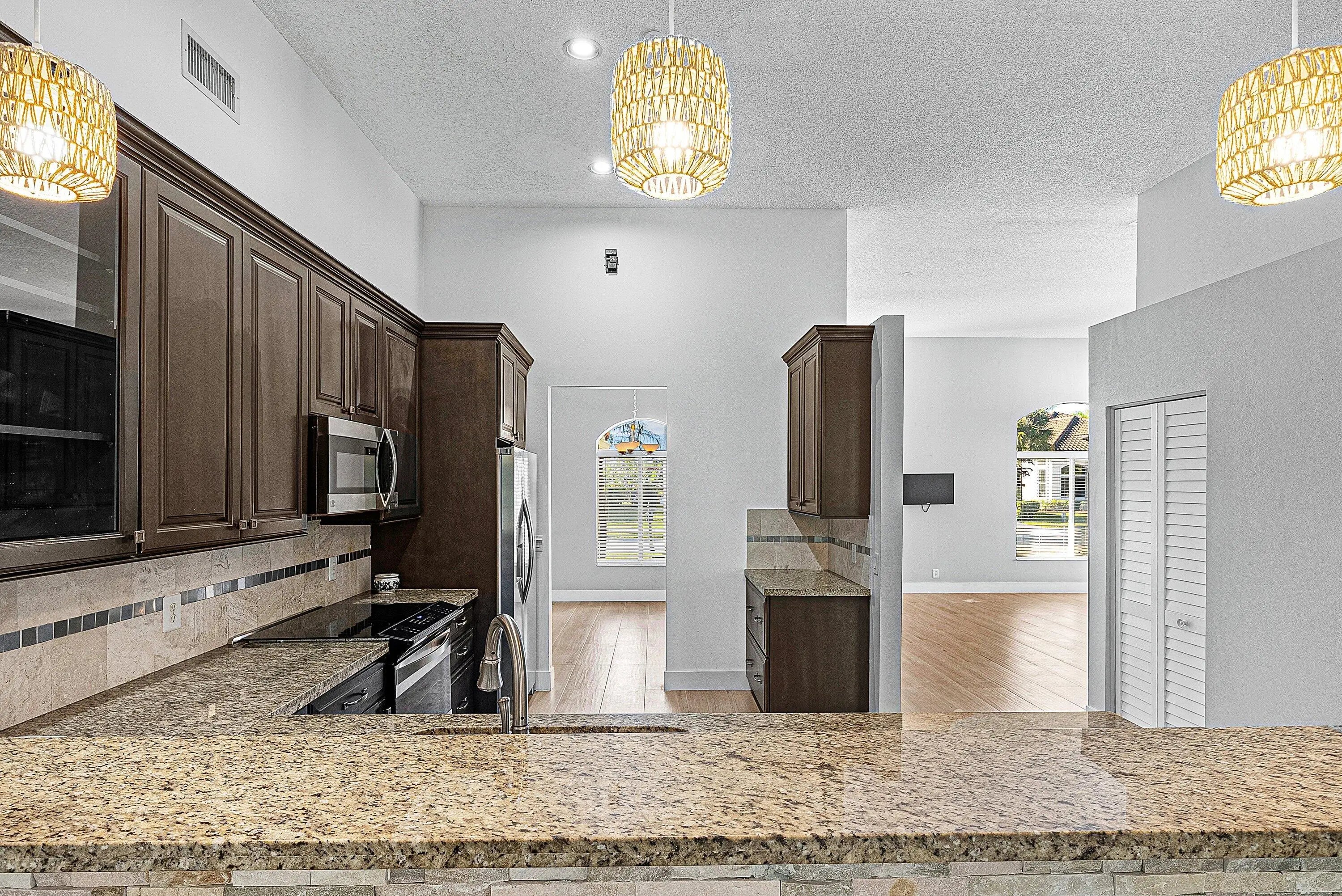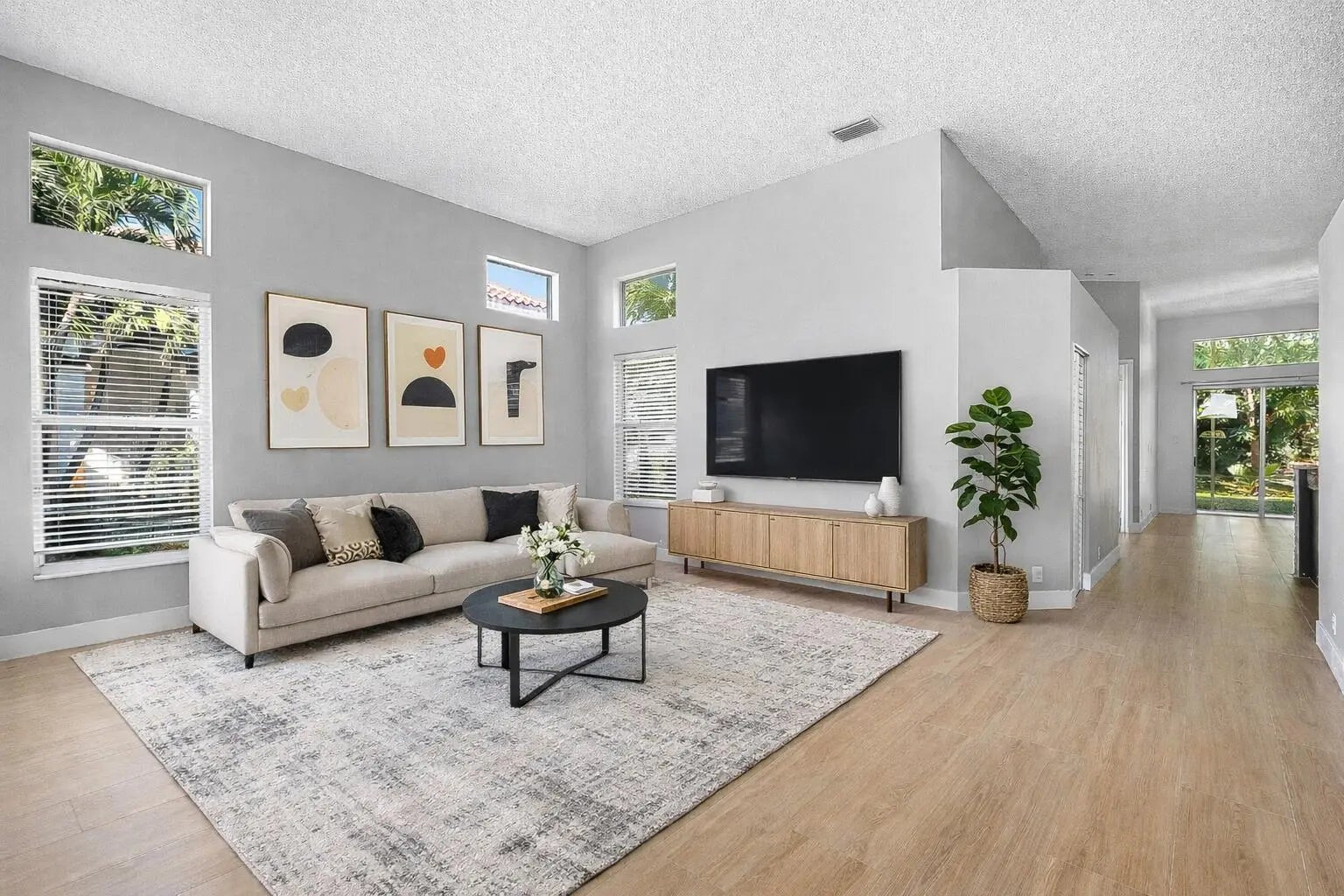Beautiful single-story residence located in one of West Boca's most desirable gated communities. This 4-bedroom home features high-volume ceilings and a spacious split-bedroom floor plan designed for comfort and functionality. The updated kitchen showcases modern cabinetry, granite countertops, stainless-steel appliances, and opens seamlessly to the family room, ideal for everyday living and entertaining. Wood and tile flooring extend throughout the home, while the roof was replaced in 2021. Outdoor living is enhanced by a screened patio with covered lanai space. Residents enjoy a newly furnished, modern clubhouse and an impressive selection of resort-style amenities, including a state-of-the-art fitness center with lockers, showers, and sauna; two lighted tennis courts; basketball court; billiards and game room; private movie theater; playground and tot lot; large swimming pool and jacuzzi; meeting room; and a gala room available for private events. The community offers 24-hour gated security with rover patrol. - Some photos virtually staged.