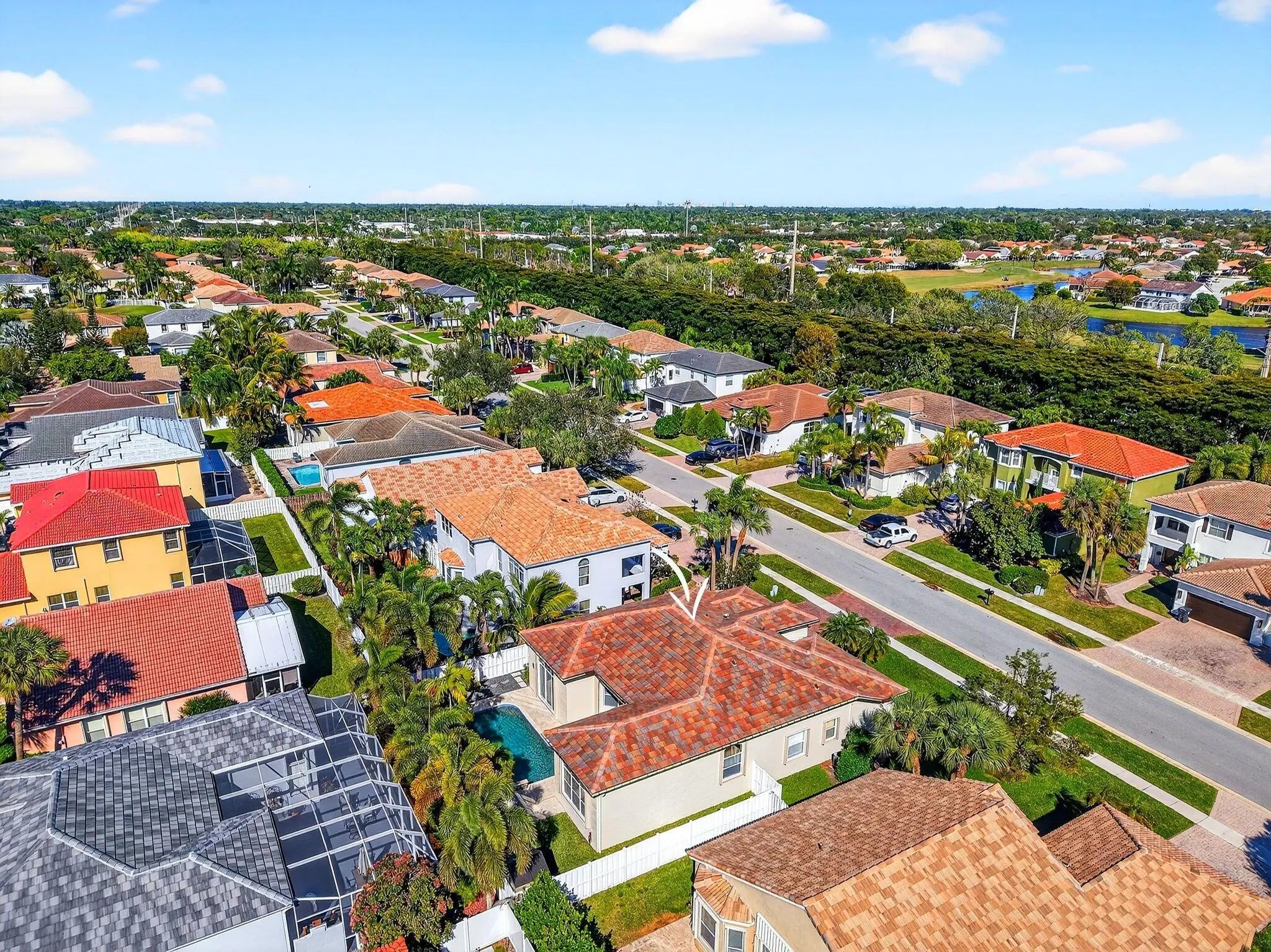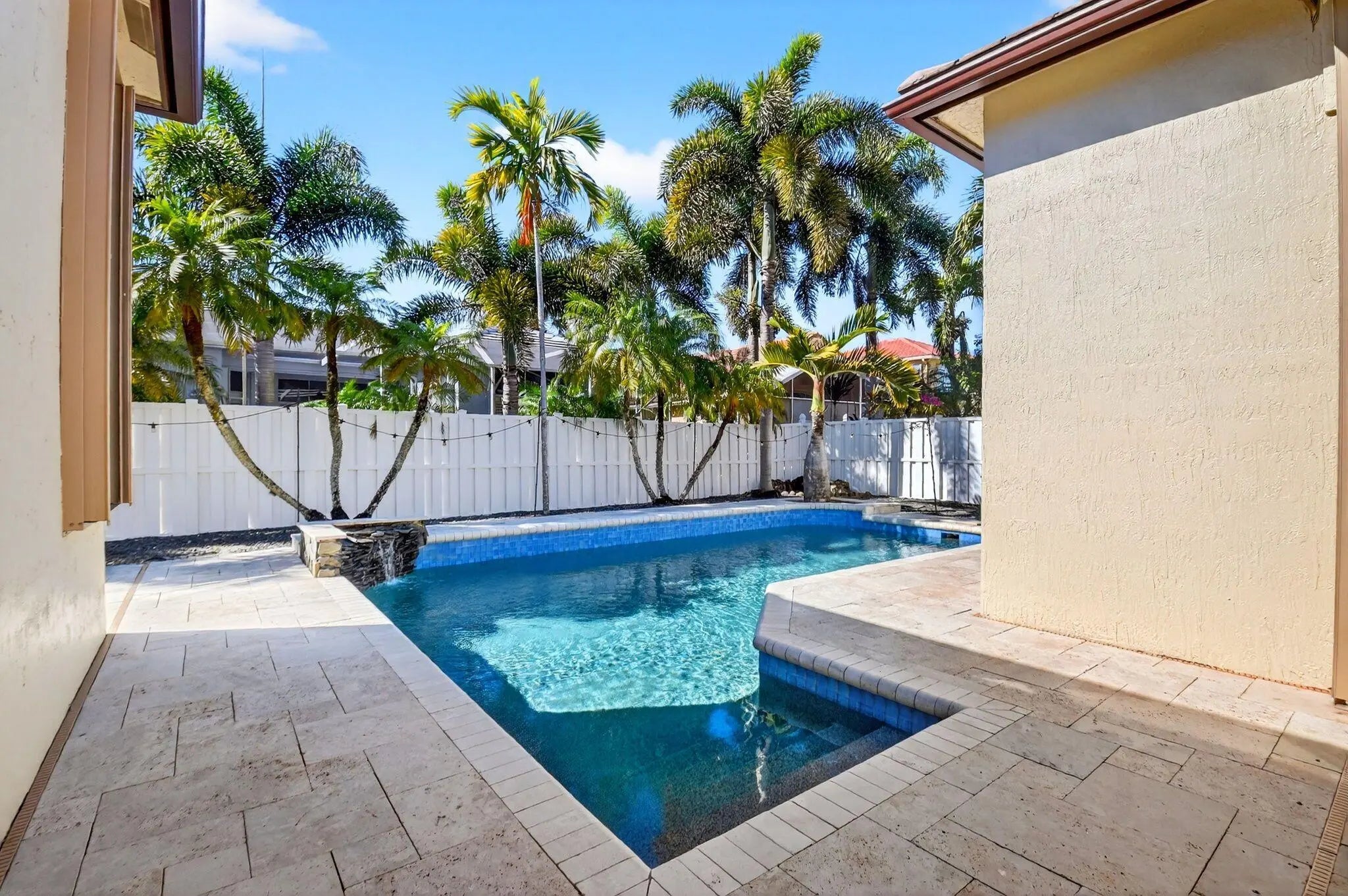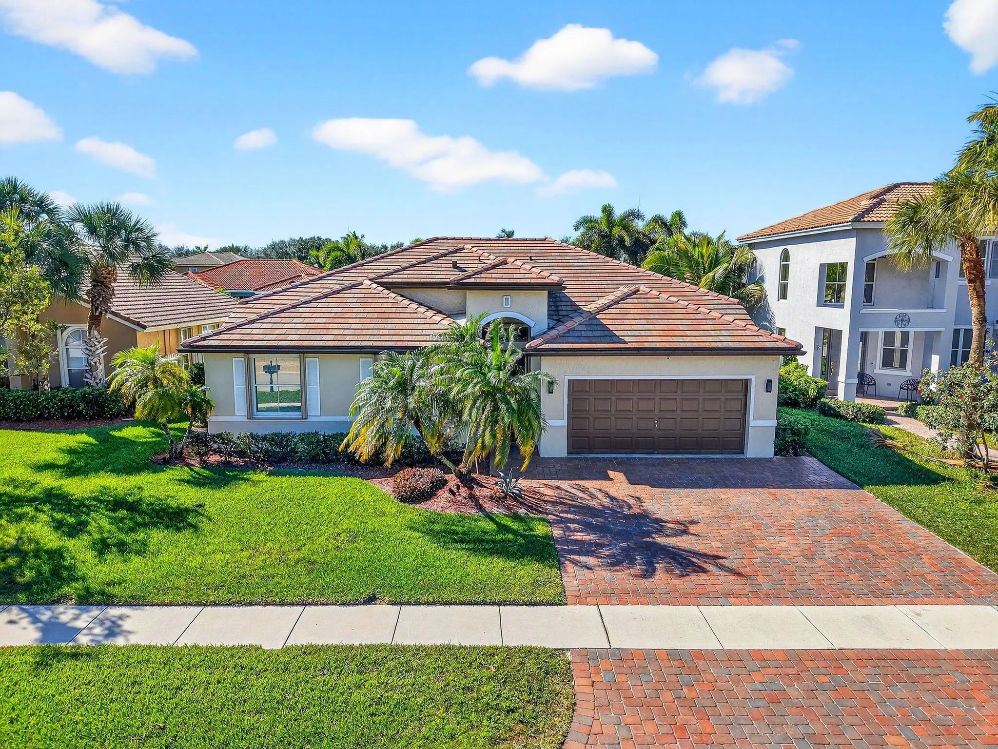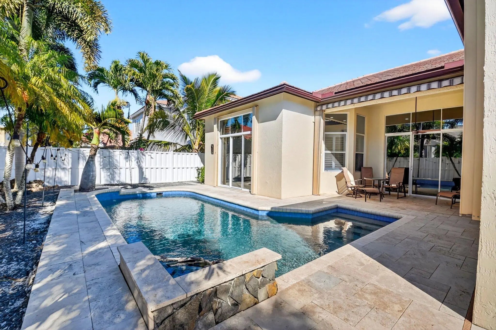 From the moment you pull up to this home, you'll probably notice the expanded three-car paver driveway. Perhaps you'll even notice the new, pristine 2023 flat tile roof. But I guarantee that you will notice, and fall in love with, the kitchen that dreams are made of. The heart of this home is a chef's masterpiece: a magnificent, expanded kitchen featuring a massive quartz island, stainless appliances including a beverage refrigerator, tons of cabinetry including stacked upper cabinets with glass-front displays, two pantries, pullout drawers, special storage for spices and knives, and a pot-filler over the stove. The spacious floor plan offers four bedrooms plus a versatile bonus den/office, accented by luxury plank flooring, crown molding, plantation shutters and beautifully updated bathrooms. Step outside to your private backyard sanctuary, fully fenced and featuring a sparkling pool with travertine deck, a waterfall feature, electric awning, outdoor shower, and a handy storage shed. Living here means more than just a beautiful home; it's a lifestyle. Located in an A-rated school zone, this manned-gated community offers 24/7 security with a PBSO officer dedicated to our community, and an expansive clubhouse featuring on-site management, tennis, pickleball, weight room, cardio room, banquet room with kitchen, card room, basketball, volleyball, ball field, and tot lot. Schedule your private showing today!