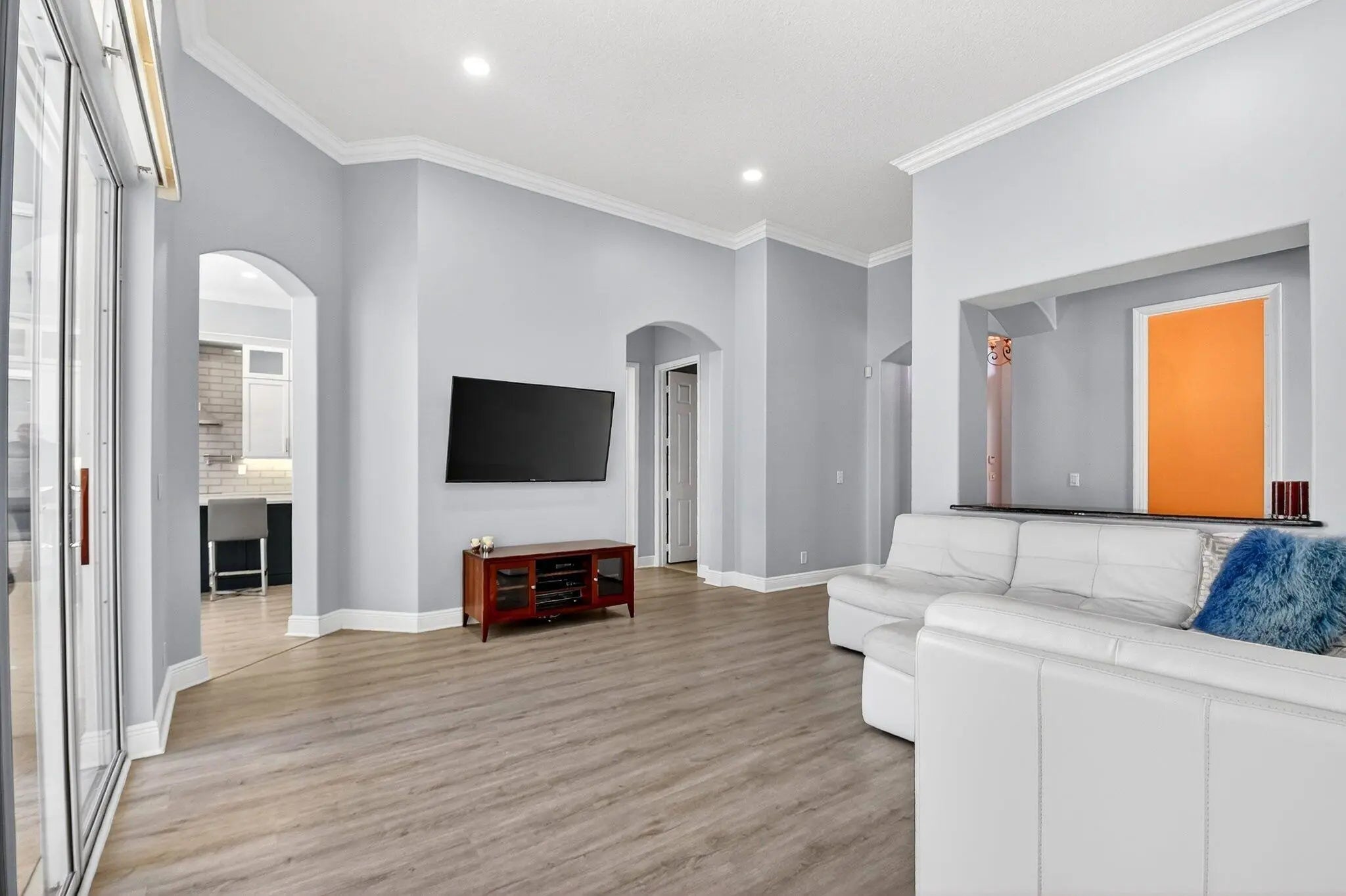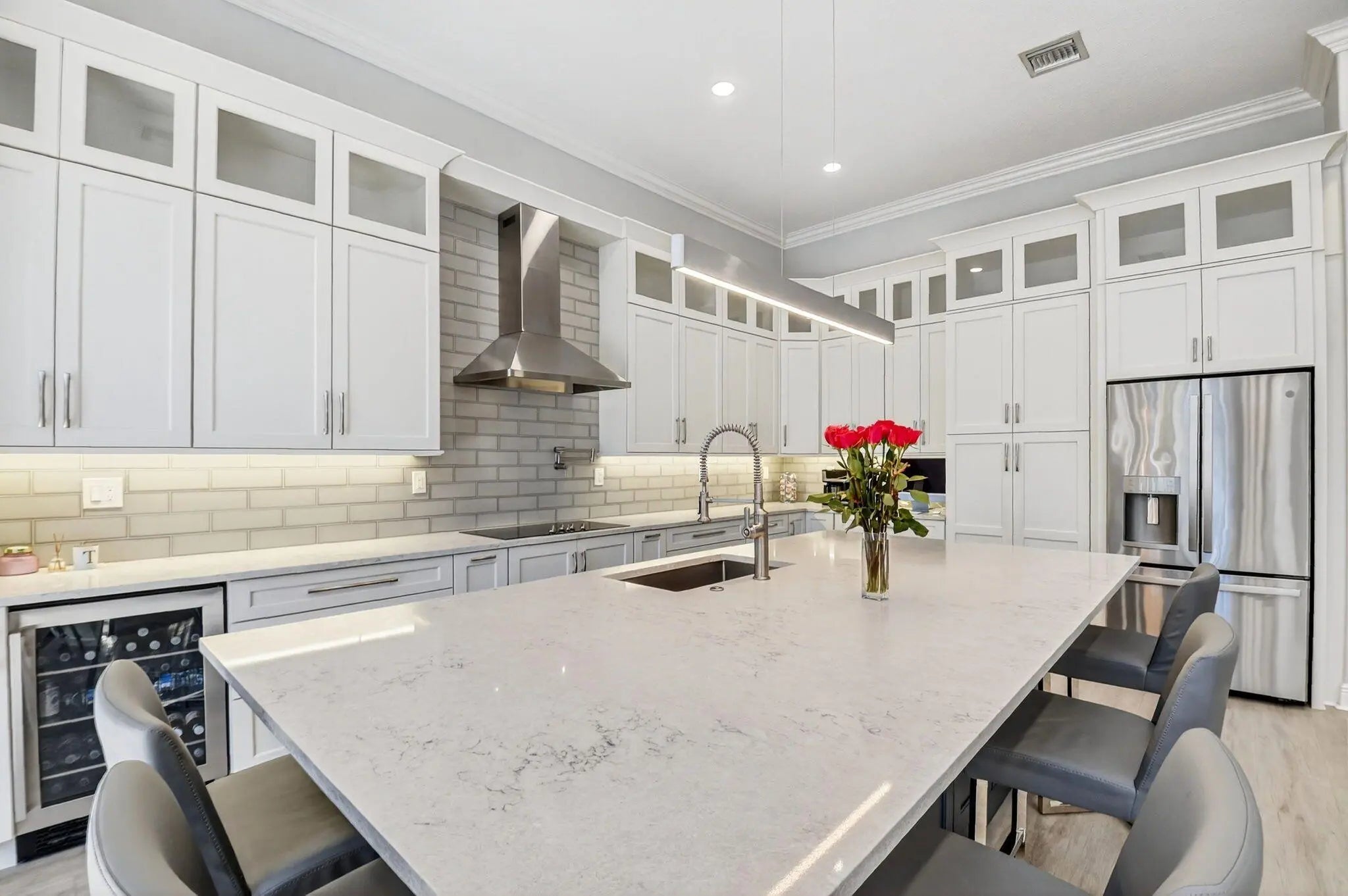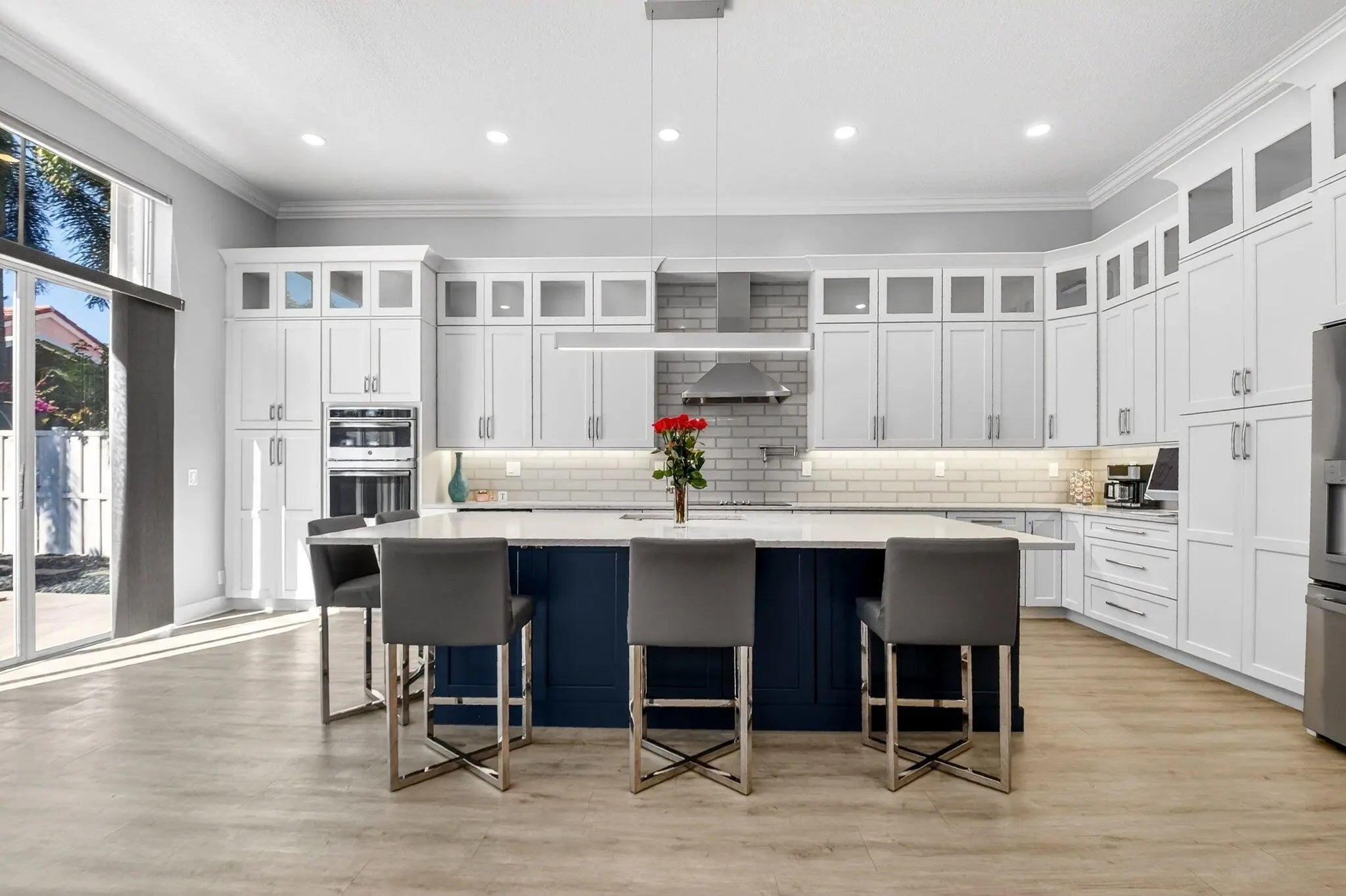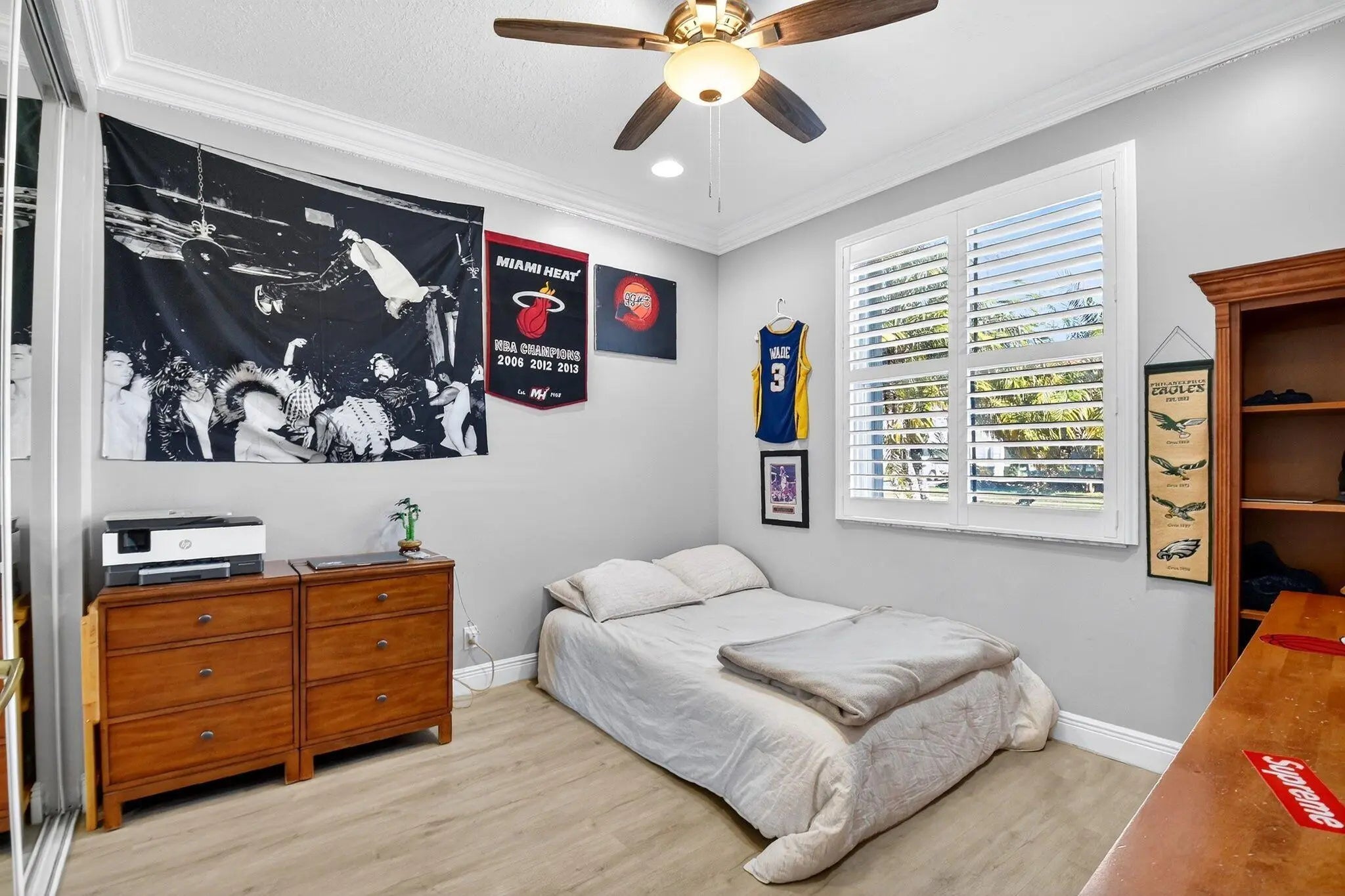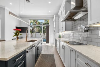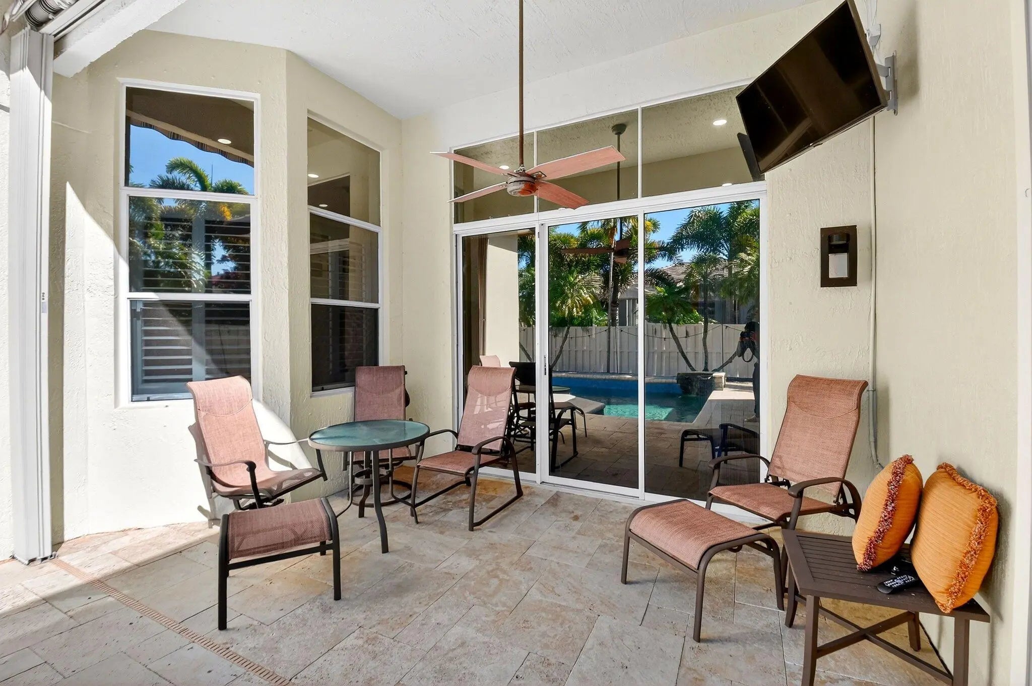From the moment you pull up to this home, you'll probably notice the expanded three-car paver driveway. Perhaps you'll even notice the new, pristine 2023 flat tile roof. But I guarantee that you will notice, and fall in love with, the kitchen that dreams are made of. The heart of this home is a chef's masterpiece: a magnificent, expanded kitchen featuring a massive quartz island, stainless appliances including a beverage refrigerator, tons of cabinetry including stacked upper cabinets with glass-front displays, two pantries, pullout drawers, special storage for spices and knives, and a pot-filler over the stove. The spacious floor plan offers four bedrooms plus a versatile bonus den/office, accented by luxury plank flooring, crown molding, plantation shutters and beautifully updated bathrooms. Step outside to your private backyard sanctuary, fully fenced and featuring a sparkling pool with travertine deck, a waterfall feature, electric awning, outdoor shower, and a handy storage shed. Living here means more than just a beautiful home; it's a lifestyle. Located in an A-rated school zone, this manned-gated community offers 24/7 security with a PBSO officer dedicated to our community, and an expansive clubhouse featuring on-site management, tennis, pickleball, weight room, cardio room, banquet room with kitchen, card room, basketball, volleyball, ball field, and tot lot. Schedule your private showing today!