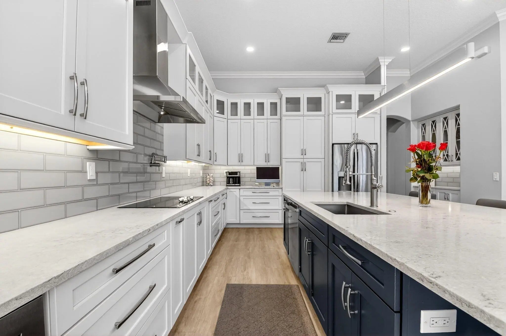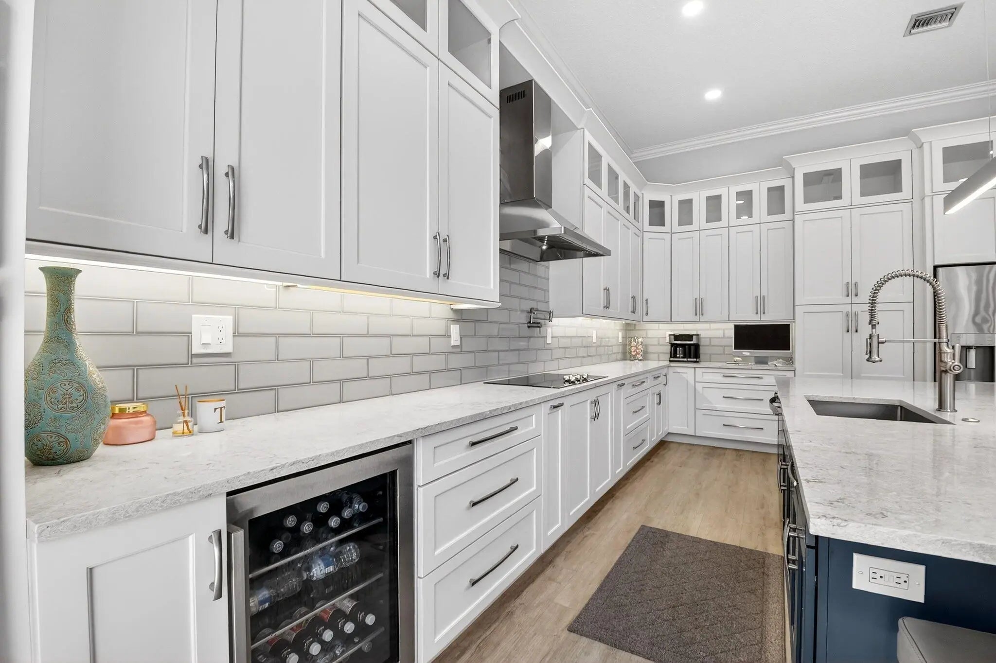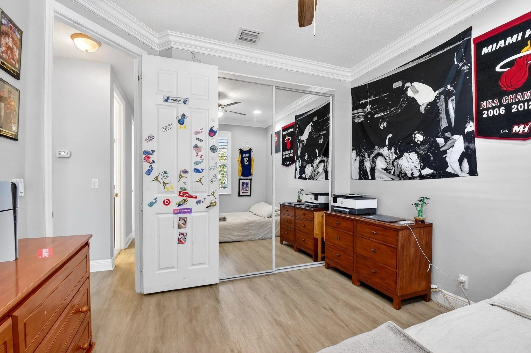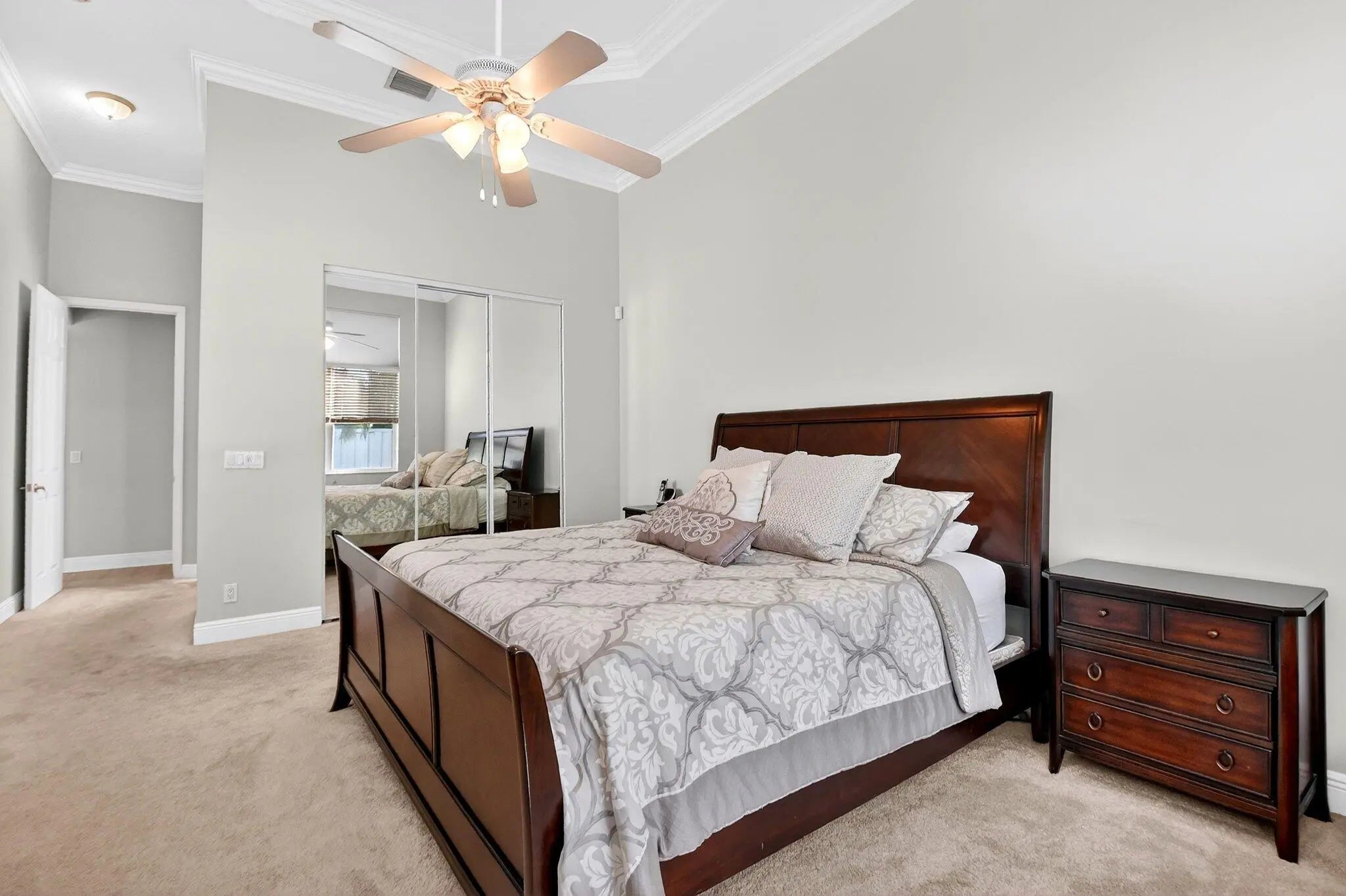 From the moment you pull up to this home, you'll probably notice the expanded three-car paver driveway. Perhaps you'll even notice the new, pristine 2023 flat tile roof. But I guarantee that you will notice, and fall in love with, the kitchen that dreams are made of. The heart of this home is a chef's masterpiece: a magnificent, expanded kitchen featuring a massive quartz island, stainless appliances including a beverage refrigerator, tons of cabinetry including stacked upper cabinets with glass-front displays, two pantries, pullout drawers, special storage for spices and knives, and a pot-filler over the stove. The spacious floor plan offers four bedrooms plus a versatile bonus den/office, accented by luxury plank flooring, crown molding, plantation shutters and beautifully updated bathrooms. Step outside to your private backyard sanctuary, fully fenced and featuring a sparkling pool with travertine deck, a waterfall feature, electric awning, outdoor shower, and a handy storage shed. Living here means more than just a beautiful home; it's a lifestyle. Located in an A-rated school zone, this manned-gated community offers 24/7 security with a PBSO officer dedicated to our community, and an expansive clubhouse featuring on-site management, tennis, pickleball, weight room, cardio room, banquet room with kitchen, card room, basketball, volleyball, ball field, and tot lot. Schedule your private showing today!