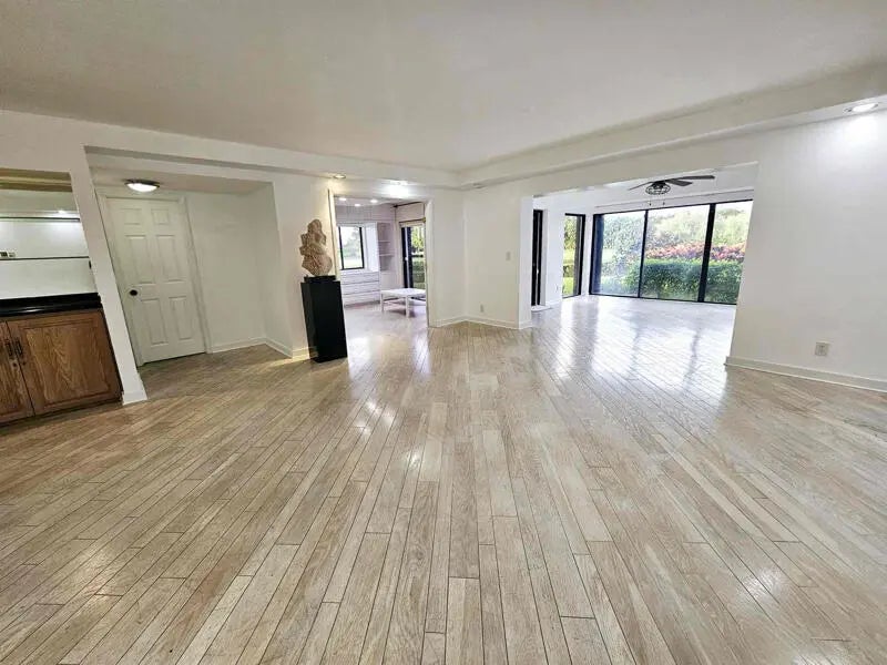 SPECTACULAR 2/2 GARDEN UNIT THAT HAS THE FEEL OF A SPACIOUS VILLA. WITH TWO OUTDOOR PATIOS THIS 1ST FLOOR UNIT IS A MUST SEE. GO OUT YOUR BACK DOOR ON YOUR PATIO & ENJOY THE PRIVATE GARDEN, GOLF & WATER VIEWS. ENJOY THE UPDATED SITDOWN KITCHEN, LAUNDRY ROOM, NON-CARPETED FLOORS, LARGE BEDROOMS, ACCORDIAN SHUTTERS, THERMAL WINDOW TREATMENTS, MURPHY BED, STAND ALONE TUB, EXTENDED FLORIDA ROOM AND BEAUTIFUL BUILT INS. YOU ARE STEPS AWAY FROM THE SWIMMING POOL. THE FOUNTAINS IS A GATED PRIVATE COMMUNITY. ENJOY THE PEACE & AMBIENCE OF MANNED GUARD GATES, SECURITY PATROLS & LUSH TROPICAL GROUNDS. WIFI & DIGITAL CABLE ARE INCLUDED.