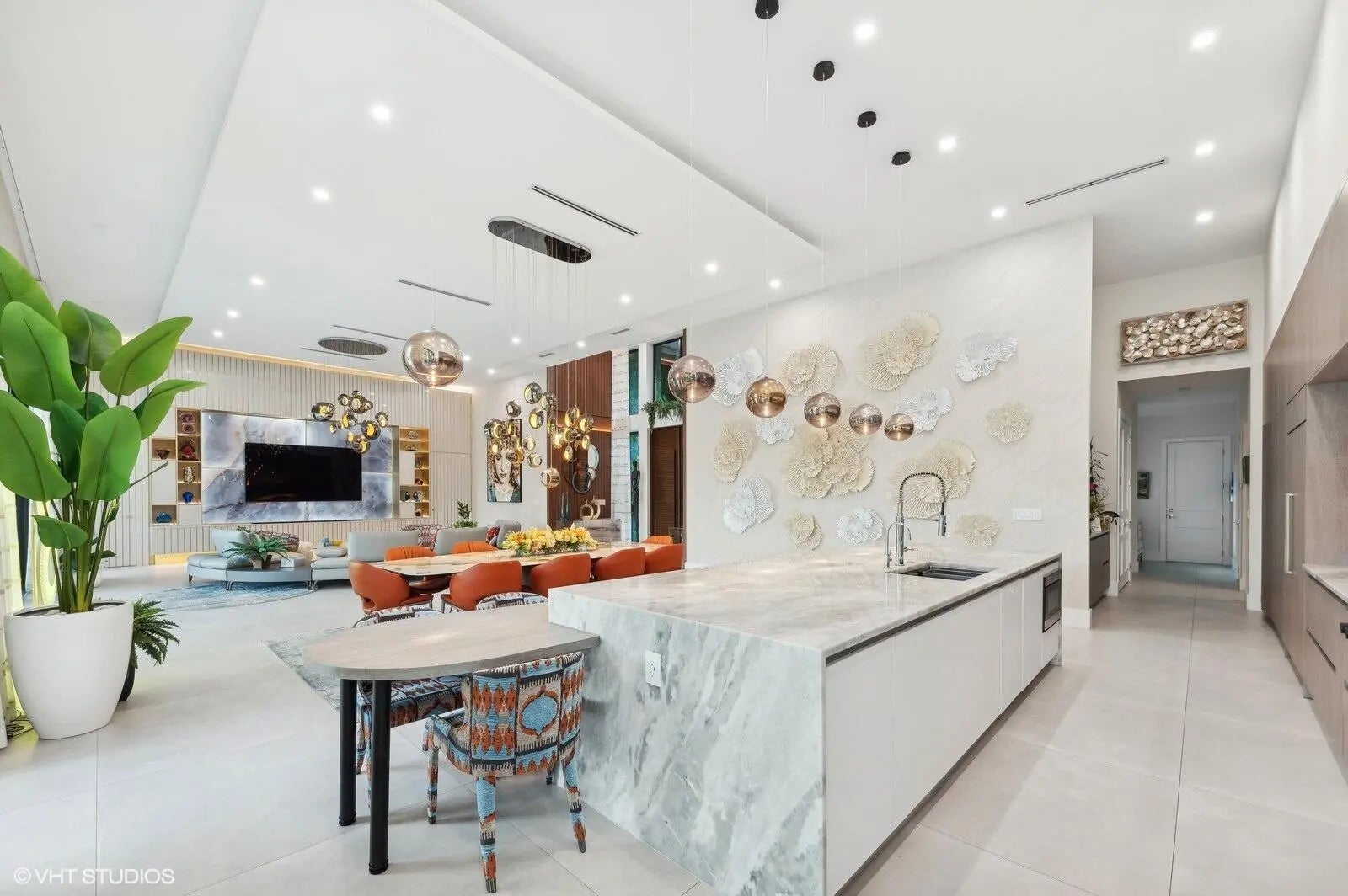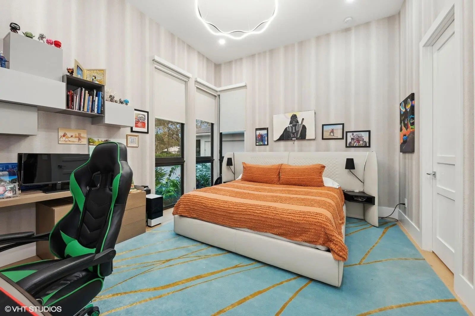 Exceptional modern one level house sitting on an over 1 acre private lot with beautifully designed landscaping. Your own private oasis just minutes from major shopping and dine out destinations. The house features a custom kitchen, spacious open living area, 6 ensuite bedrooms, office/den room, plenty of storage and a generous main bedroom situated in its own private wing of the house with its own double bathroom and custom walk-in closets. Set in a private impeccably maintained man gated community with 24-hour security on site.