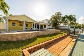 Set along a deep-water canal on a quiet cul-de-sac within one of North Palm Beach's most established, family-friendly streets, this waterfront residence reflects a calm, considered approach to coastal living one that values both refinement and function. With 80 feet of seawall, a decked-over dock, and two boat lifts rated at 16,000 and 12,000 pounds, the property offers seamless access to open water and a lifestyle shaped by time spent outdoors. Inside, light-filled interiors unfold through an open layout that maintains a constant visual connection to the water. The 2024 kitchen is intentionally curated, finished with quartzite countertops, a gas cooktop, wall oven, and new stainless-steel appliances, balancing everyday usability with elegance. The oversized primary suite is set apart as a private retreat, offering dual walk-in closets and a spa-style bath with a two-person Jacuzzi tub, double shower, and dual vanities. Two additional bedrooms with hardwood floors provide flexibility for guests or home office use. A generous family room, anchored by a gas fireplace and a built-in wet bar with beverage refrigerator and quartzite countertops, opens through a full three-panel slider to an oversized, vaulted-ceiling covered patio and expansive paver pool terrace. Outdoors, a custom 2014 pool equipped with an air chiller overlooks the deep-water canal, creating a seamless indoor-outdoor setting well suited for entertaining. Recent updates include a new roof (2024), gas water heater (2025), plantation shutters, crown molding, and solid-core doors, resulting in an enduring expression of modern coastal living.