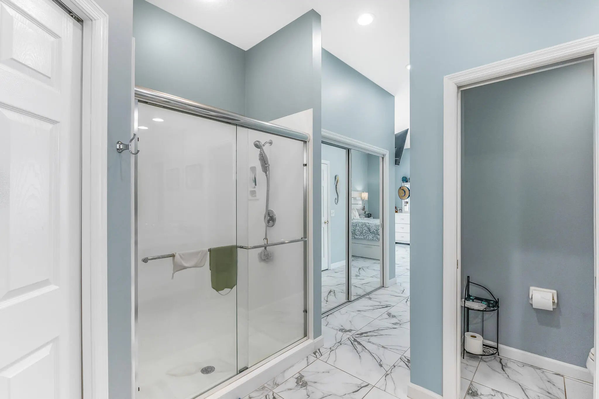 High Ceilings, Walk-In Closet(s), Bedroom Layout - Split, Pull Down Stairs