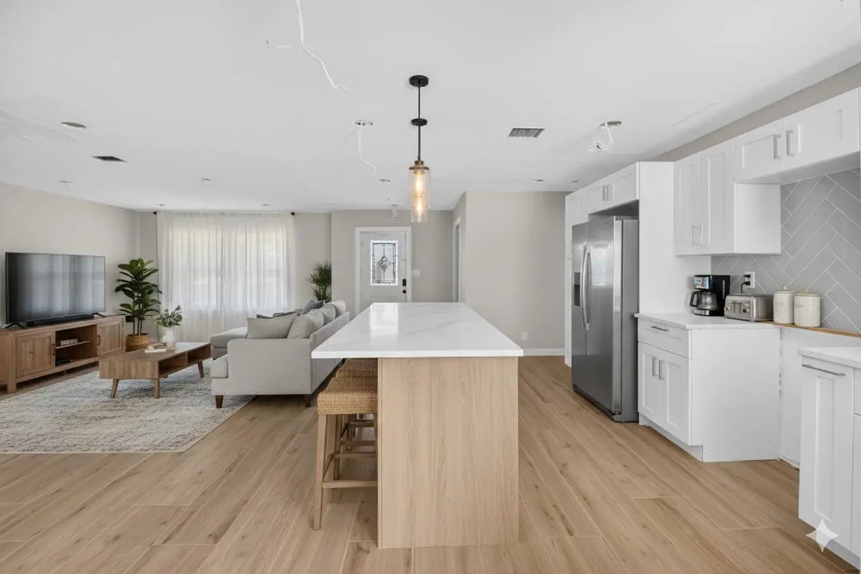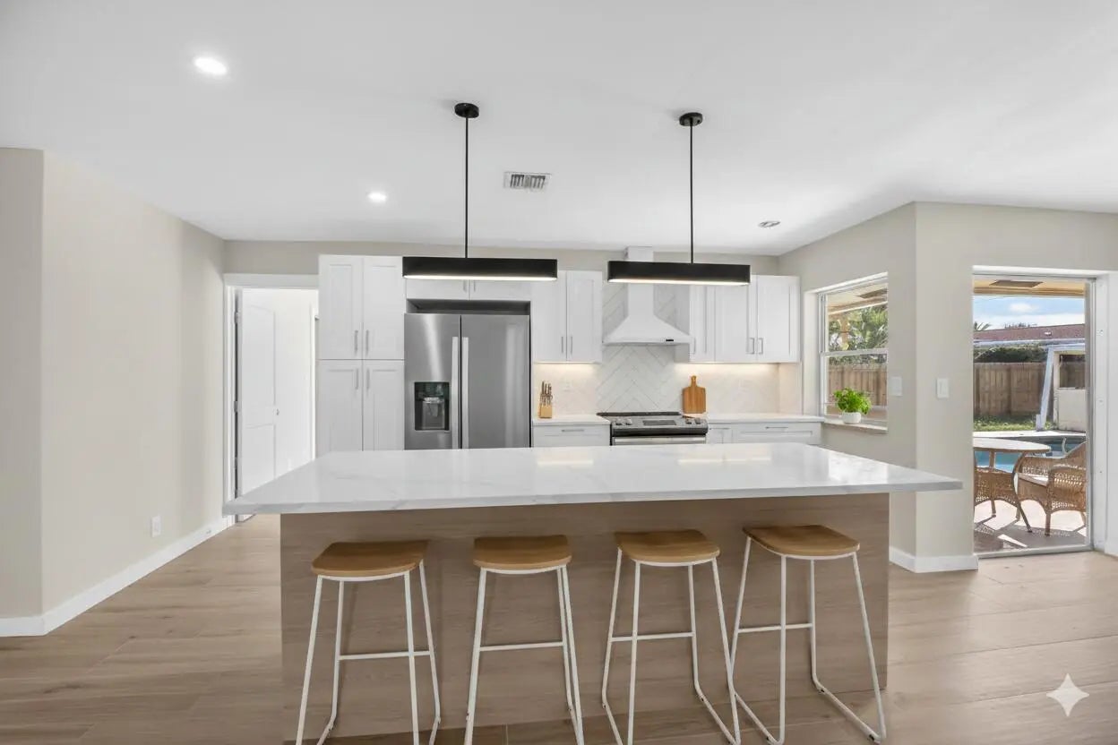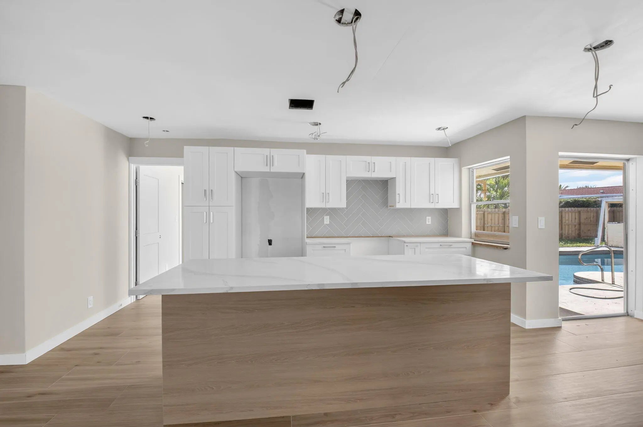 A Modern Masterpiece in the Making. Rarely does an opportunity arise to step into a renovation of this caliber so close to the finish line. This expansive four-bedroom, two-and-a-half-bath pool home has undergone a massive transformation, with the current owner investing in high-end upgrades that set a sophisticated tone throughout. The heart of the home is a brand-new chef's kitchen, boasting sleek granite countertops and a layout designed for modern living. Beneath your feet, beautiful wood-look ceramic tile spans every room, offering the timeless elegance of hardwood with the effortless durability of tile. While all three bathrooms have been extensively renovated, they await your final selections for hardware and trim to truly shine. The interior luxury is matched only by the impressive scale of the exterior. Situated on a significantly larger-than-typical lot, the property features a grand circular driveway that provides both convenience and a sense of estate-style curb appeal. The backyard is a true private sanctuary, anchored by a massive swimming pool that far exceeds the size of a standard residential pool, offering endless potential for outdoor entertaining. This home is a dream for the buyer who wants the "heavy lifting" already handled but desires the chance to add their own finishing touches. Because the renovation is almost complete but not yet finished, this property offers a unique path to instant equity. If you are looking for a high-quality canvas where the major vision has been realized and only the final details remain, this is the one you've been waiting for.