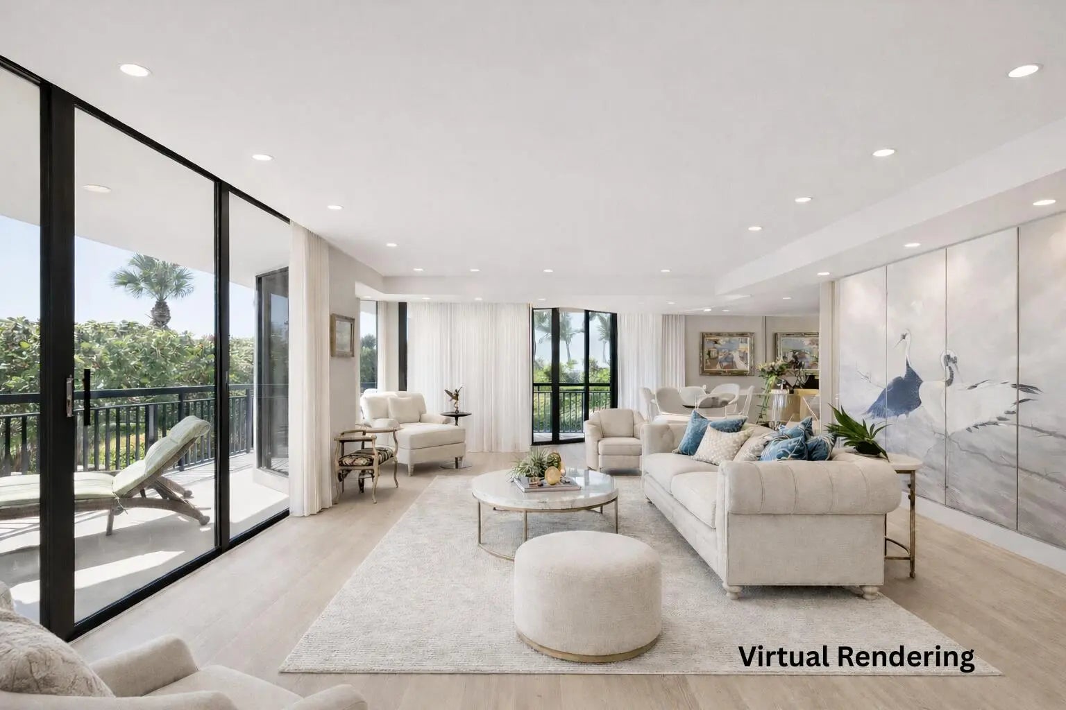 Prime opportunity at Carlton Place. This 3BR/3BA lanai residence offers 2,533 SF of well-proportioned space ready for a modern Palm Beach redesign. Maintained in clean, original condition, it's the ideal canvas to create a custom coastal retreat in one of the island's premier full-service oceanfront buildings. Generous living areas, eat-in kitchen, and a rare wraparound southwest-facing terrace capture beautiful natural light and sunset skies. Impact windows are paid in full, waiting on installation schedule. Man-gated with 24/7 security, doorman and concierge, redesigned pool and spa, tennis and pickleball, fitness center, and beach access. Exceptional opportunity to renovate and personalize in a prime Palm Beach location.