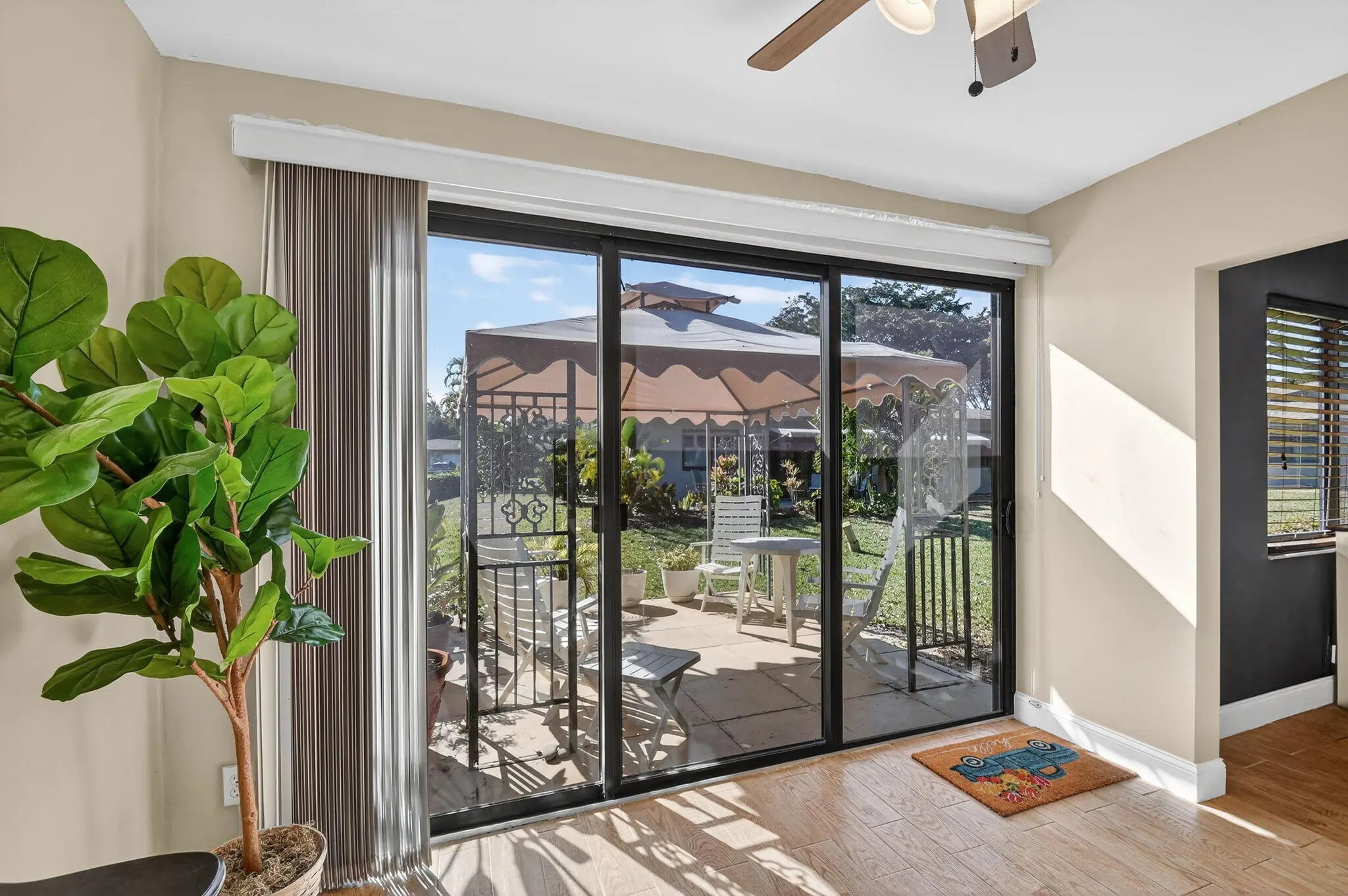 Charming 2-bedroom, 2-bath villa with split floor plan, air-conditioned Florida Room and 1-car garage. Main Features: Impact-resistant windows and sliding doors *Hurricane-rated front doors *2022 A/C *Bamboo wood and porcelain tile flooring *Kitchen with newer appliances, wood cabinetry, back splash and countertop *Master Suite with full bathroom and walk-in closet *Extended tiled patio with gazebo near a community pool. Villa is in Section 3 of Chanteclaire Villas, a 55+ community with 2 pools, tiki bars & clubhouse. Monthly fees include cable, water, sewer, trash, roof & exterior maintenance, insurance, reserves and common areas. 1 pet under 20 lbs. allowed. Convenient to shopping, dining, beach & entertainment. Don't miss the opportunity to make this your new home or seasonal escape!