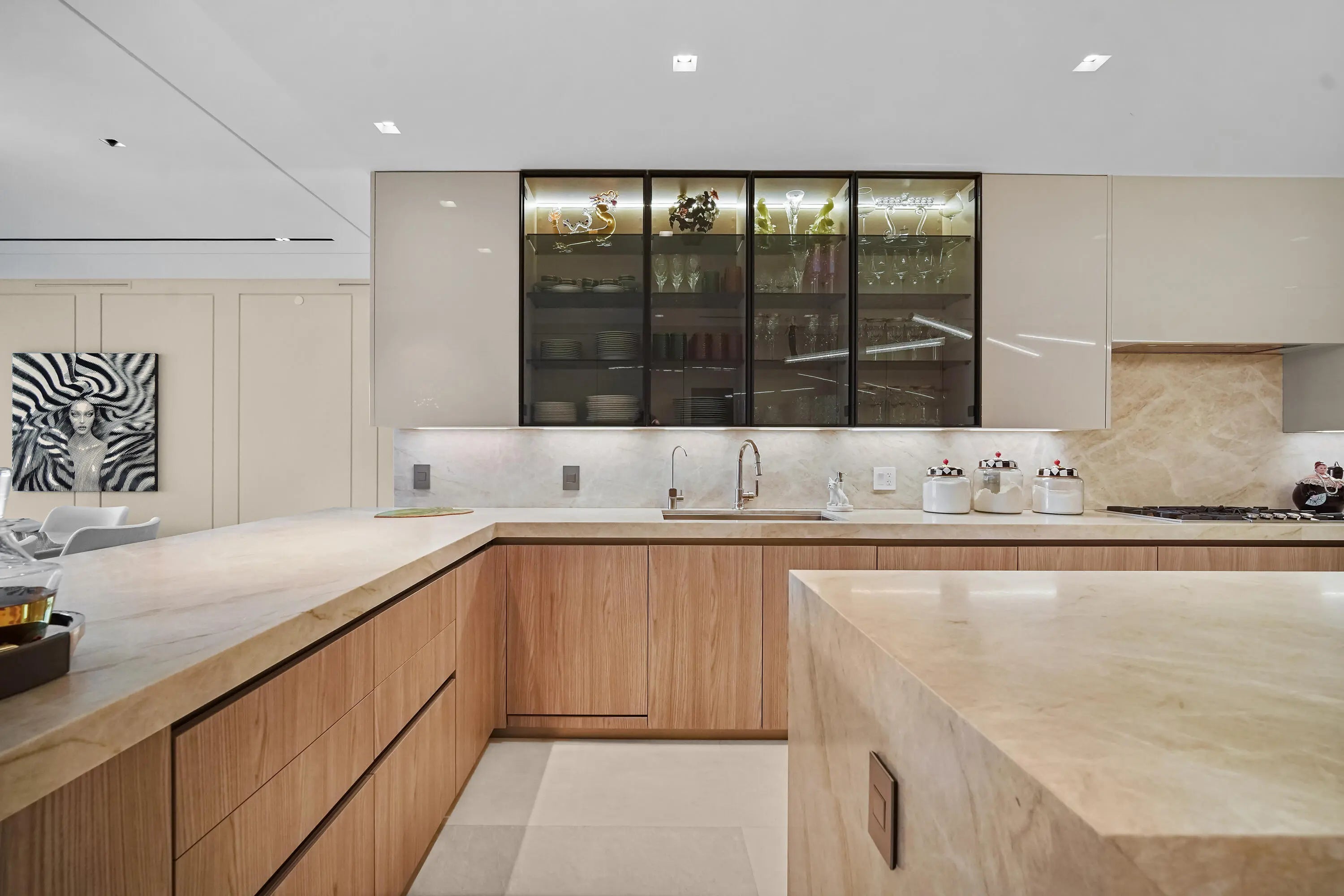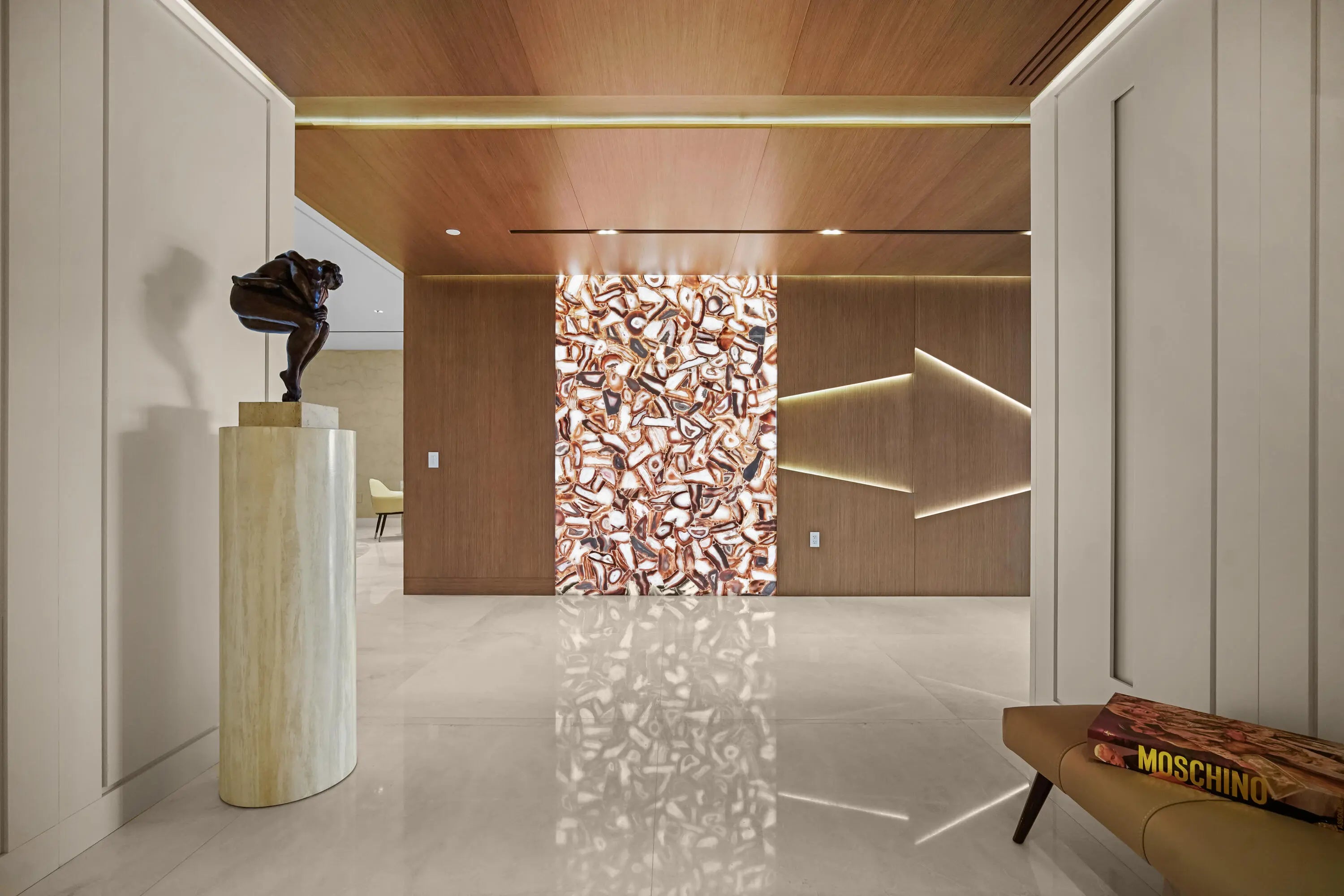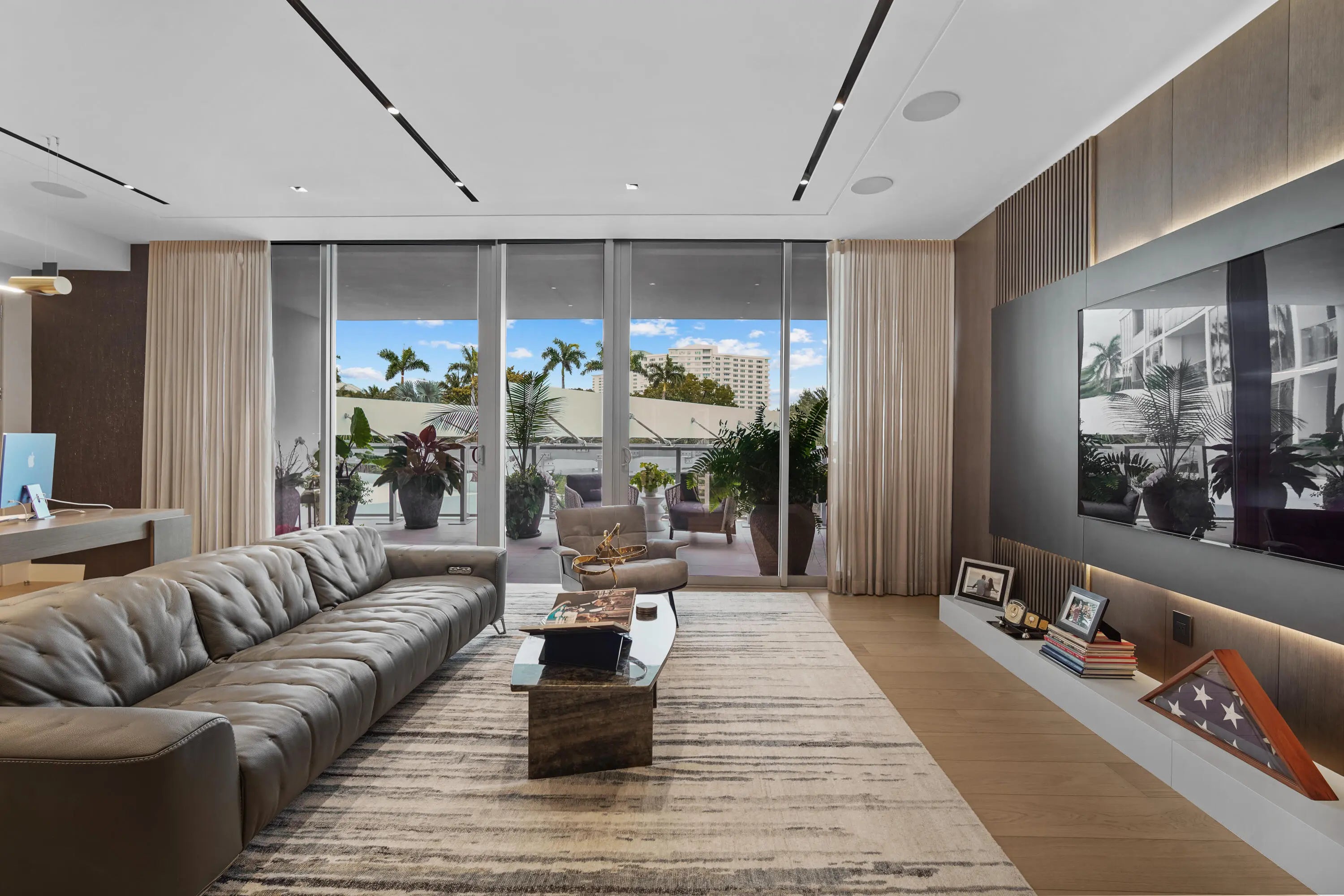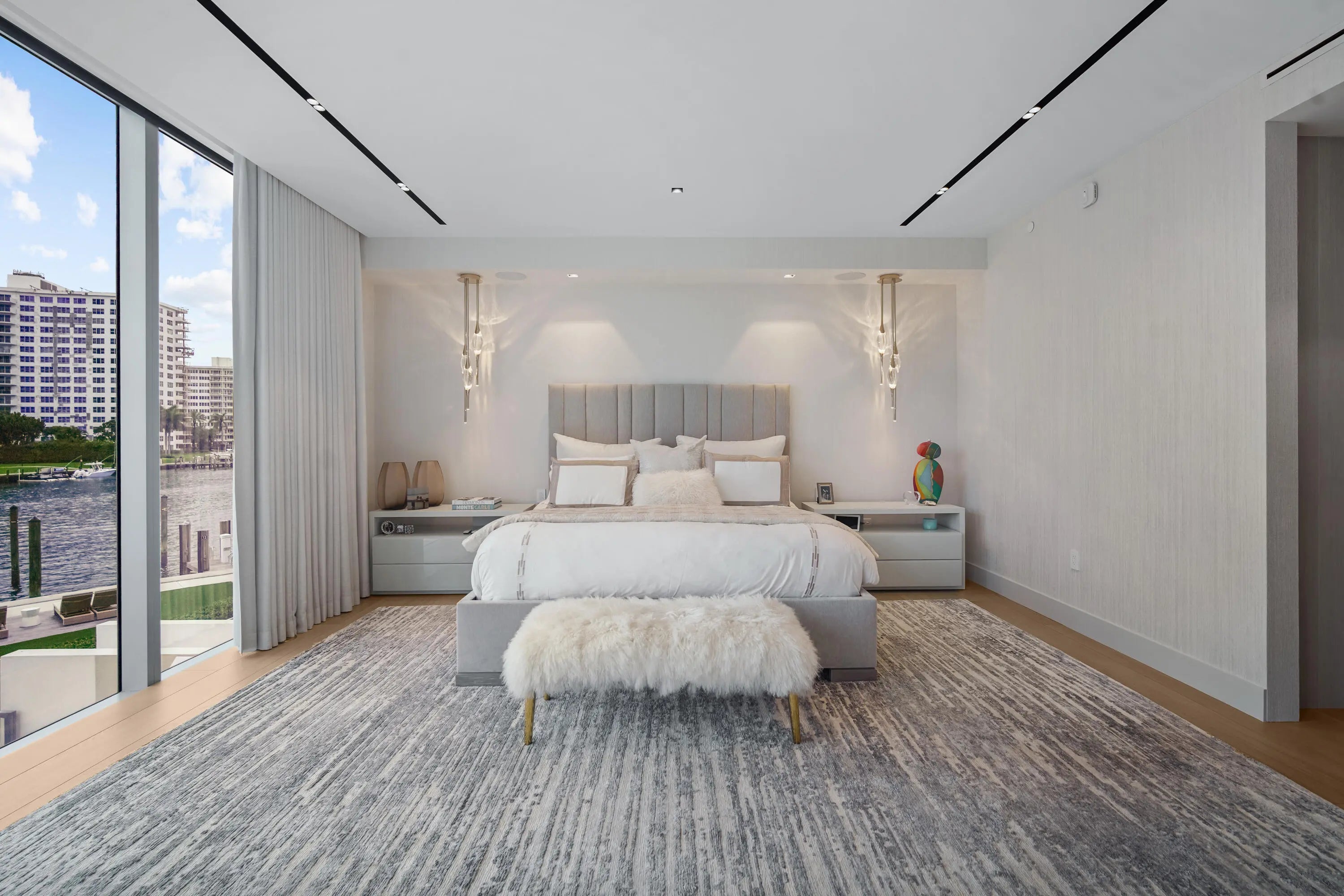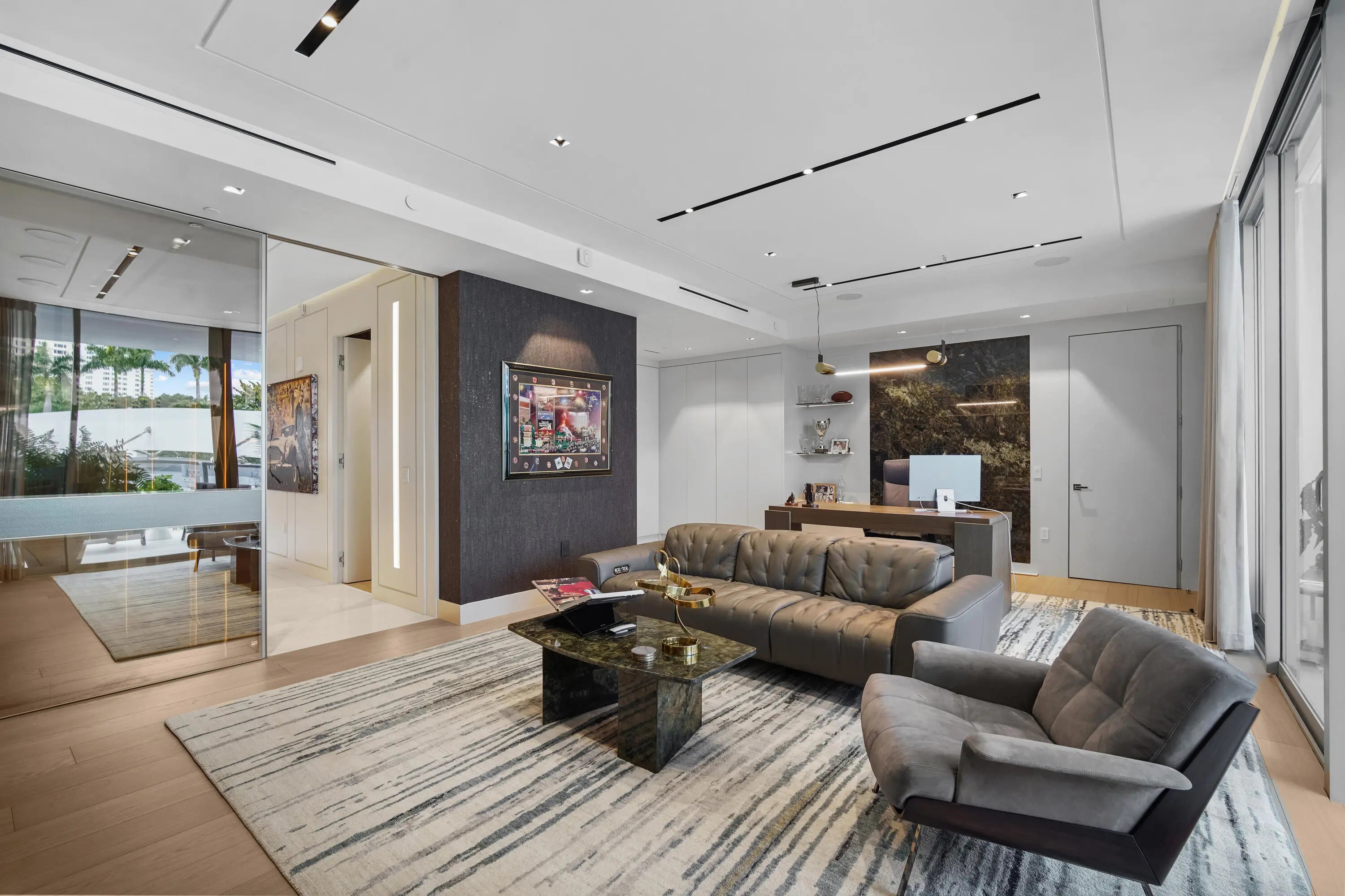 Boca Beach Residences, waterfront Luxury living on Lake Boca! Perfectly positioned directly across the water from The Boca Raton & a short walk to The Boca Beach Club. This Exceptional 4,200 SF residence was meticulous designed by a top designer. It showcases statement millwork with integrated LED inlay lighting throughout, 48'' x 48'' marble flooring, a foyer that welcomes you with a dramatic agate stone feature and a fully custom chef's kitchen designed by Mia Cucina and exceptional appliances by Gaggenau. This home features a primary suite directly on Lake Boca with a generous balcony to enjoy your morning coffee or a cocktail at night. A custom closet to feature your beloved possessions as if you were in a high end department store and a bathroom with a wet room and steam shower that rivals any spa. The guest suite is gorgeous and comfortable with access to a balcony and a large bathroom. The club room is spectacular with wood paneling, cork wallpaper, marble slab inlay on the wall behind the desk and a large balcony. The clubroom also features a full bath, reach in closet and corner closet, easily converted into a third bedroom. Open family and living room are accentuated by floor to ceiling sliders that highlight the views of the intracoastal. The sliders open wall to wall and lead to a generous balcony where one can enjoy watching the yachts go by.... This home includes a dedicated boat slip accommodating a 50' vessel, along with 4 car garage spaces, 2 of which are privately enclosed to keep your favorite cars. Residents enjoy a full service luxury building offering a resort-style pool and grilling area, state of the art fitness center, valet parking, concierge services, 24 hour doorman & private security.