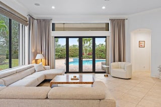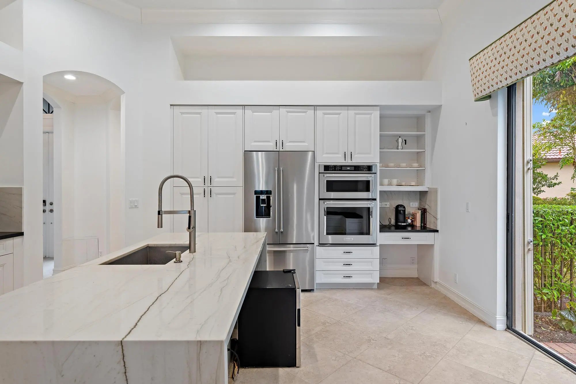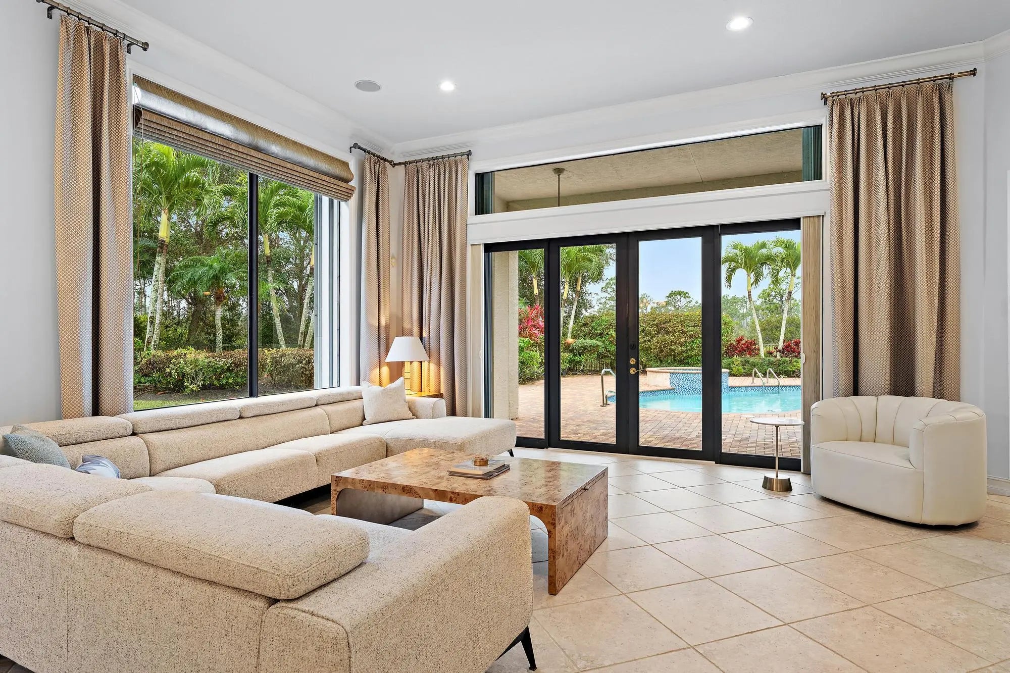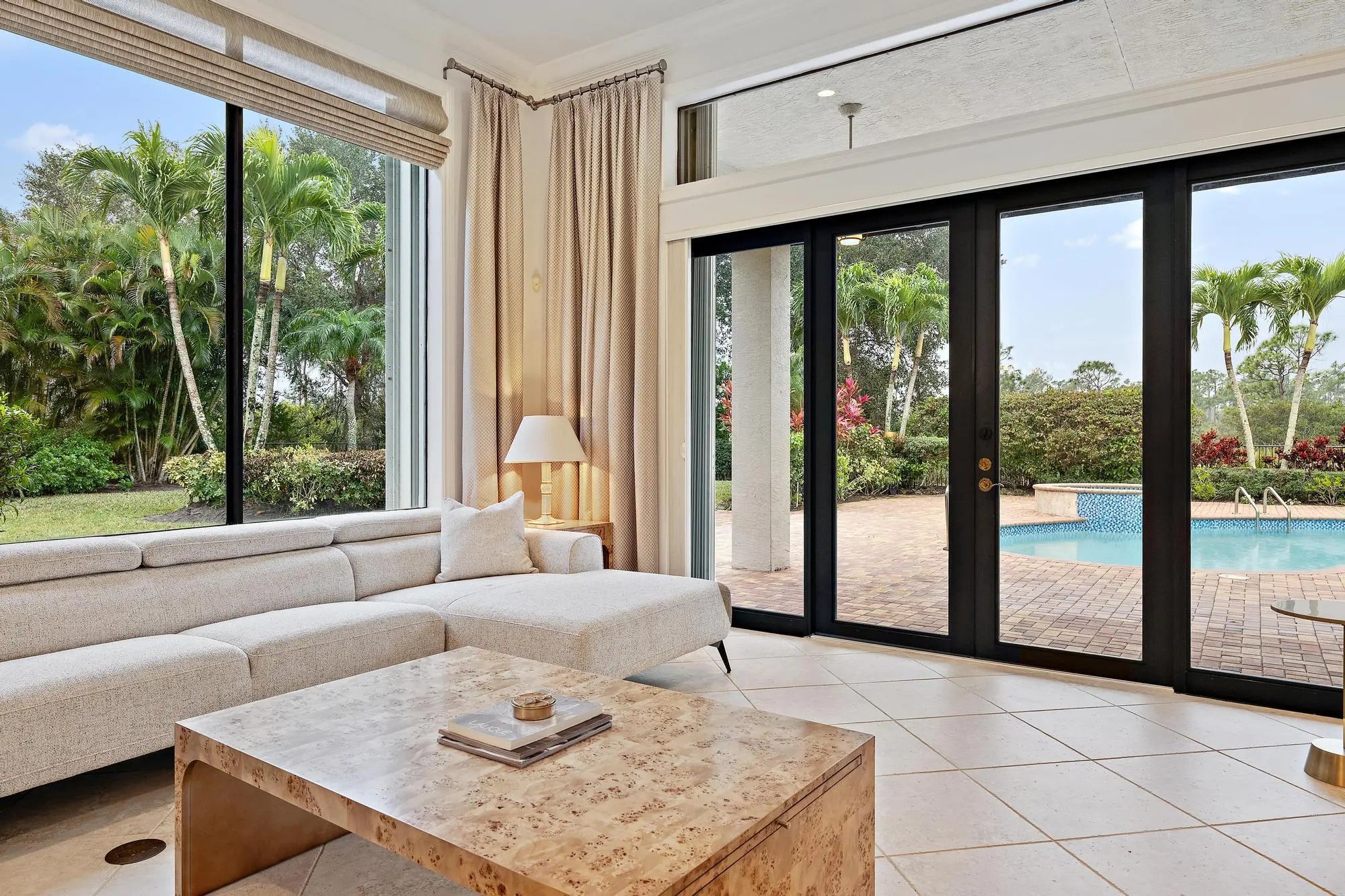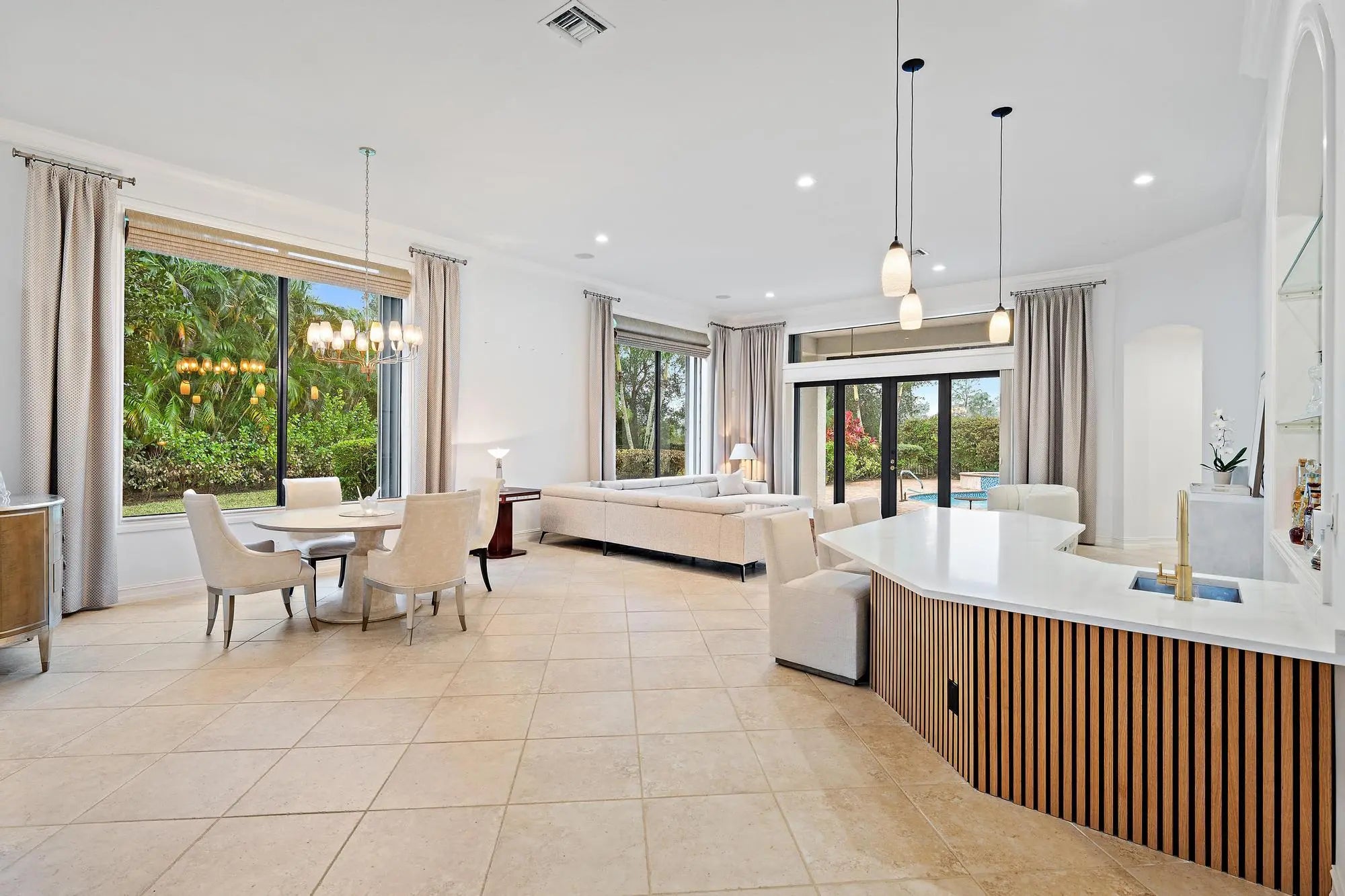 IMMEDIATE PREMIER GOLF MEMBERSHIP AVAILABLE WITH THE PURCHASE OF THIS HOME. Perfectly positioned on nearly half an acre of lushly landscaped grounds within a quiet cul-de-sac, this beautifully upgraded Wyndhurst great room residence offers an exceptional blend of scale, privacy, and contemporary elegance. The expansive side yard—one of the home's most distinctive features—is immediately visible from the great room's oversized windows, flooding the interior with natural light and enhancing the home's already generous sense of space. Recently redesigned in a serene, modern aesthetic, this 3-bedroom, 3.5-bath plus den residence showcases one of the most versatile and sought-after floor plans in Ibis. The open-concept layout provides clearly defined spaces for living, dining, and casual gathering, all anchored by a spacious eat-in kitchen and a quartz-topped wet bar remodeled in 2025, ideal for entertaining. The kitchen was renovated in 2019 with stainless steel appliances, waterfall-edge countertops, and refinished cabinetry, blending timeless design with everyday functionality. Significant recent improvements elevate the home's comfort and value, including a full primary suite renovation in 2025 with new hurricane windows and sliders, new wood-plank look porcelain flooring and a completely remodeled spa-inspired primary bathroom. Additional upgrades include new bedroom flooring (primary in 2025; guest bedrooms in 2023), redesigned powder room countertops, two new HVAC systems (2023 and 2024), and a new hot water heater (2023). All bedrooms are en-suite, offering privacy and comfort for family and guests alike, while designer silhouettes and custom draperies add a refined finishing touch throughout. Outdoor living is equally impressive. The oversized backyard feels like a private retreat, featuring ample covered patio space, a retractable awning, and tranquil views of a forever nature preserve. A freeform saltwater pool and spa with a new pump, sits beautifully on the expansive lot, creating a true "resort-within-a-resort" atmosphere. Accordion hurricane shutters provide peace of mind and ease of storm preparation. LED lighting featured throughout, two new toilets, and new front door hardware complete the list of recent improvements. The owners have already paid $4000for a whole-house generator, which the buyer can assume and proceed with the installation. Located within The Club at Ibis, this award-winning community offers an unparalleled lifestyle with a 90,000-square-foot clubhouse, three Nicklaus-family championship golf courses, five dining venues, a world-class fitness center and spa, and premier tennis and pickleball facilities. A rare opportunity to enjoy space, privacy, and thoughtful renovationsthis exceptional residence delivers refined club living at its finest. IBIS MEMBERSHIP FEES ARE INCREASING. BUYERS WHO GO UNDER CONTRACT BY APRIL 1, 2026 AND CLOSE BY JUNE 12, 2026 CAN SAVE A MINIMUM OF $30,000.