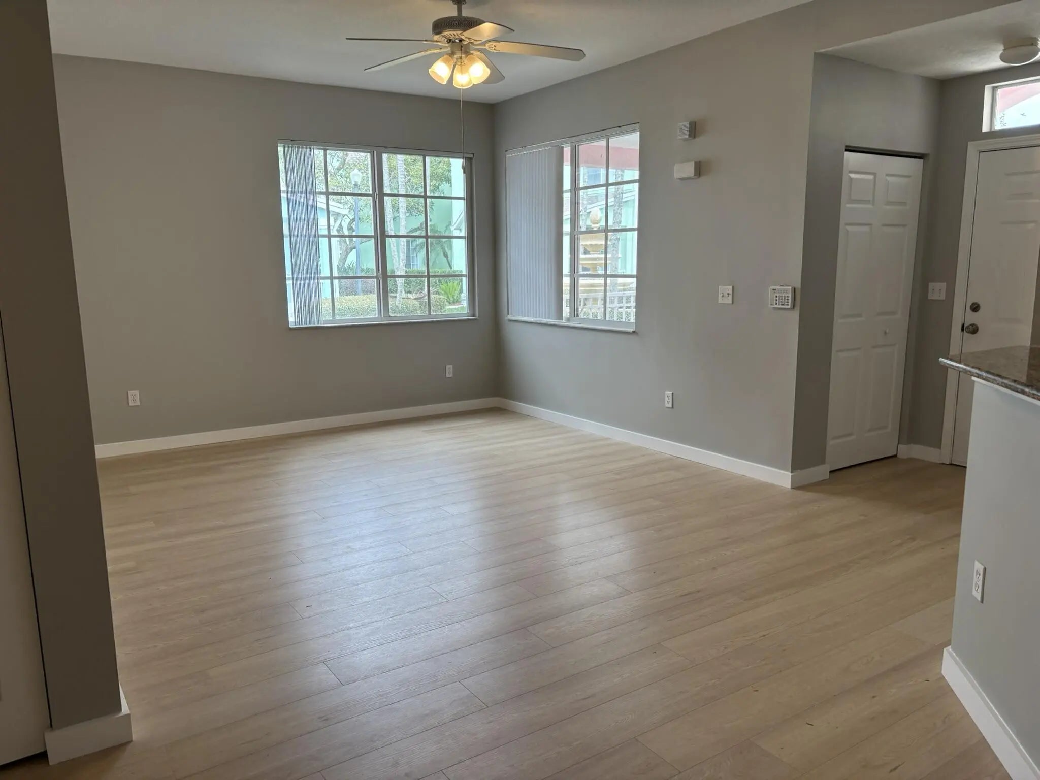 Prime Stuart Location, freshly painted and brand new LVP flooring throughout, your new home offers the ideal combination of comfort, convenience, and coastal charm. The master suite features a beautifully appointed bath with a large soaking tub. Enjoy thoughtful upgrades including ceiling fans in every room, a breakfast bar, central air, in-unit washer & dryer, dishwasher, and disposal. Residents have access to a sparkling community pool, ample parking, and a peaceful setting right in the heart of Stuart; this home truly checks all the boxes.