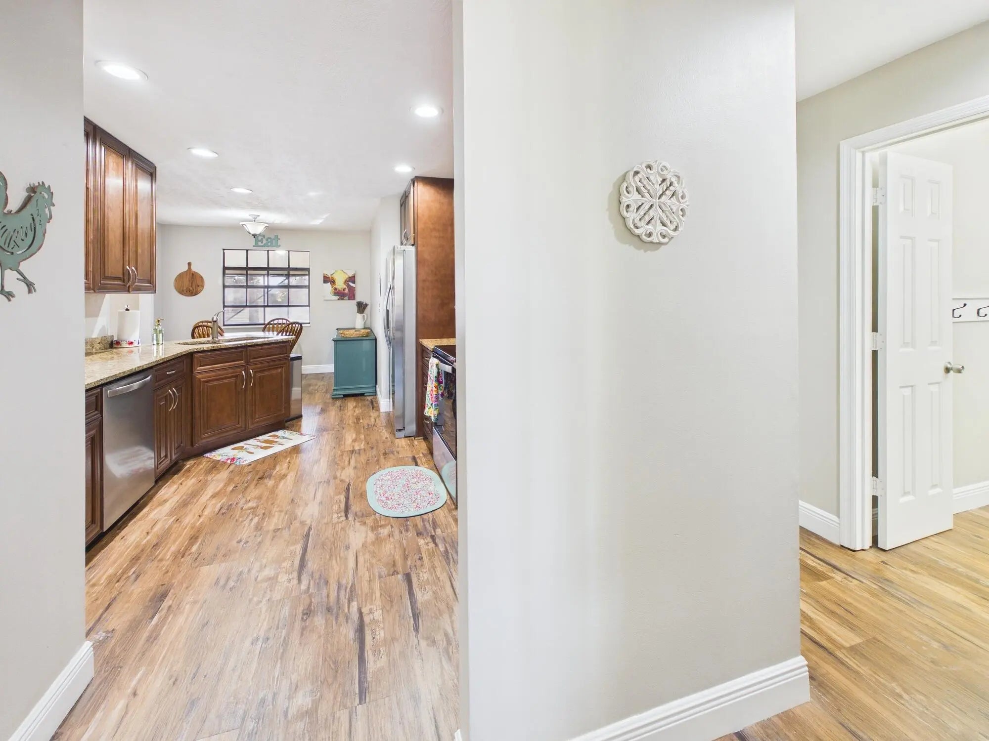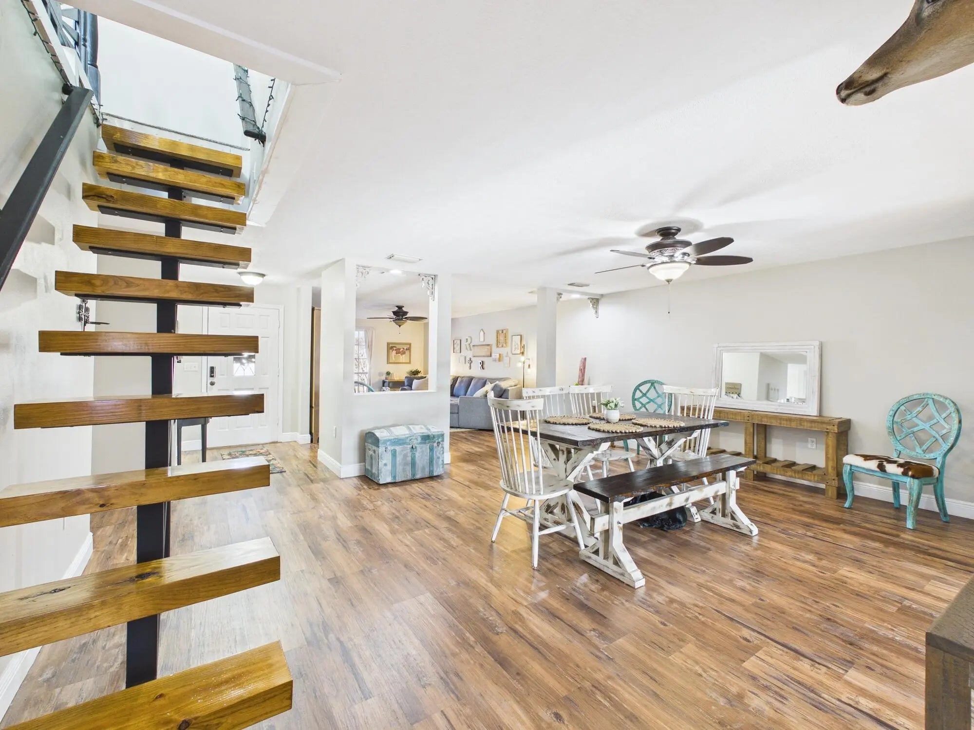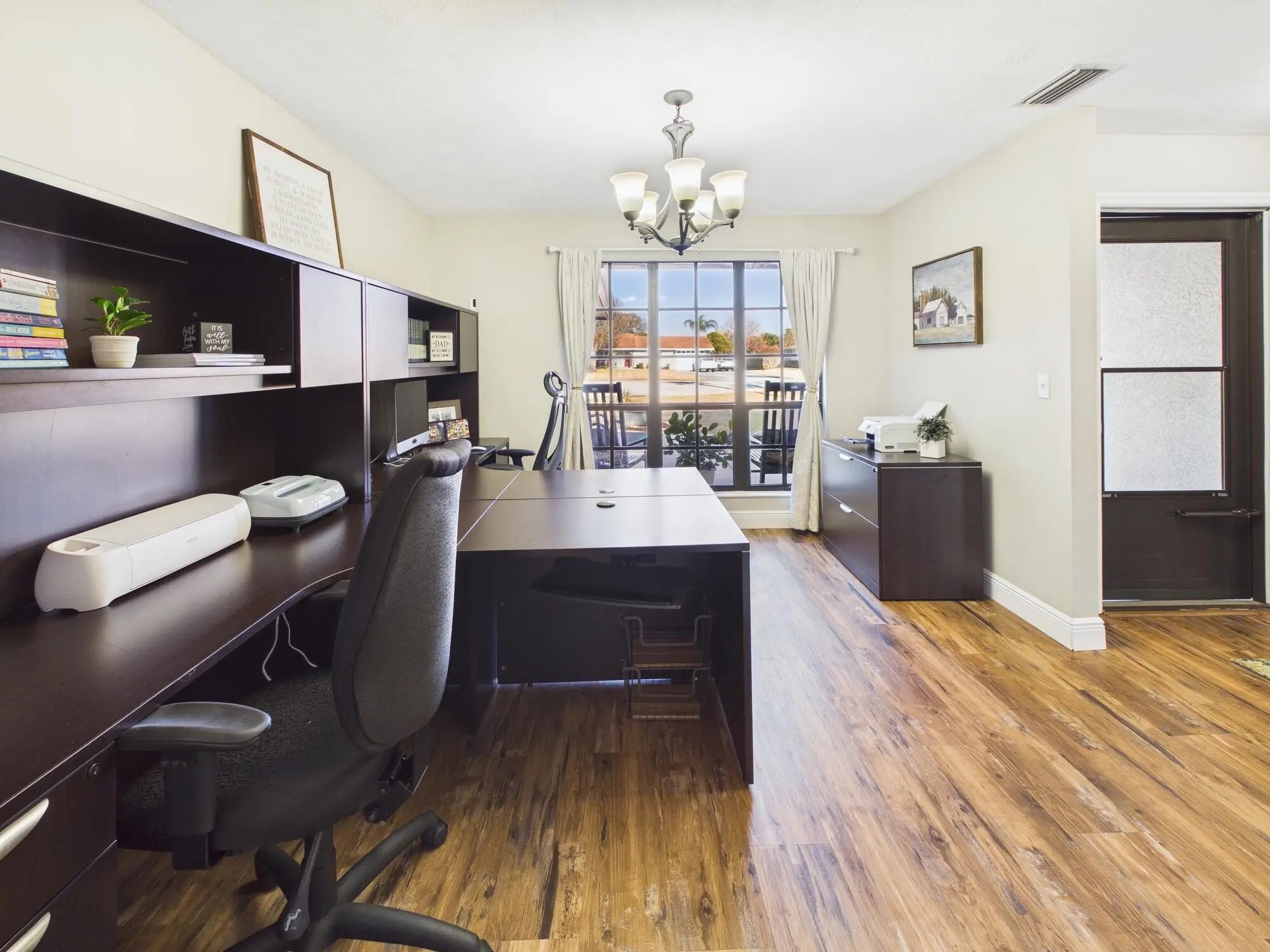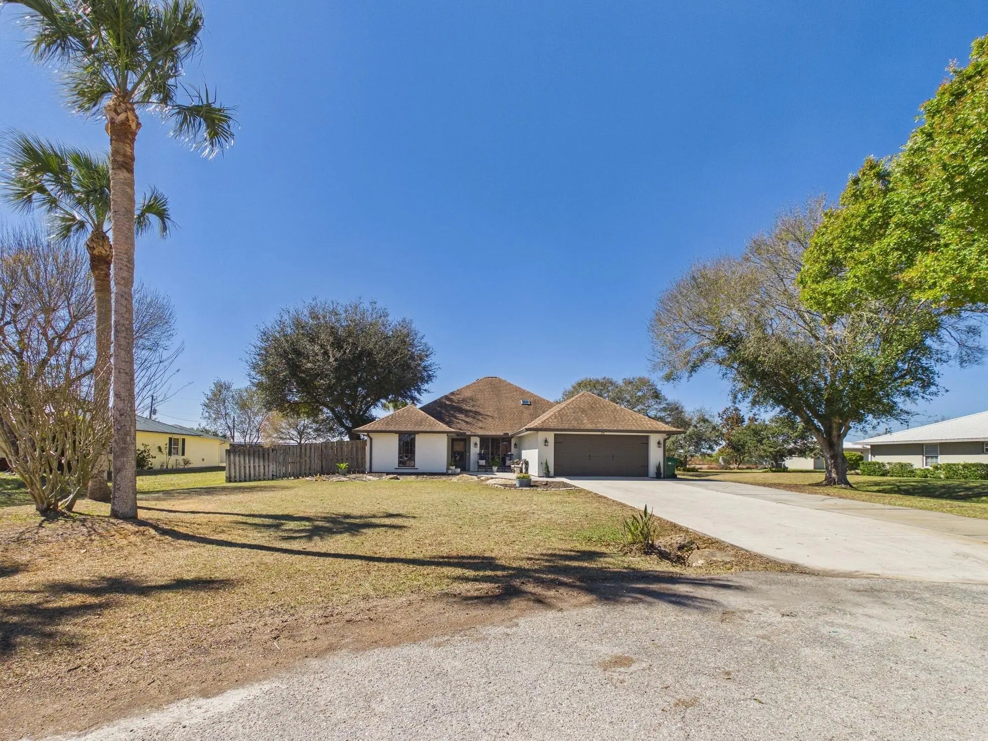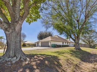 Southern-charmed pool home on a half-acre owner/broker listing! This 4BR/3BA beauty features a screened pool, 2-car garage, new AC, tankless water heater, all-new plumbing, and whole-house reverse-osmosis water for bottle-quality drinking throughout. LifeProof premium flooring and fresh paint shine, while the cozy den offers a real wood-burning fireplace. The primary suite opens to the pool and boasts a spa-like bath with custom vanity, shiplap walls, penny tile, and Jacuzzi tub. A loft bedroom/bath serves as a second suite. Backyard is privacy-fenced with mature oaks, palms, irrigation, hurricane shutters, and trailer parking. Multiple living areas plus office, formal dining, and breakfast nook. This home has it all!