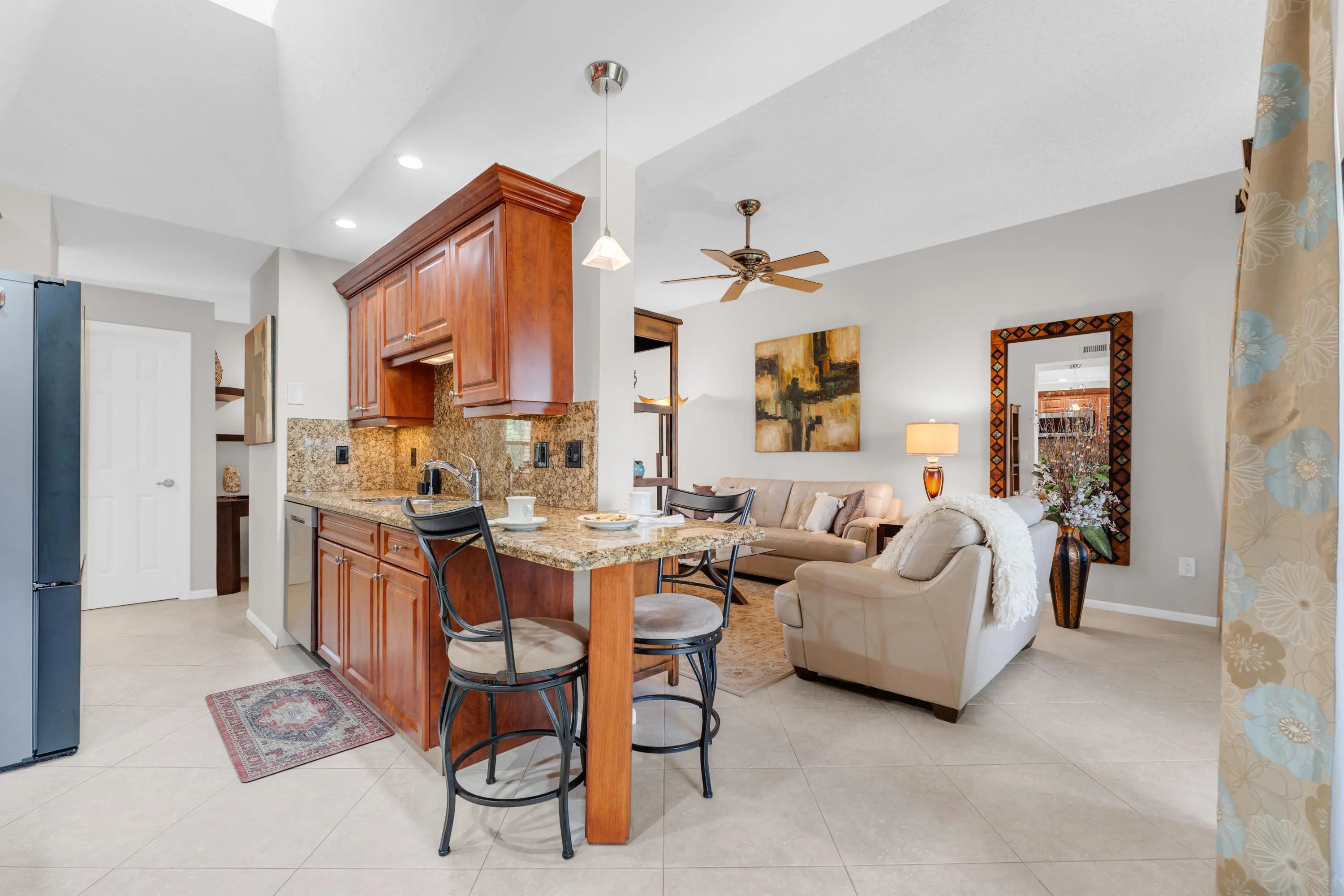 Boca Pointe Country Club membership is optional. This property offers 24-hour manned security for peace of mind. Available for both short term minimum 3 months (different price) and annual leases. it features sophisticated furnishings in neutral tones and is immaculately maintained. The screened-in porch provides stunning views of the golf course, perfect for relaxing. The updated kitchen boasts granite countertops and stainless steel appliances, with tile flooring throughout—no carpets. A covered carport and elevator adds convenience. Enjoy your morning coffee while taking in the serene golf course views. This is a turn key rental, Water and cable are included in the lease. Centrally located just minutes from shopping, dining, and Boca Raton Beach. No pets and no smoker's.