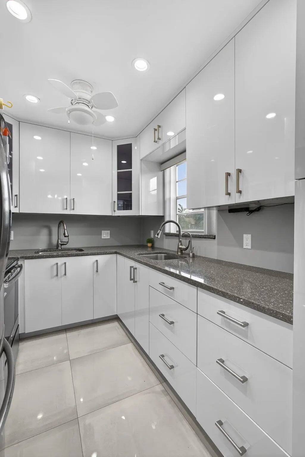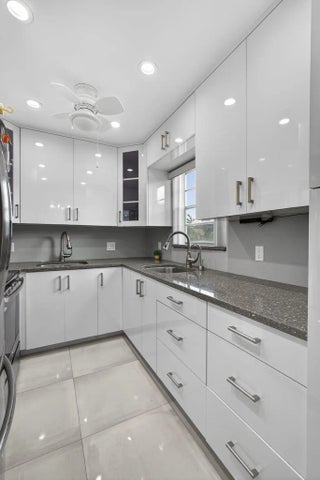 DON'T MISS OUT ON THIS MAGNIFICENT AND TOTALLY RENOVATED 2BED 2BATH CORNER UNIT! THIS UNIT FEATURES LARGE DESIGNER CERAMIC TILE FLOORING THROUGHOUT, A STUNNING WHITE KITCHEN WITH 2 SEPARATE SINKS AND SLEEK STAINLESS STEEL APPLIANCES.TWO UPDATED BATHROOMS WITH STEP IN SHOWERS ADD TO THE MODERN FEEL. PLUS YOU'LL ENJOY THE GARDEN VIEW. ADDITIONALLY THE 1.BEDROOM 1.5 UNIT NEXT DOOR IS ALSO FOR SALE. WELL MAINTAINED BUILDING WITH AN OPEN PATIO TO SIT OUT AND RELAX ON. GREAT. CENTRAL LOCATION SHORT WALK TO THE HAVERHILL GATE AND THE CLUBHOUSE.Roomy closets (one walk-in), screened-in patio, laundry room, assigned parking spot plus visitor parking available; local bus for errands/shopping both within & outside The Village. OME & ENJOY RESORT STYLE LIVING IN THIS GATED COMMUNITY FOR ACTIVE ADULTS CLUBHOUSE features a theater, indoor pool, card room, community/party room, billiard room ,shuffle board ,tennis , pickleball ,bocce and two outdoor pools. Numerous heated outdoor pools throughout the community. Separate fitness center with gym , outdoor heated pool and a resistance pool. Two guarded gates and 24 hour roving security patrol. GREAT LOCATION: close to shops, restaurants, PBI airport and beaches.