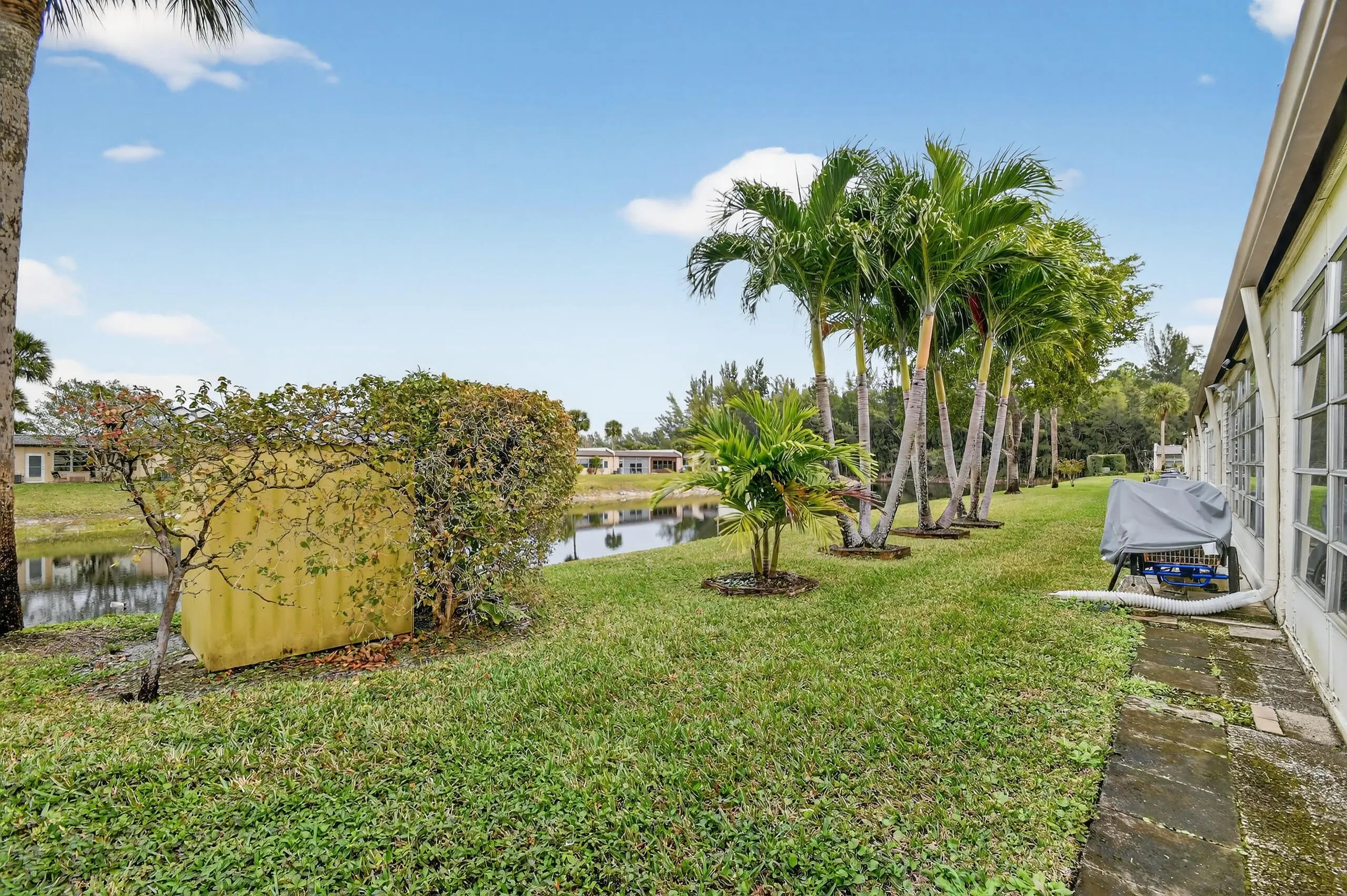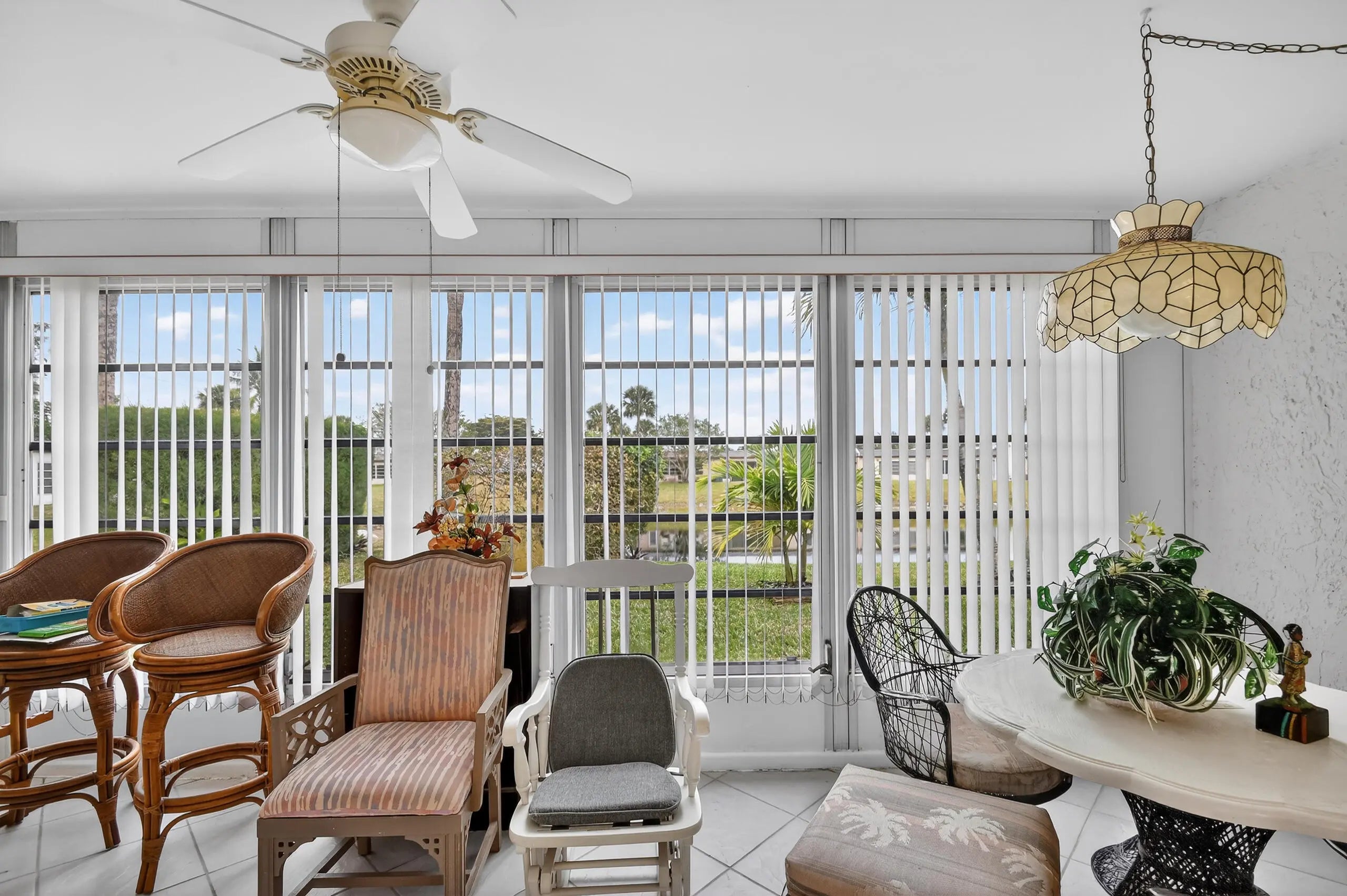 Villa enclosed patio overlooking the waterway.2/2 convertible floor plan. Accordion Hurricane shutters on all windows and sliding glass doors. Breakfast Bar in the kitchen and extra cabinets. UNIT IS READY TO MOVE-IN