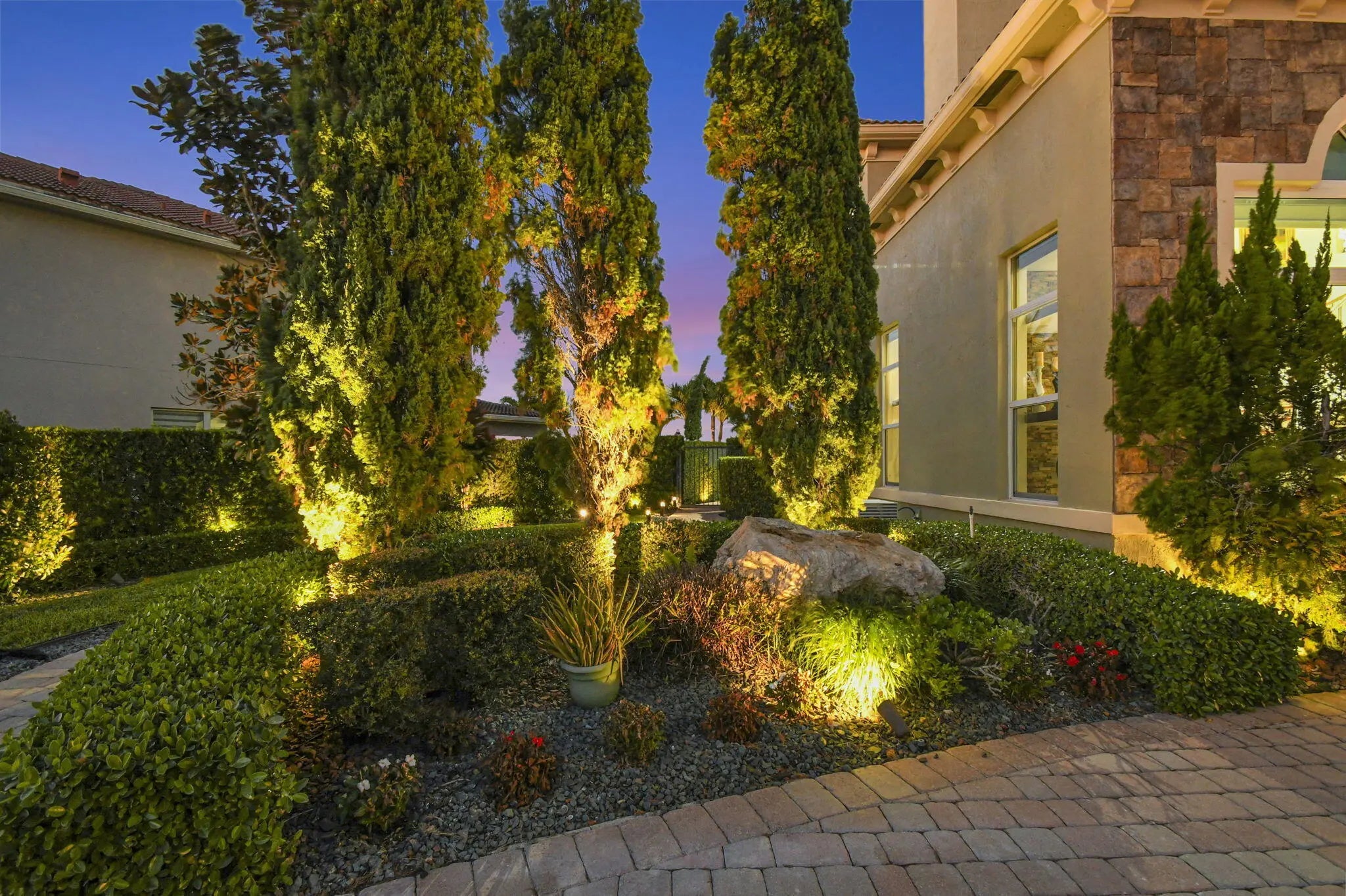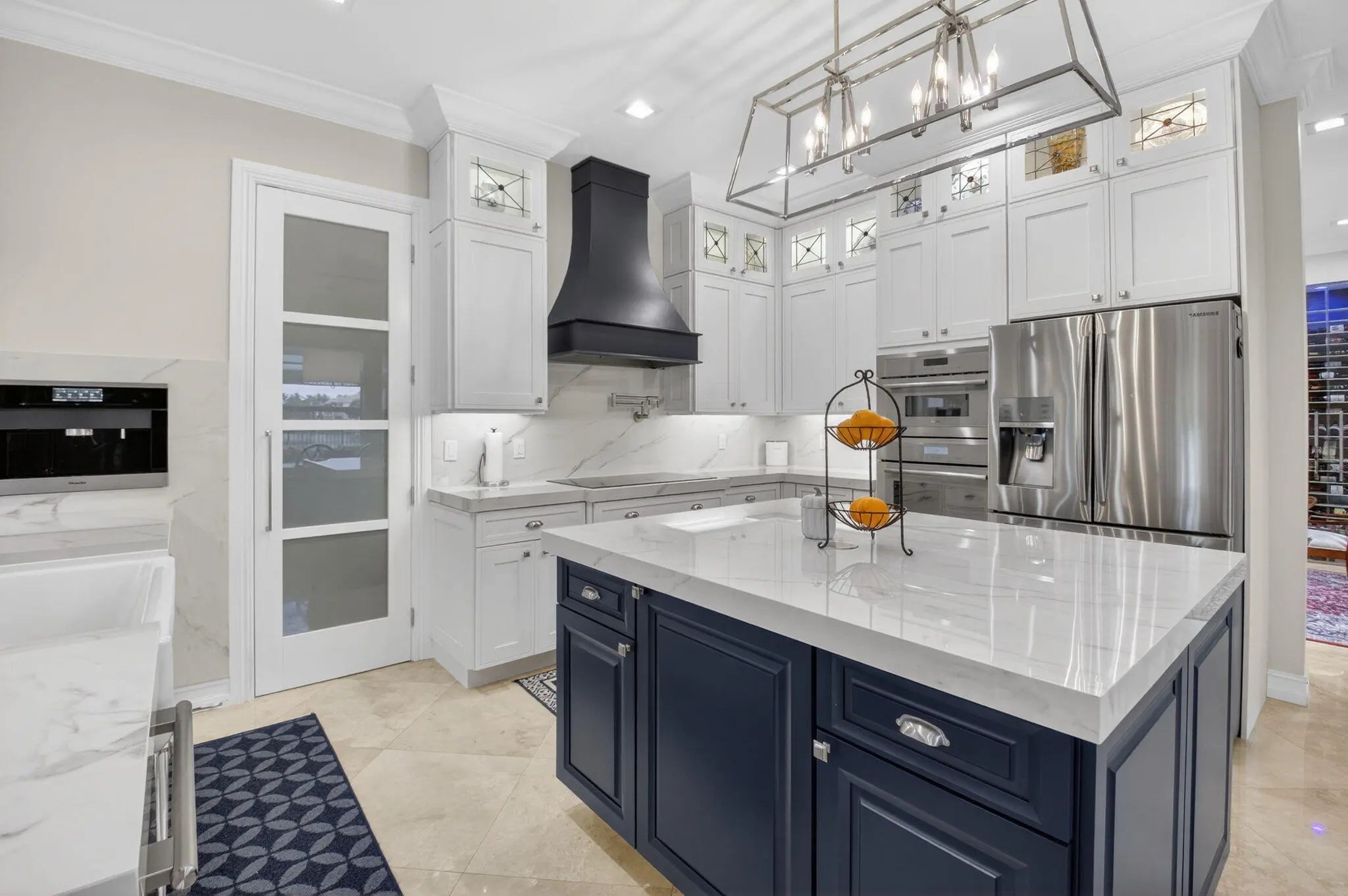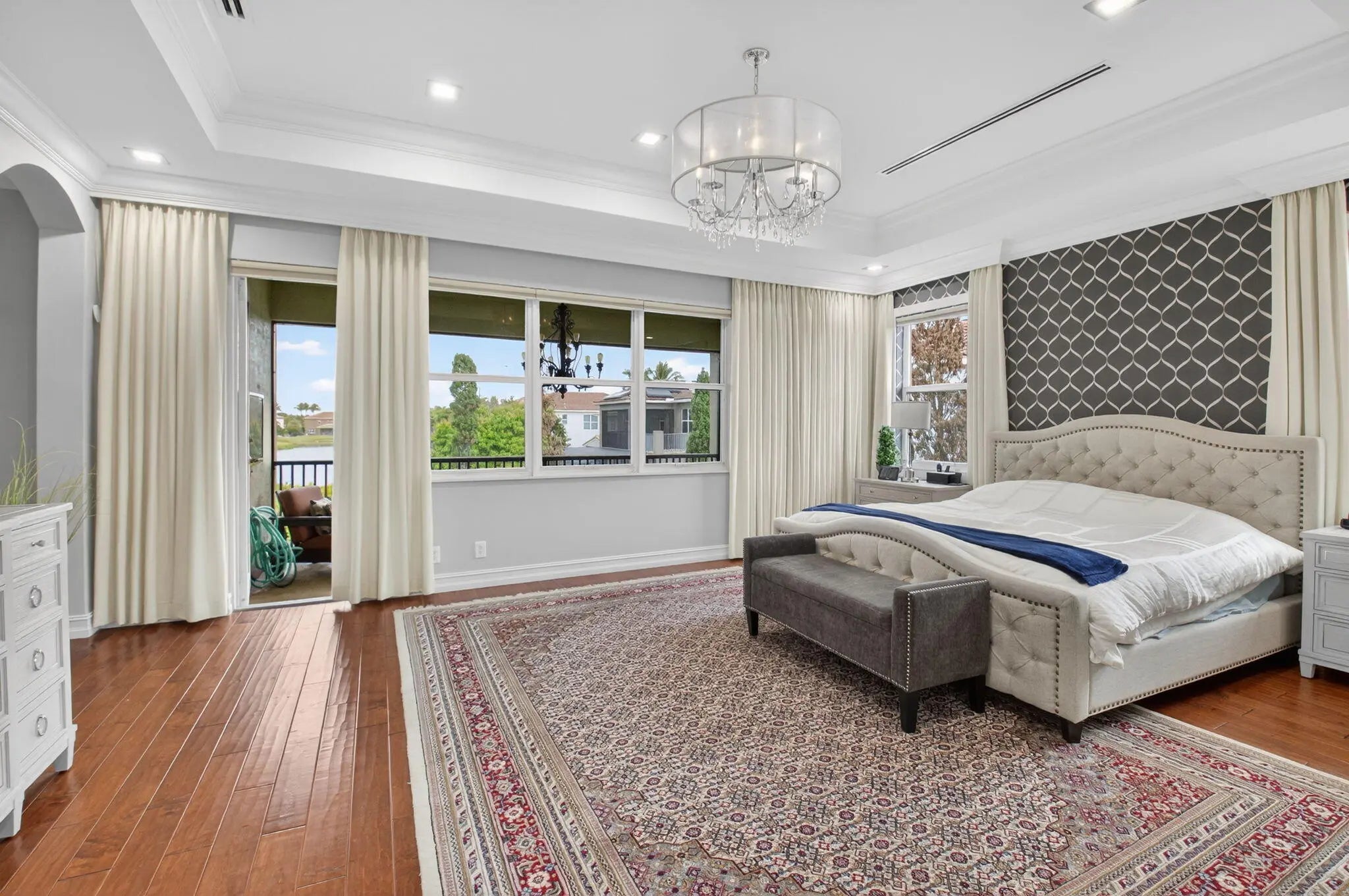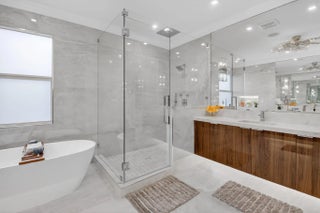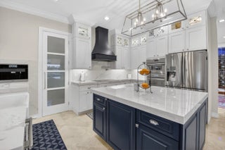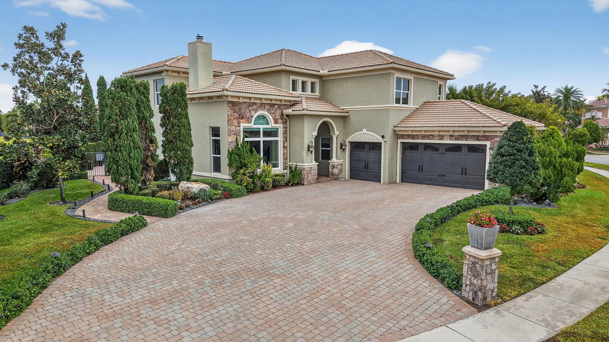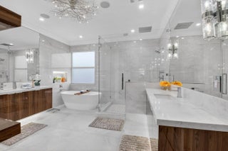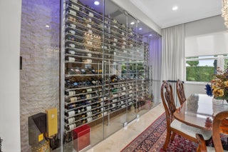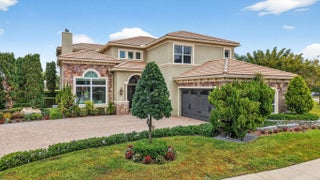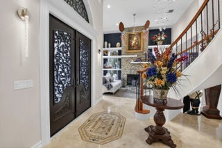 Located in the prestigious Estate Section of Cobblestone Creek, this meticulously maintained, fully renovated residence showcases custom, high-end finishes throughout and sits on a rare premium oversized lot. Enjoy the longest lake view in the community and the largest driveway Cobblestone Creek has to offer, creating exceptional curb appeal and privacy. The home offers flexible living with up to five bedrooms. A downstairs office/den features a removable custom wine storage system, allowing for easy conversion to a bedroom with closet, while an upstairs office with a barn door can also serve as an additional bedroom. The expansive primary suite is a private retreat, featuring two walk-in closets with custom California Closet systems, a screened balcony overlooking the lake (See More) The expansive primary suite is a private retreat, featuring two walk-in closets with custom California Closet systems, a screened balcony overlooking the lake, and a fully renovated 2025 spa-style bathroom with porcelain tile, dual floating vanities, a large glass-enclosed shower, freestanding soaking tub, and private water closet. Recent renovations include a gourmet kitchen appointed with Thermador appliances, microwave and convection oven combo, induction cooktop, vented hood, porcelain countertops, and a built-in Miele coffee system. Additional highlights include marble flooring, elegant window treatments, soaring ceilings, crown molding, a real wood-burning fireplace, impact windows, iron staircase, second-floor wood flooring, and a custom garage organization system. Designed for effortless entertaining, the formal dining room features a temperature-controlled wine display accommodating up to 400 bottles, a chandelier lift, and seamless indoor-outdoor flow. The covered patio offers a built-in grill, freeform pool, and serene lake views, all within a fully fenced backyard enhanced by northern-inspired landscaping.