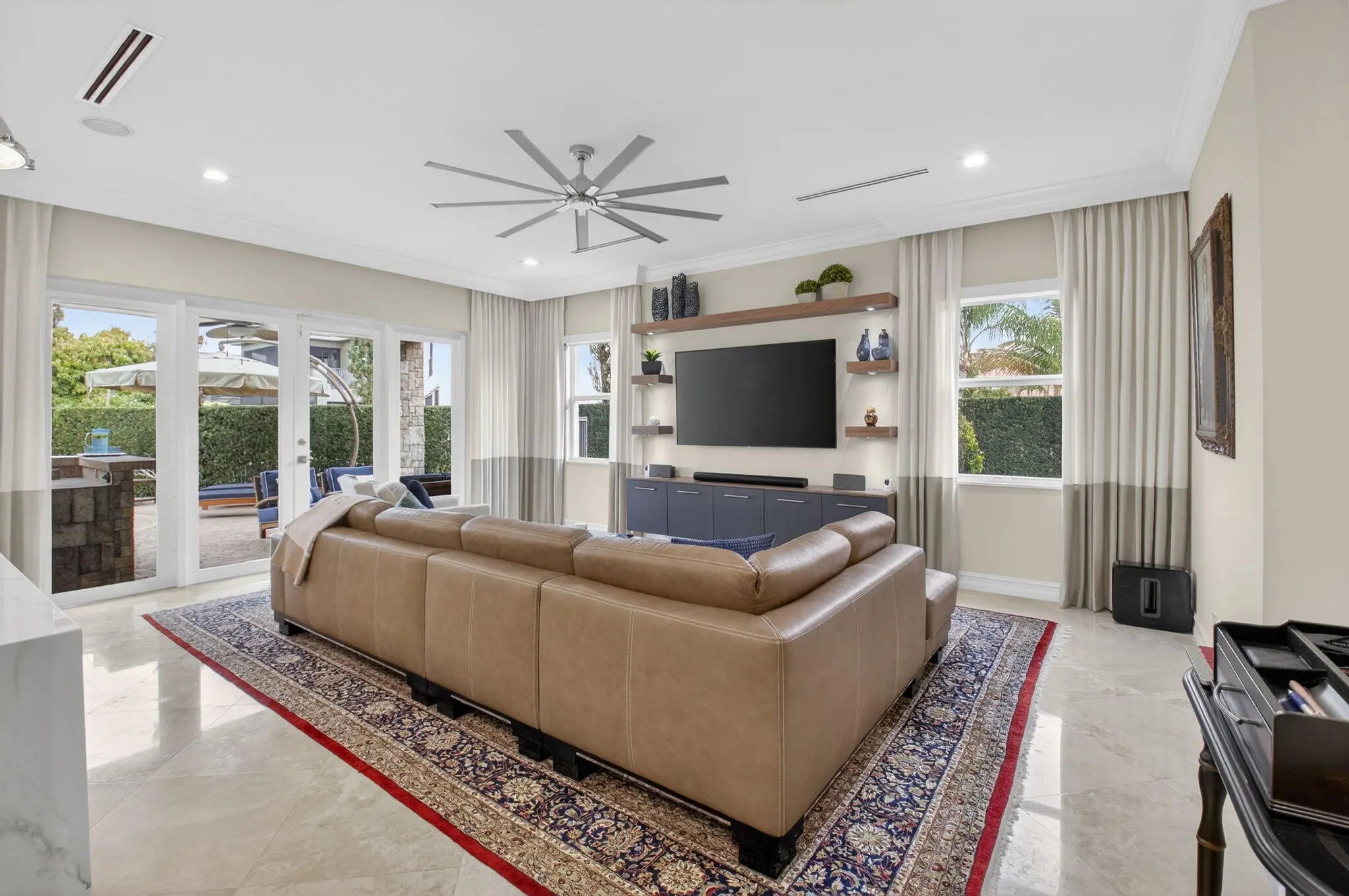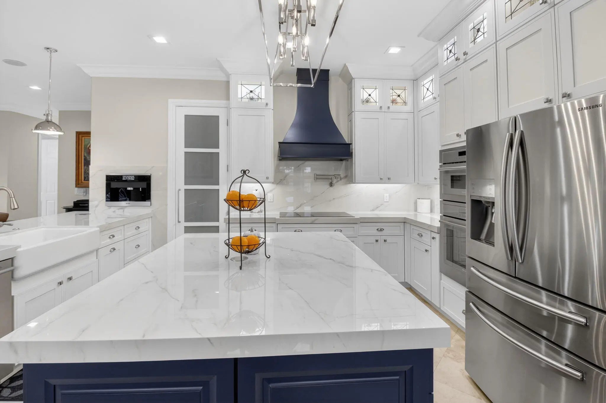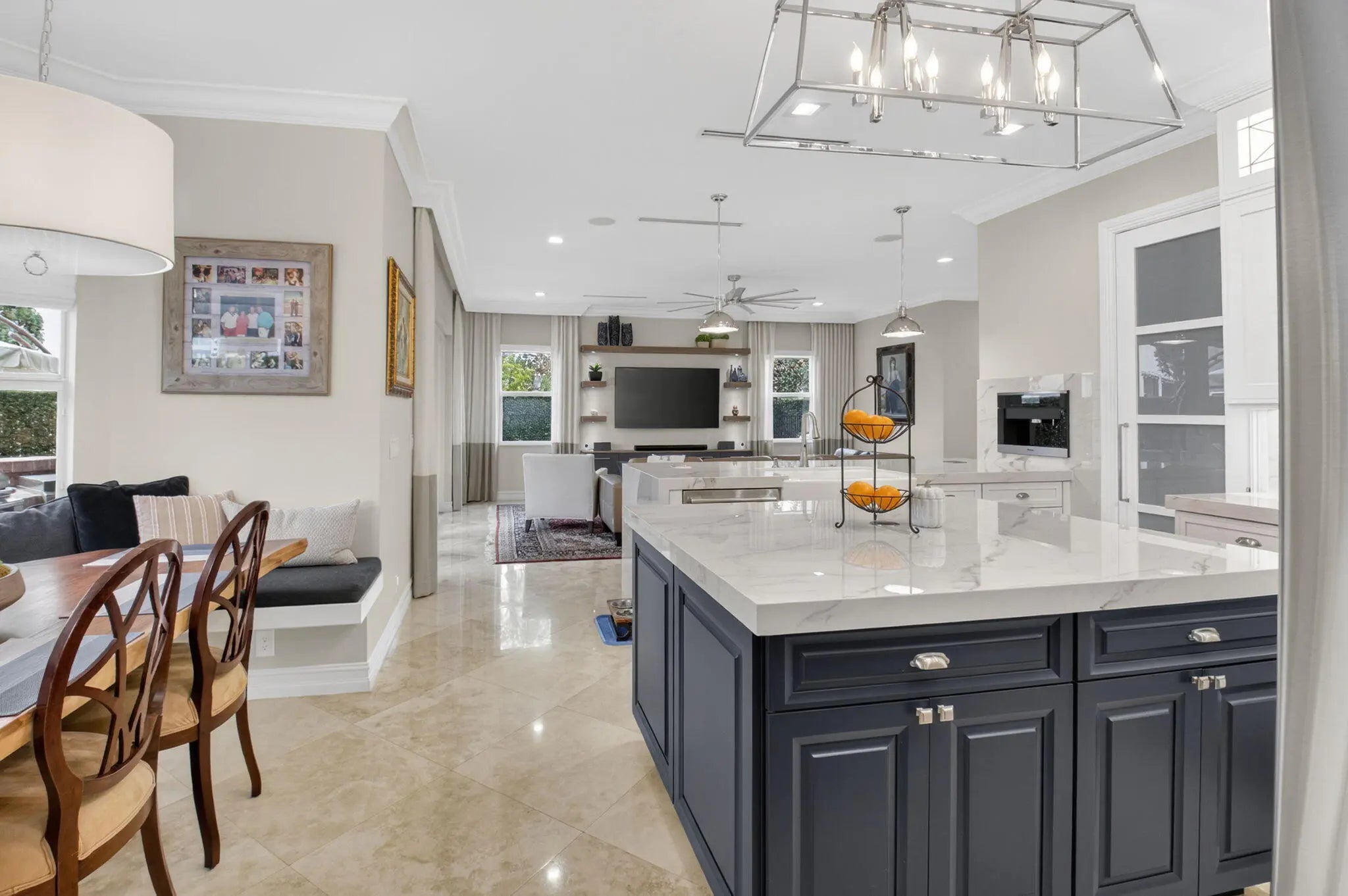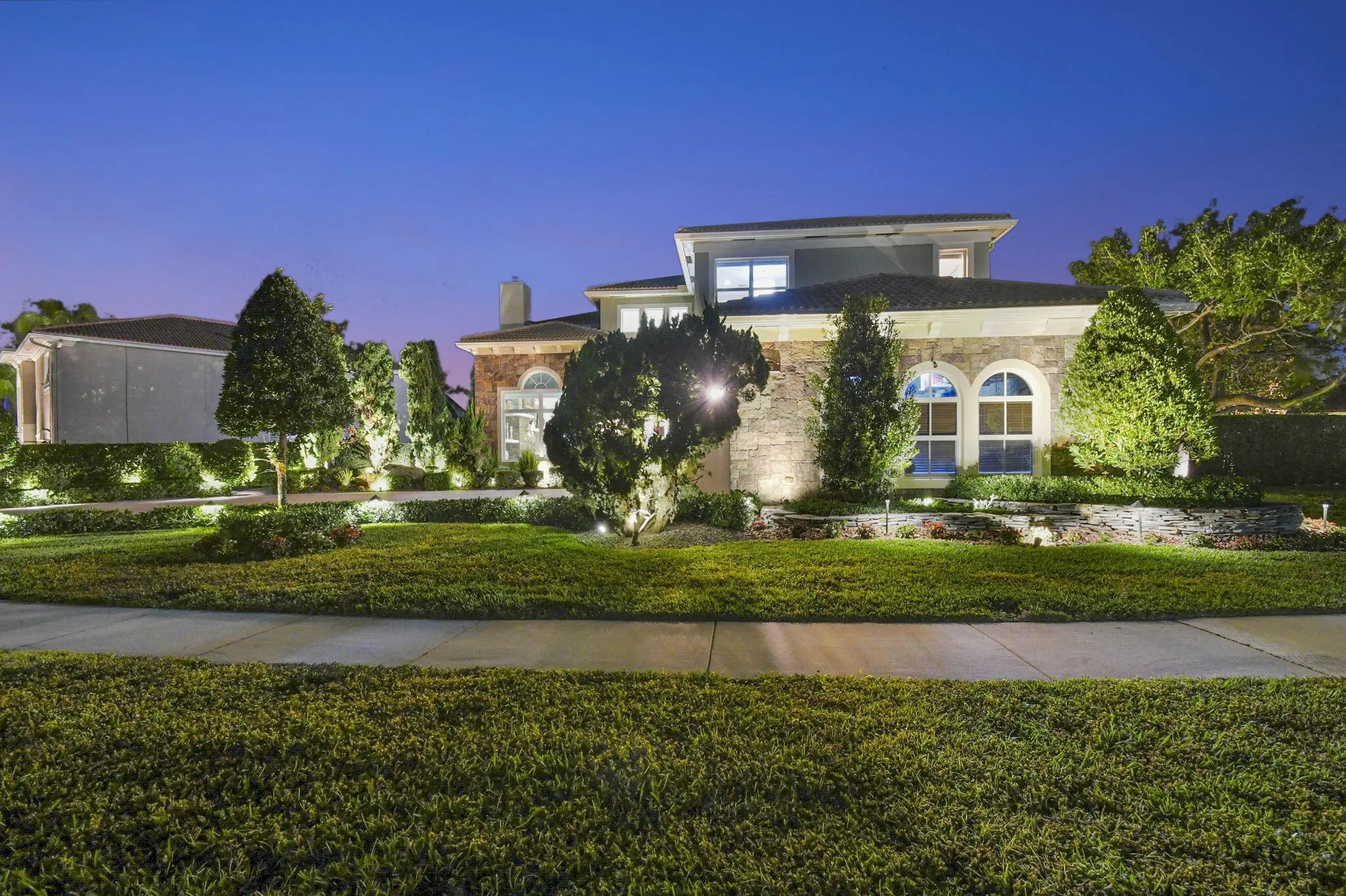 Located in the prestigious Estate Section of Cobblestone Creek, this meticulously maintained, fully renovated residence showcases custom, high-end finishes throughout and sits on a rare premium oversized lot. Enjoy the longest lake view in the community and the largest driveway Cobblestone Creek has to offer, creating exceptional curb appeal and privacy. The home offers flexible living with up to five bedrooms. A downstairs office/den features a removable custom wine storage system, allowing for easy conversion to a bedroom with closet, while an upstairs office with a barn door can also serve as an additional bedroom. The expansive primary suite is a private retreat, featuring two walk-in closets with custom California Closet systems, a screened balcony overlooking the lake (See More) The expansive primary suite is a private retreat, featuring two walk-in closets with custom California Closet systems, a screened balcony overlooking the lake, and a fully renovated 2025 spa-style bathroom with porcelain tile, dual floating vanities, a large glass-enclosed shower, freestanding soaking tub, and private water closet. Recent renovations include a gourmet kitchen appointed with Thermador appliances, microwave and convection oven combo, induction cooktop, vented hood, porcelain countertops, and a built-in Miele coffee system. Additional highlights include marble flooring, elegant window treatments, soaring ceilings, crown molding, a real wood-burning fireplace, impact windows, iron staircase, second-floor wood flooring, and a custom garage organization system. Designed for effortless entertaining, the formal dining room features a temperature-controlled wine display accommodating up to 400 bottles, a chandelier lift, and seamless indoor-outdoor flow. The covered patio offers a built-in grill, freeform pool, and serene lake views, all within a fully fenced backyard enhanced by northern-inspired landscaping.
