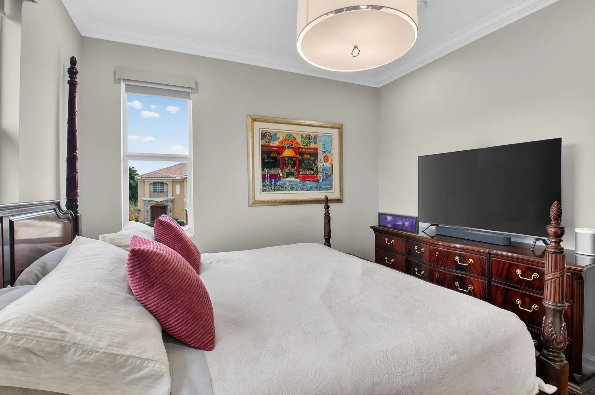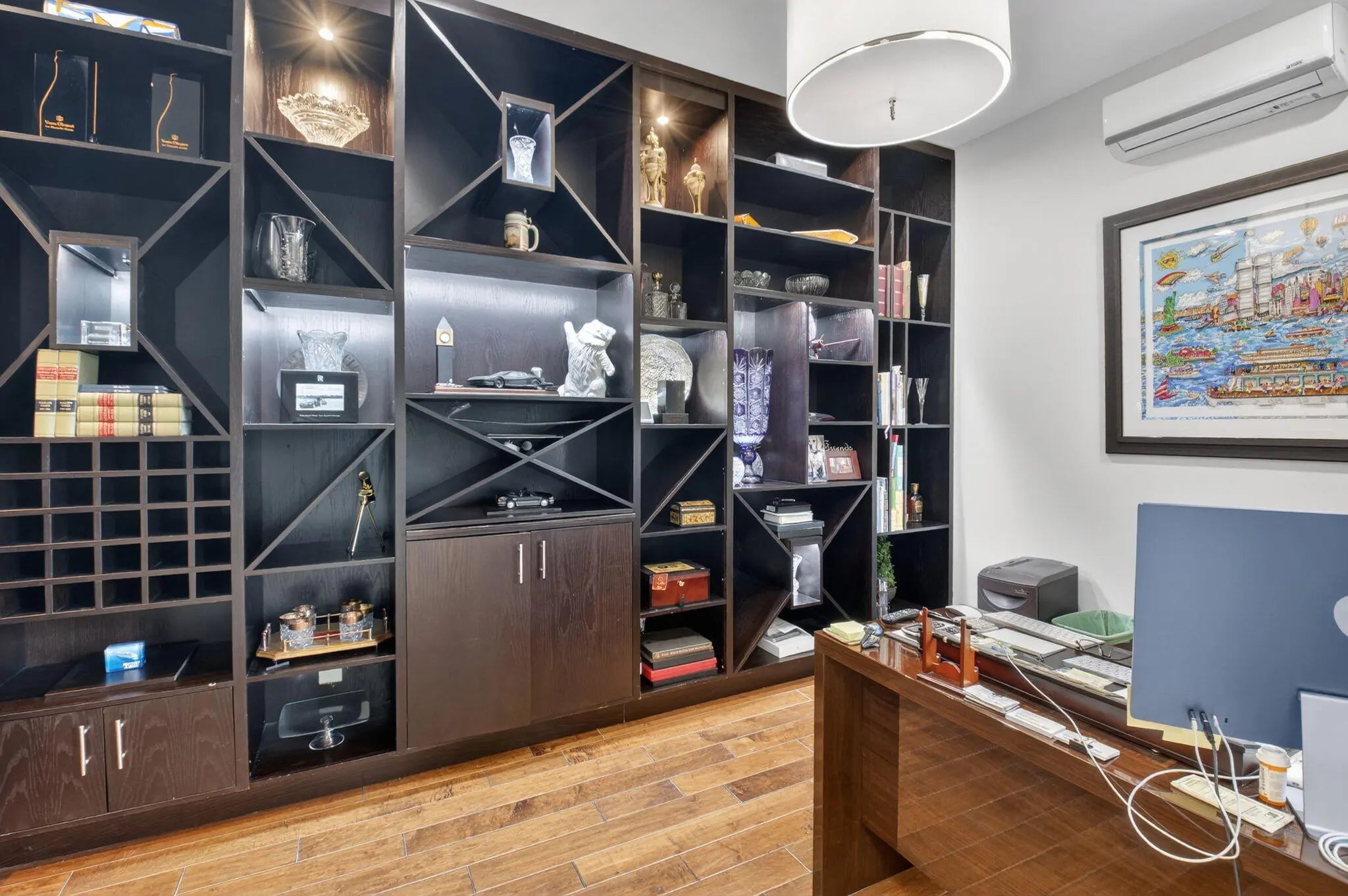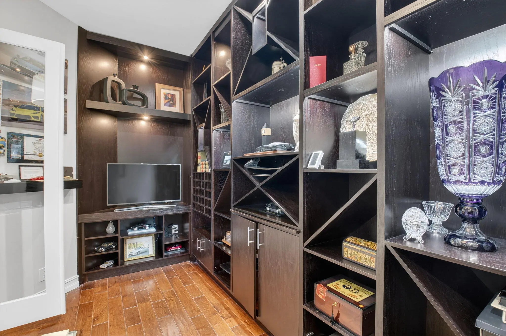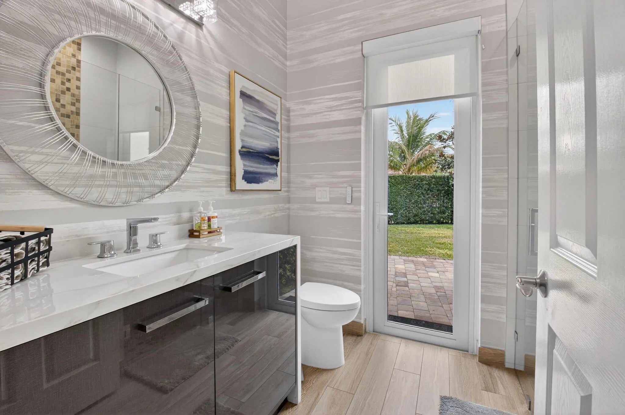 Located in the prestigious Estate Section of Cobblestone Creek, this meticulously maintained, fully renovated residence showcases custom, high-end finishes throughout and sits on a rare premium oversized lot. Enjoy the longest lake view in the community and the largest driveway Cobblestone Creek has to offer, creating exceptional curb appeal and privacy. The home offers flexible living with up to five bedrooms. A downstairs office/den features a removable custom wine storage system, allowing for easy conversion to a bedroom with closet, while an upstairs office with a barn door can also serve as an additional bedroom. The expansive primary suite is a private retreat, featuring two walk-in closets with custom California Closet systems, a screened balcony overlooking the lake (See More) The expansive primary suite is a private retreat, featuring two walk-in closets with custom California Closet systems, a screened balcony overlooking the lake, and a fully renovated 2025 spa-style bathroom with porcelain tile, dual floating vanities, a large glass-enclosed shower, freestanding soaking tub, and private water closet. Recent renovations include a gourmet kitchen appointed with Thermador appliances, microwave and convection oven combo, induction cooktop, vented hood, porcelain countertops, and a built-in Miele coffee system. Additional highlights include marble flooring, elegant window treatments, soaring ceilings, crown molding, a real wood-burning fireplace, impact windows, iron staircase, second-floor wood flooring, and a custom garage organization system. Designed for effortless entertaining, the formal dining room features a temperature-controlled wine display accommodating up to 400 bottles, a chandelier lift, and seamless indoor-outdoor flow. The covered patio offers a built-in grill, freeform pool, and serene lake views, all within a fully fenced backyard enhanced by northern-inspired landscaping.