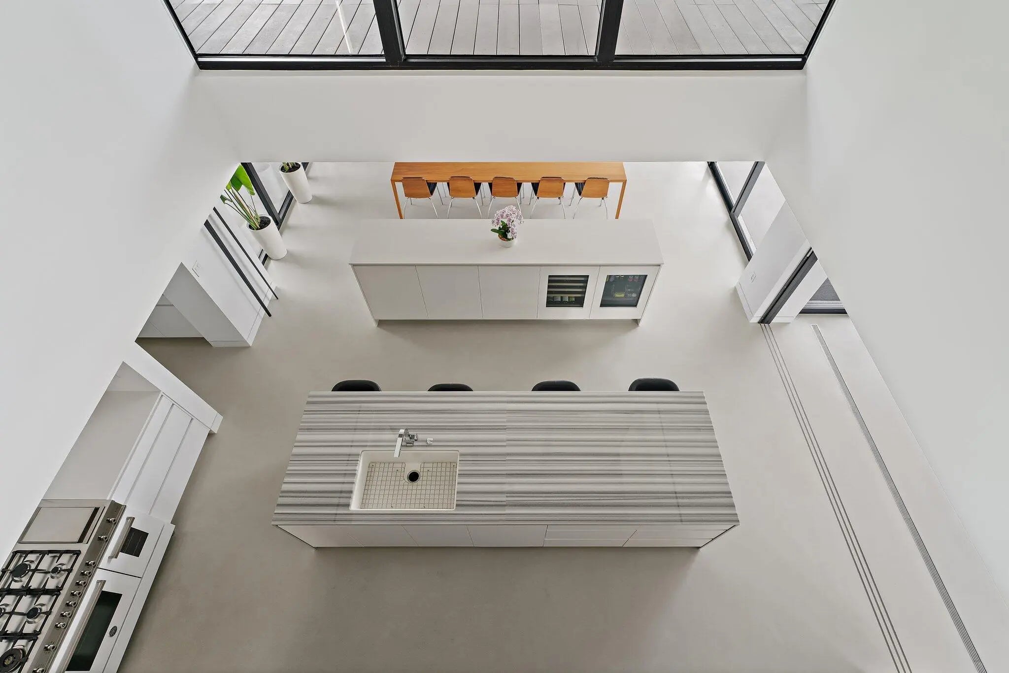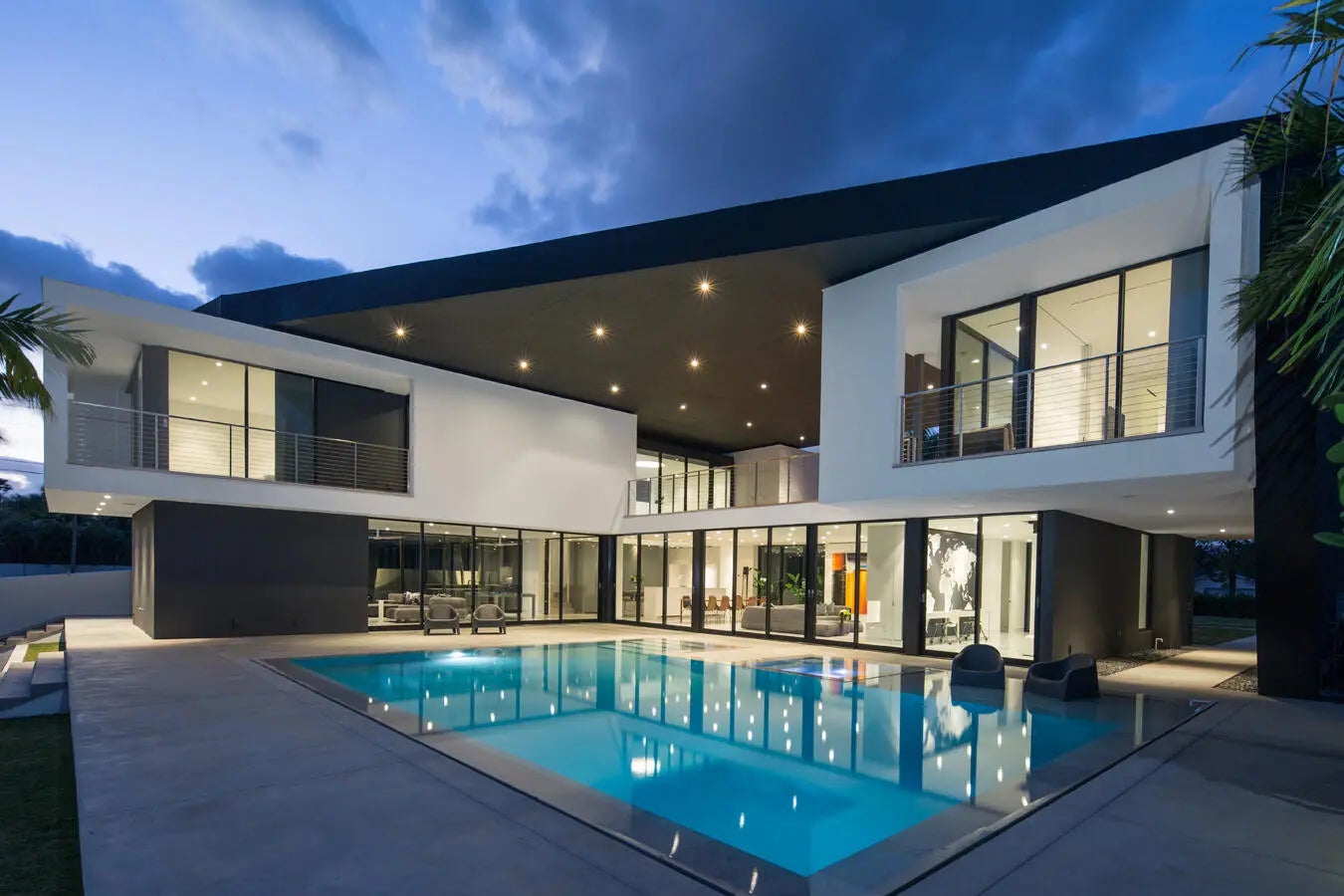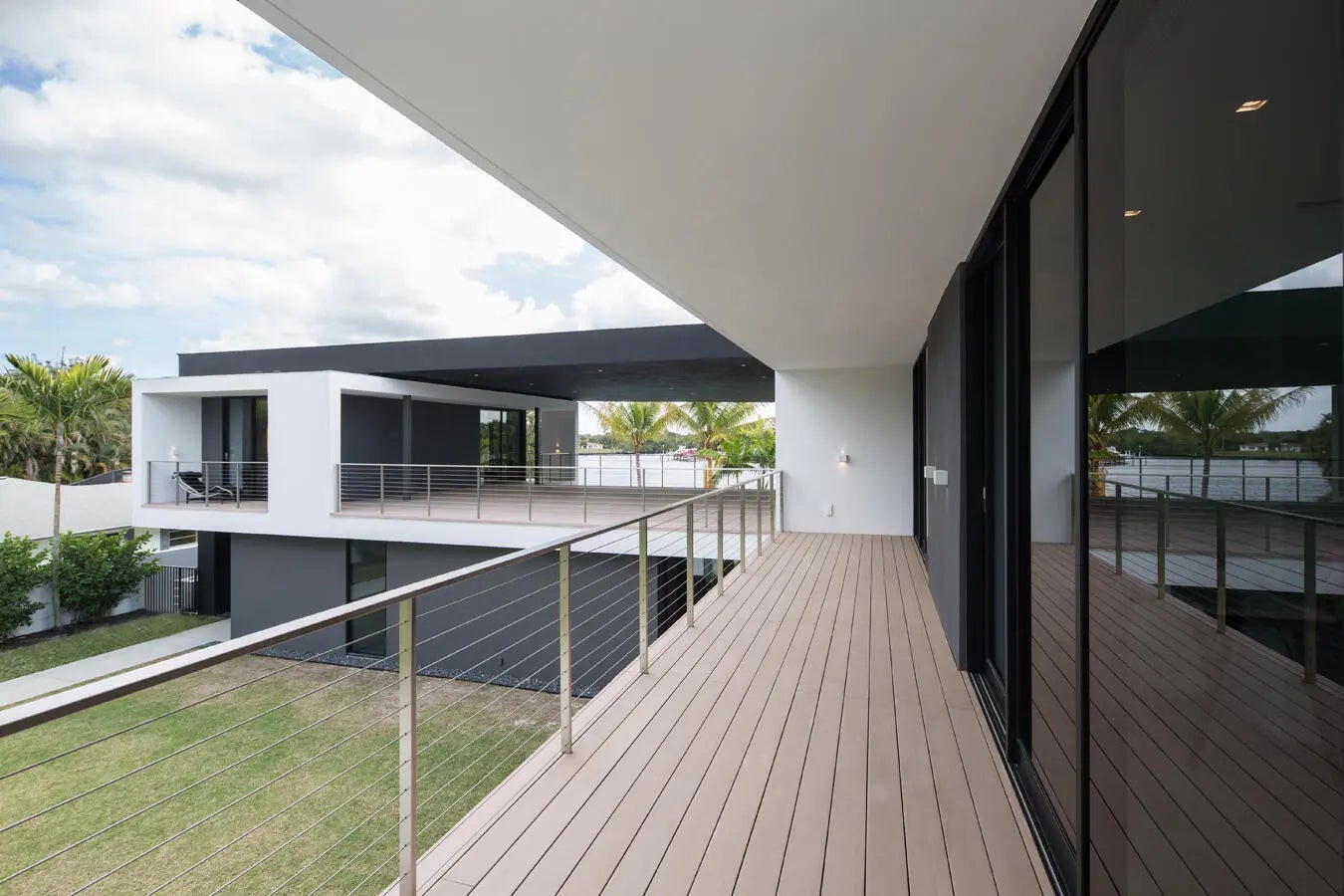 HughesUmbanhowar Architectural Masterpiece on the Loxahatchee River. Featured in Modern Luxury Interiors South Florida and Palm Beach Illustrated. 3 en-suite bedrooms/2 half baths/private guest wing with en-suite flex space. Privacy and modern elegance combine to make this home one of the finest in Jupiter. Situated on a private 0.6-acre lot, this thoughtfully designed estate offers breathtaking water views and deck access from every room. Abundant natural light accentuates the home's clean architectural lines and outdoor connection. With a striking white and gunmetal palette carried seamlessly throughout the interior and exterior, the architecture itself becomes the home's defining artwork. Offered fully turn-key, the home is furnished with custom pieces by B&B Italia, Luminaire and Design Within Reach. The fully outfitted kitchen is complete with custom walnut cabinetry, a Bertazzoni cooktop, Miele appliances, and a dramatic Wagamama waterfall marble island-creating a truly effortless move-in experience. Spanning 5,099 square feet of harmoniously designed living space, the home features meticulous hardware-free, soft-close cabinetry and concealed appliances that allow the kitchen to blend naturally into the surrounding living and dining spaces. A sophisticated architectural lighting plan by Delta Light, thoughtfully layered with recessed fixtures, enhances the home's modern aesthetic and beautifully highlights its clean, minimalist lines. Complementing this design, sleek circulation grills and linear slot diffusers provide optimal air movement while maintaining the home's refined look. The first floor is finished with terrazzo floors with a modern matte finish, while the second floor transitions to warm, refined wood flooring. The kitchen and living areas, framed by Fleetwood telescoping doors, open seamlessly to a spacious recreational family room, outdoor kitchen, expansive outdoor terrace and a beautifully designed EURO edge salt water pool with built in hot tub, offering an elevated environment for both entertaining and quiet relaxation. The second floor hosts three en-suite bedrooms, each with private balconies, showcasing Resysta deck flooring, and stunning water and estate views. The primary suite features a dual-access wet room-style shower adorned with Robern mirrors. In addition, a separate guest wing across the covered terrace includes its own en-suite flex space, complete with a custom Murphy bed and its own spectacular balcony views. Elevating this extraordinary property is a private dock with a 12,000-pound boat lift (including Jet Ski), protective seawall, and easy ocean access-ideal for enjoying the very best of Jupiter's waterfront lifestyle. With its refined design and uncompromising attention to detail, this exclusive home is the epitome of luxury living in South Florida.